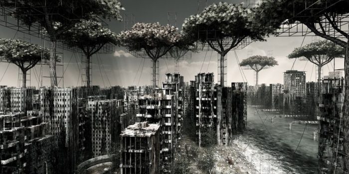 The colors are gray and somber, bringing together everything we expect from a representation of a decayed world that was once inhabited.