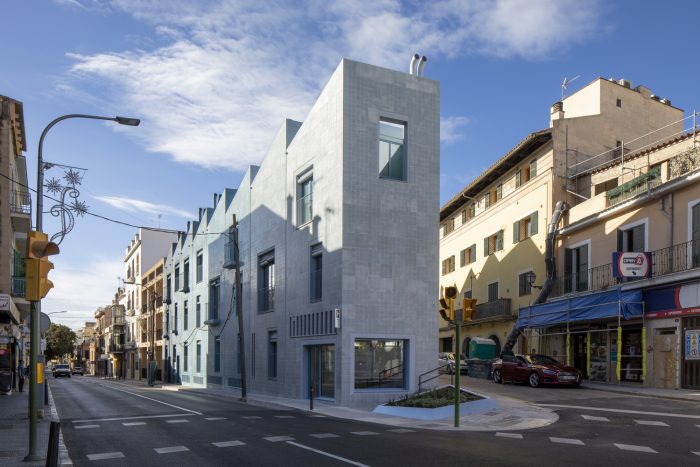 With a high level of thermal efficiency and passive temperature control features like shutters and cross ventilation to lower energy demands, the Gomila buildings embraced the Passive Haus design principles. Solar panels are placed on rooftops in Mallorca to take advantage of the area’s long sunlit hours, and heat recovery systems further cut down on energy usage. When possible, materials will be sourced locally, lowering the amount of carbon the project produces.