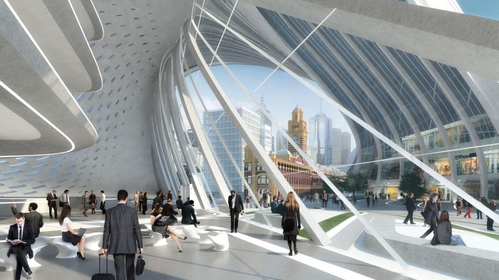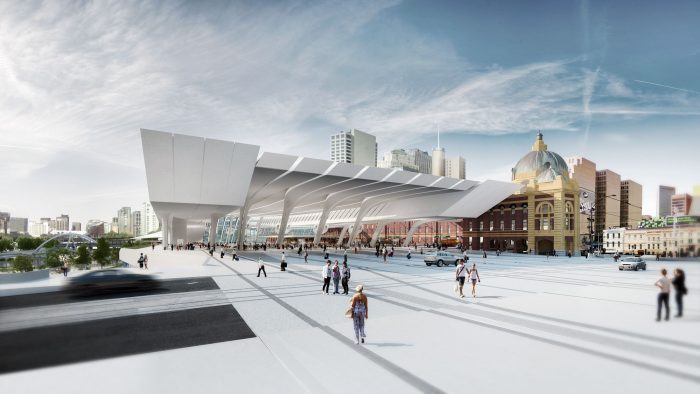 One of the entries included in the shortlist for the Flinders Street Station Competition, the proposal by Zaha Hadid Architects, is a stunning vision for the future skyline of Melbourne.A requirement of the original prompt, that the existing and historical station be maintained and somehow respected in future proposals, is fulfilled in a somewhat circumspect manor by the studio.