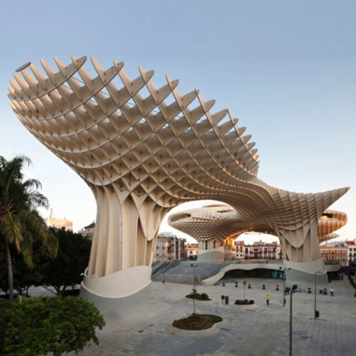 Designed by J. Mayer H. Architects, the Metropol Parasol is a distinctive architectural structure located in Seville, Spain. Under its unique parasol-shaped canopy, it accommodates an archaeological museum, a farmer’s market, an elevated plaza, as well as various bars and restaurants. Impressive in scale, it stretches 175 meters in length and 50 meters in width, earning it the distinction of being the world’s largest wooden structure. The space beneath the Metropol Parasol is not only designed for leisure and communal gatherings but also incorporates a small farmer’s market, a restaurant, and an observation deck that offers panoramic views of Seville’s historic district.