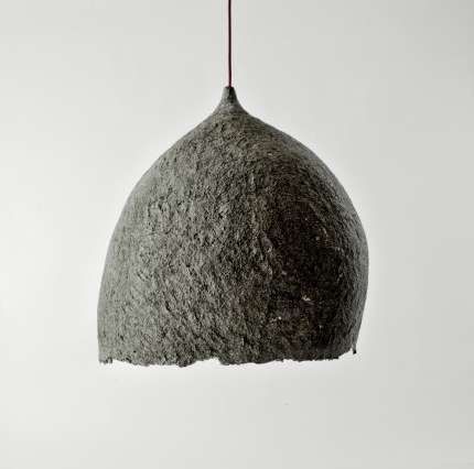 To upcycle could be described as not only breaking a material down for reuse, but the actual act of reusing it for something greater or as great but different. These rough, organic and uneven luminaries, called Pulp Pendant Lamps, created by Folklore design studio, are a prime example of just that. Composed of recycled, pulped newspaper paste, the material appears to have been plastered over a balloon of unknown contents (maybe water, or a set concrete for replicability- these are only guesses). The end result is a raw-feeling design that could find a home in almost any and every setting.