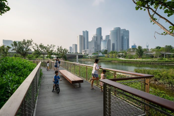 Project Statement. Guiwan Park is the first “water finger” to be built for Qianhai Water City, an innovative and sustainable new city. As the green core, Guiwan Park supports the city center and creates large-scale blue-green infrastructure for stormwater management, flood protection, and habitat recovery. A continuous coastal park, Guiwan Park features 51,000 sqm of mangroves, 18,000 sqm of freshwater wetland, and 255,000 sqm of parkland, naturalizing the tidal corridor and creating a harmony of beauty and ecological performance. The park combines ecological, social, and urban functions with zones that support sports, leisure, recreation, and nature exploration, creating a “hyper-nature” that brings together natural ecology and strengthens an urban energy web.