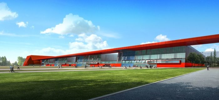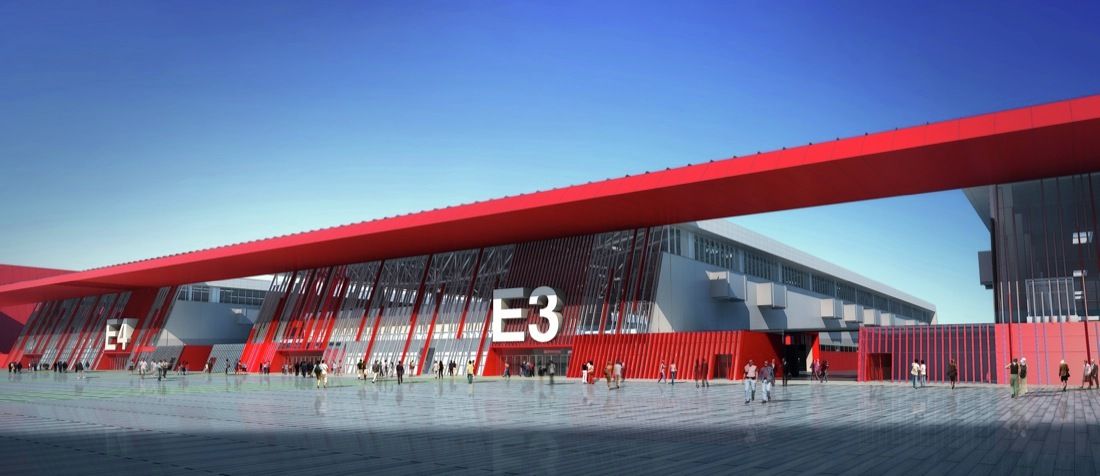 Uniformly sized exhibition halls expedite construction and reduce waste.