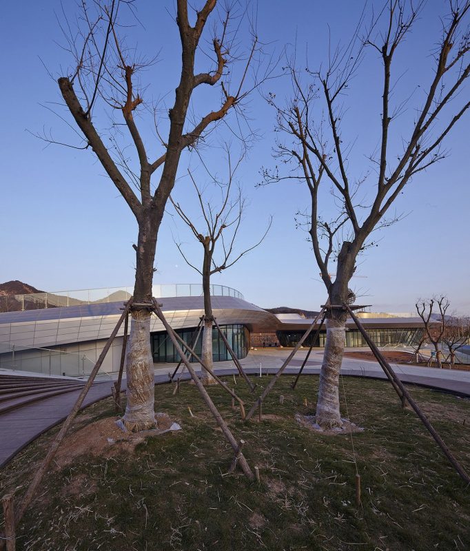 The site is a beautiful piece of landscape accentuated by Baiguo mountains and two lakes thus making it a naturally rich terrain. The designers have tried to preserve the natural landscape as much as possible by integrating landscape and adopting it into the various elements of the building. In order to provide multiple access points for large crowd, the terrain has been used judiciously for ease of visitors that might come for purpose as well as leisure.