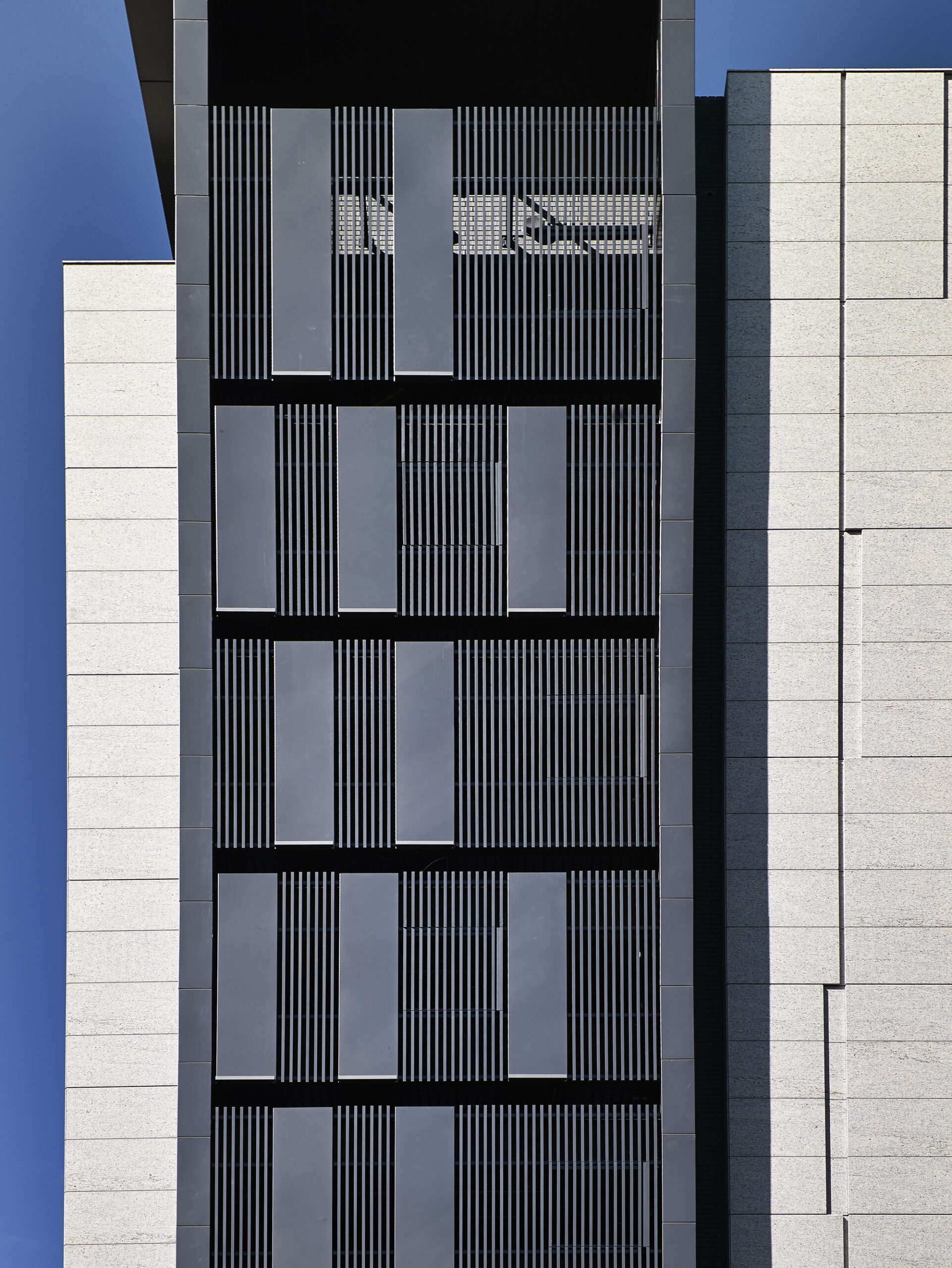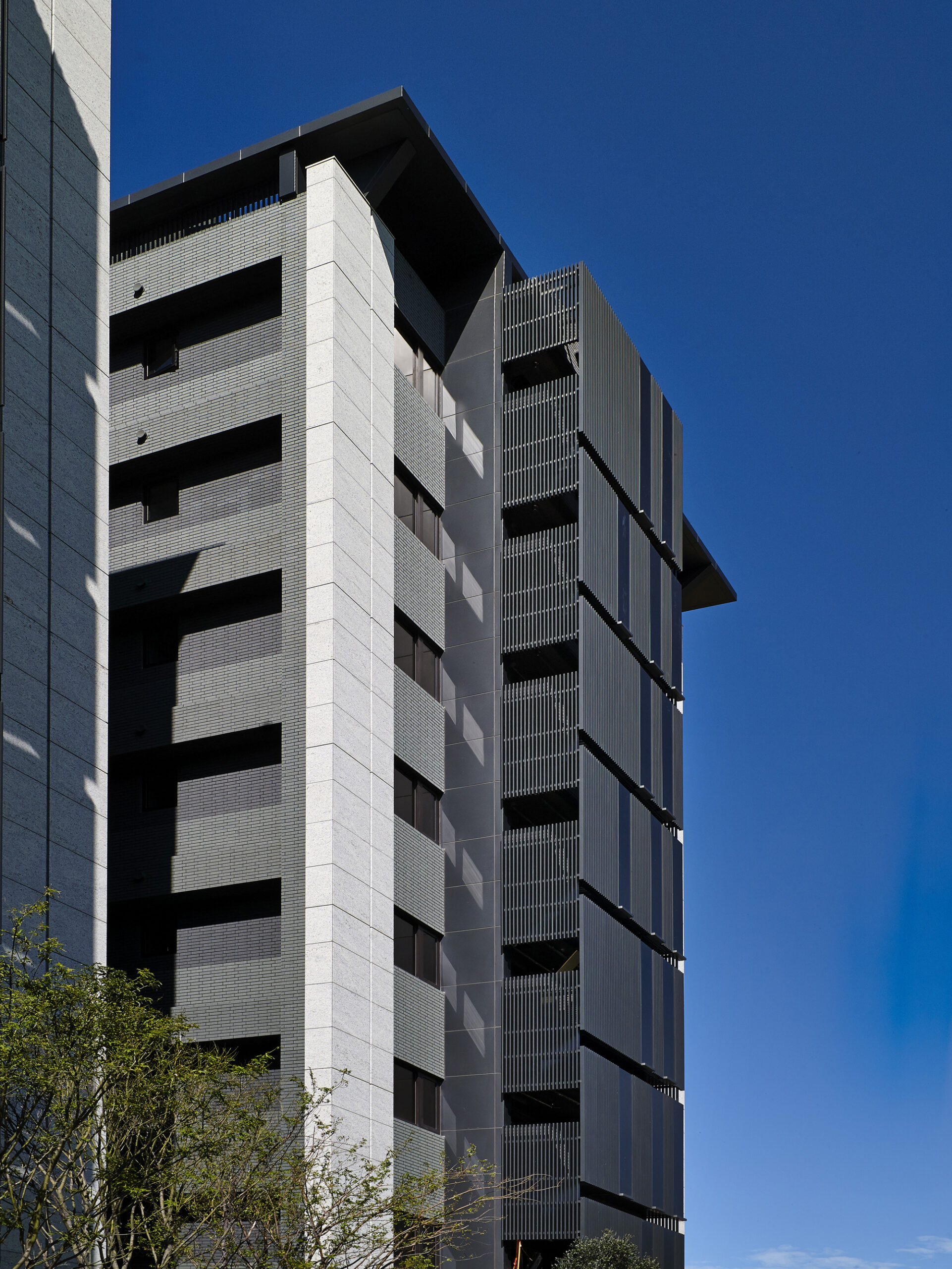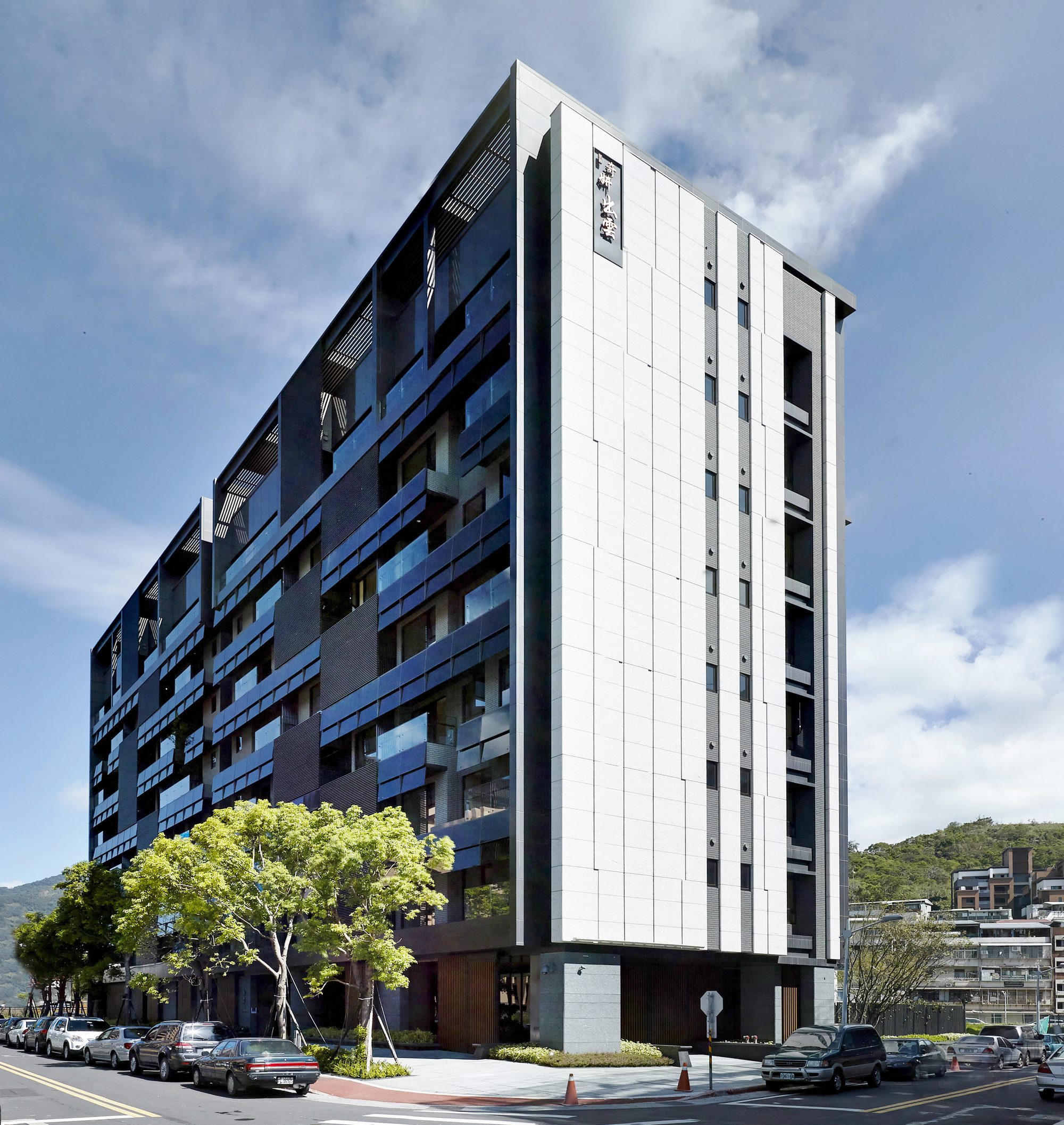 Limited by the required medium and small and also repeated apartment units, we aim to de-unify a predicable architectural expression. We try to offset and receded the balconies and walls on the façade, and also using the horizontal linear sun shading system to realize the de-unified effect. The horizontal grills enhance another layer of this reading and intentionally cover the A/C equipment and unpleasant view from the working balconies as well.