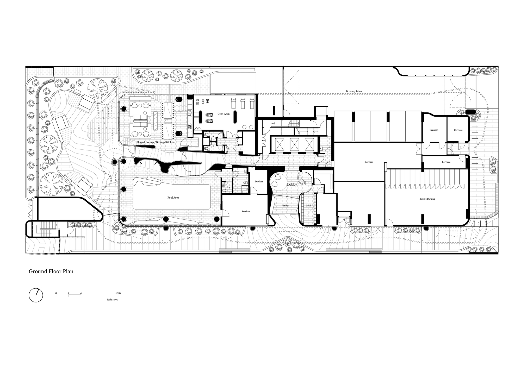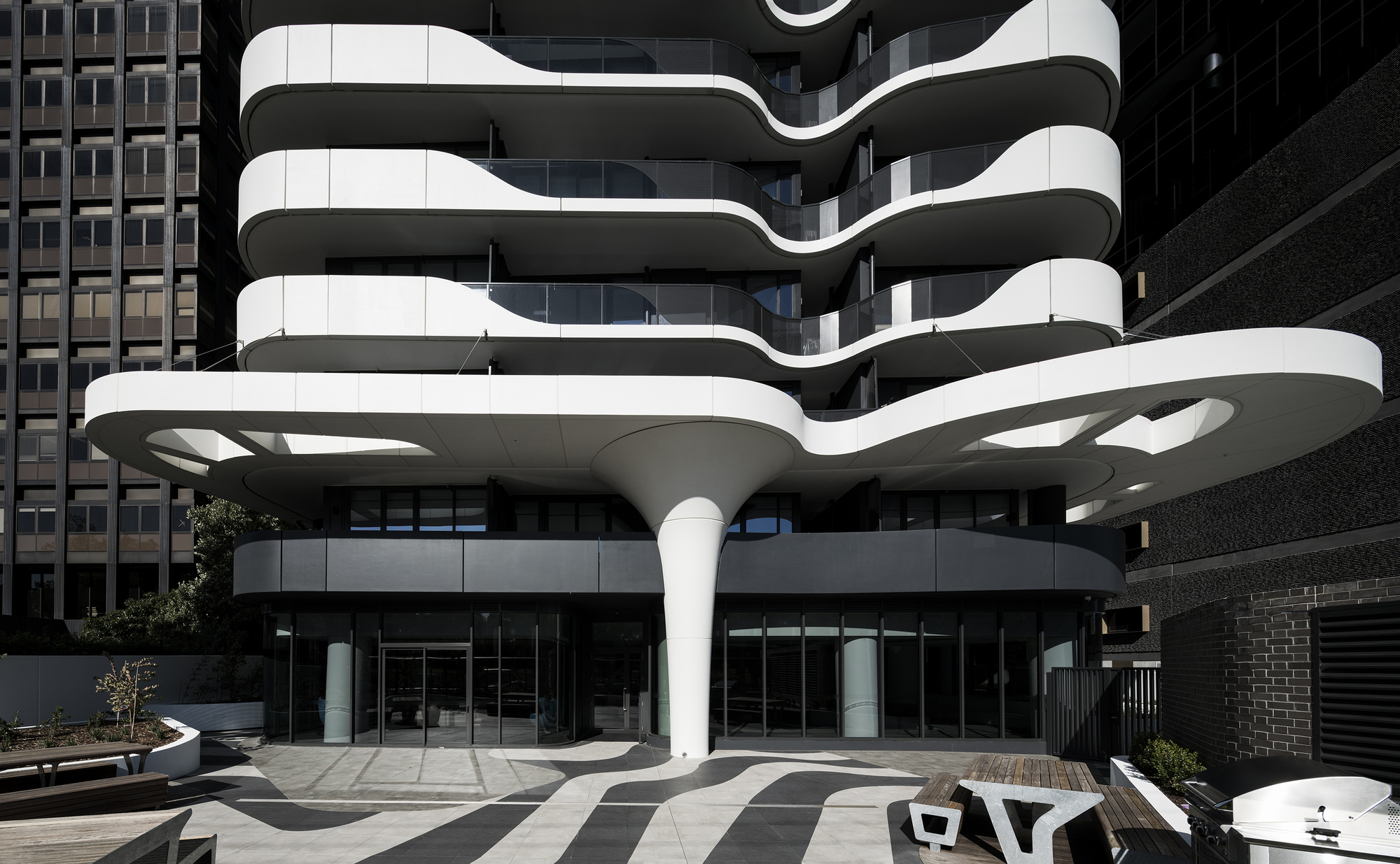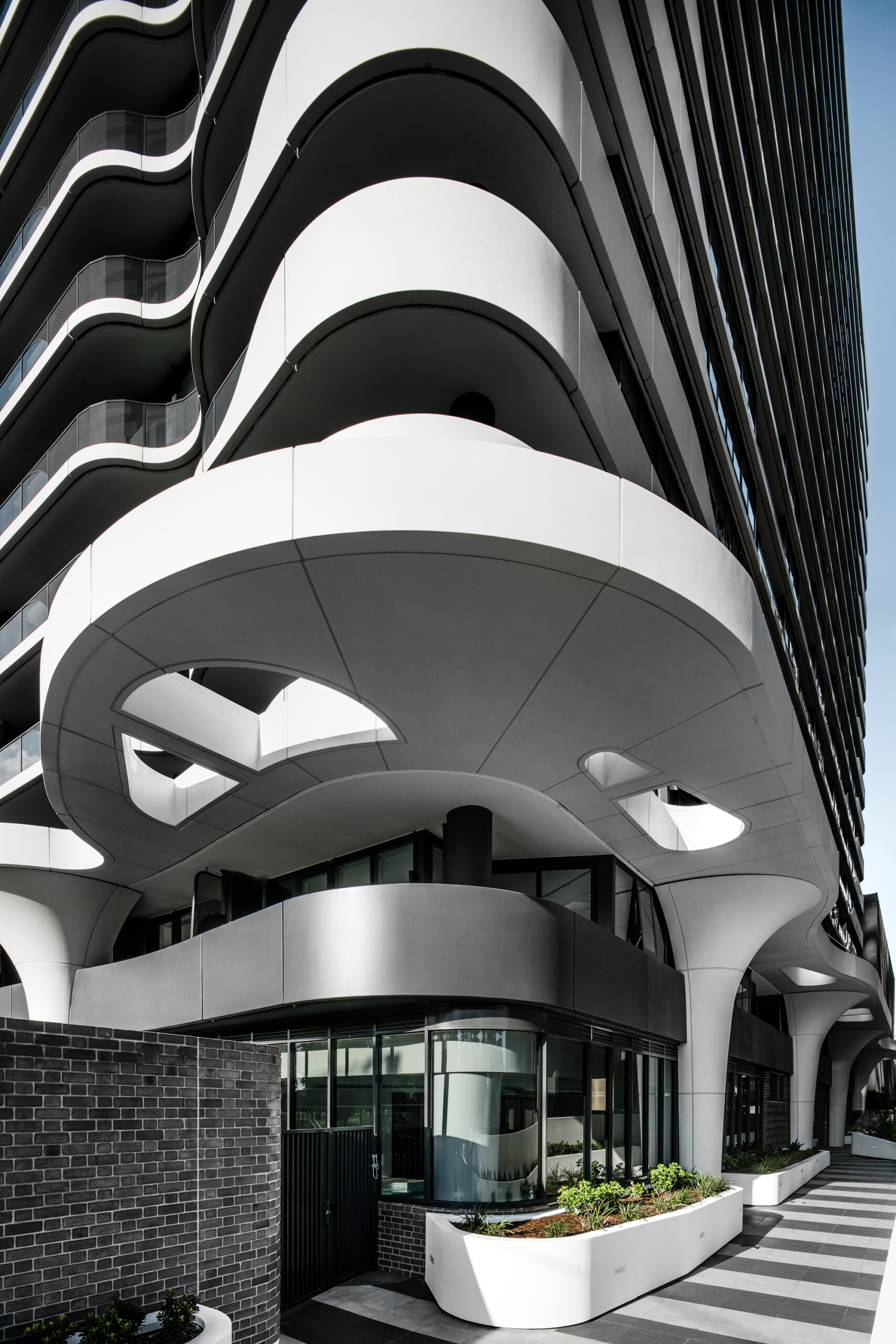 Queens Domain is located on Melbourne’s Queens Road. Queens Road together with St Kilda Road are Melbourne’s preeminent residential boulevards lined by buildings from various eras and different styles. When Queens Road is viewed from Albert Park, one can see a narrative of Melbourne’s architectural history emerge. Amongst them are some proud contributions by Frederick Romberg a renowned Modernist architect. The Stanhill and Newborn Flats are beautiful functionalist buildings with sweeping open balconies and fine glass detailing. Queens Domain takes up the next thread in this story, re-interpreting existing elements, whilst embracing design and construction techniques of our time.
