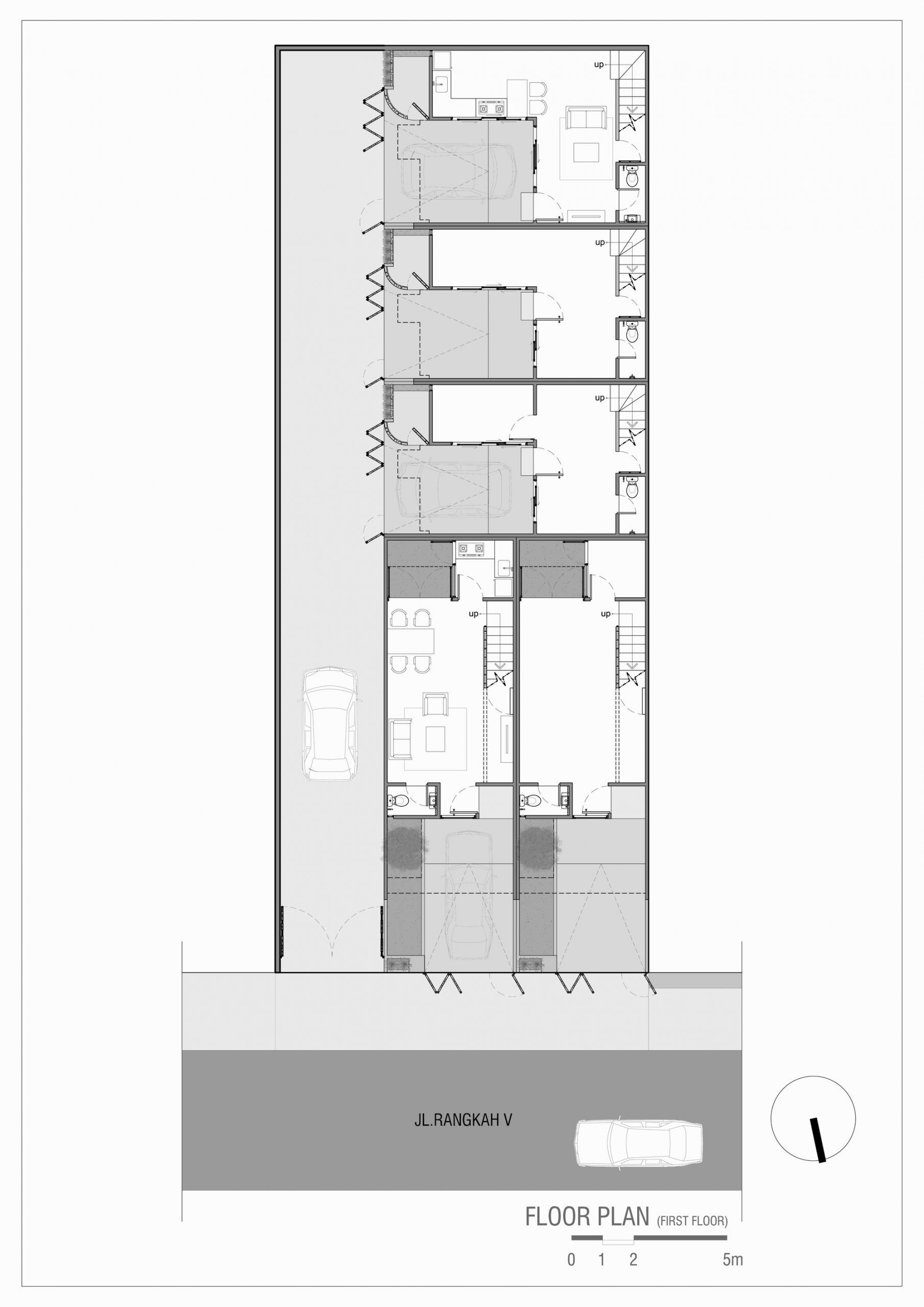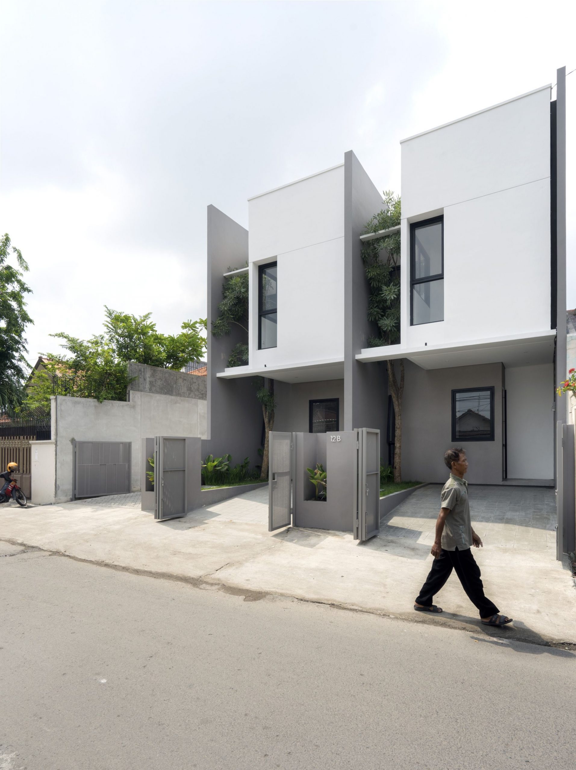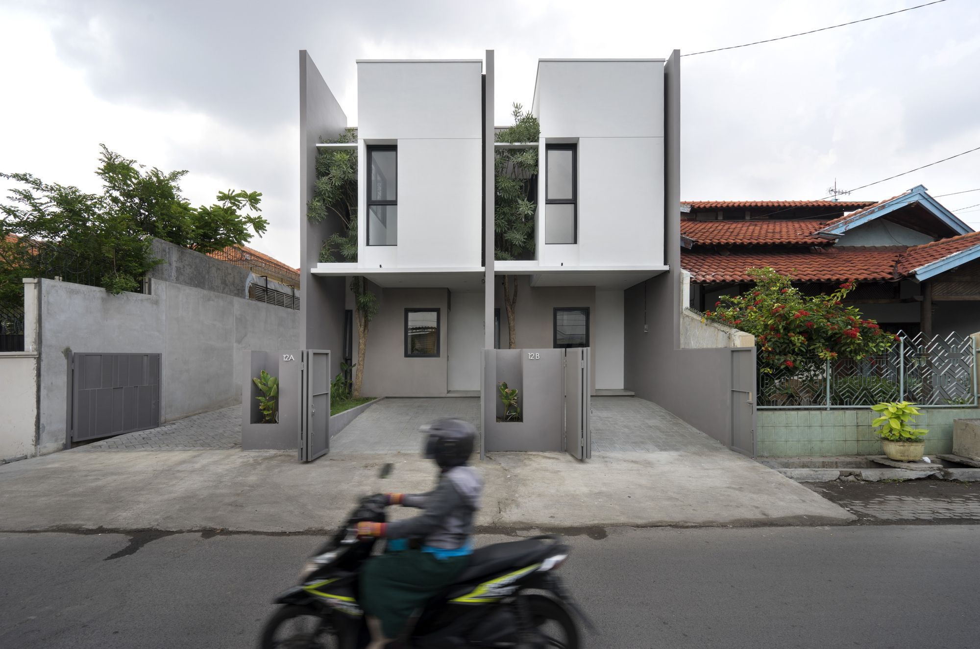 R Micro Housing is a small housing complex consists of only five units and is available in two different types. It sits on 12m x 29.8m land located in one of the densely populated villages in the eastern suburbs of Surabaya. Considering its location which is just off a crowded main traffic, street accessibility and safety, and also current neighboring houses, therefore we decided to have a refreshed façade concept in combination with a simple yet compact mass, thus the construction process would take less time with efficient costs.