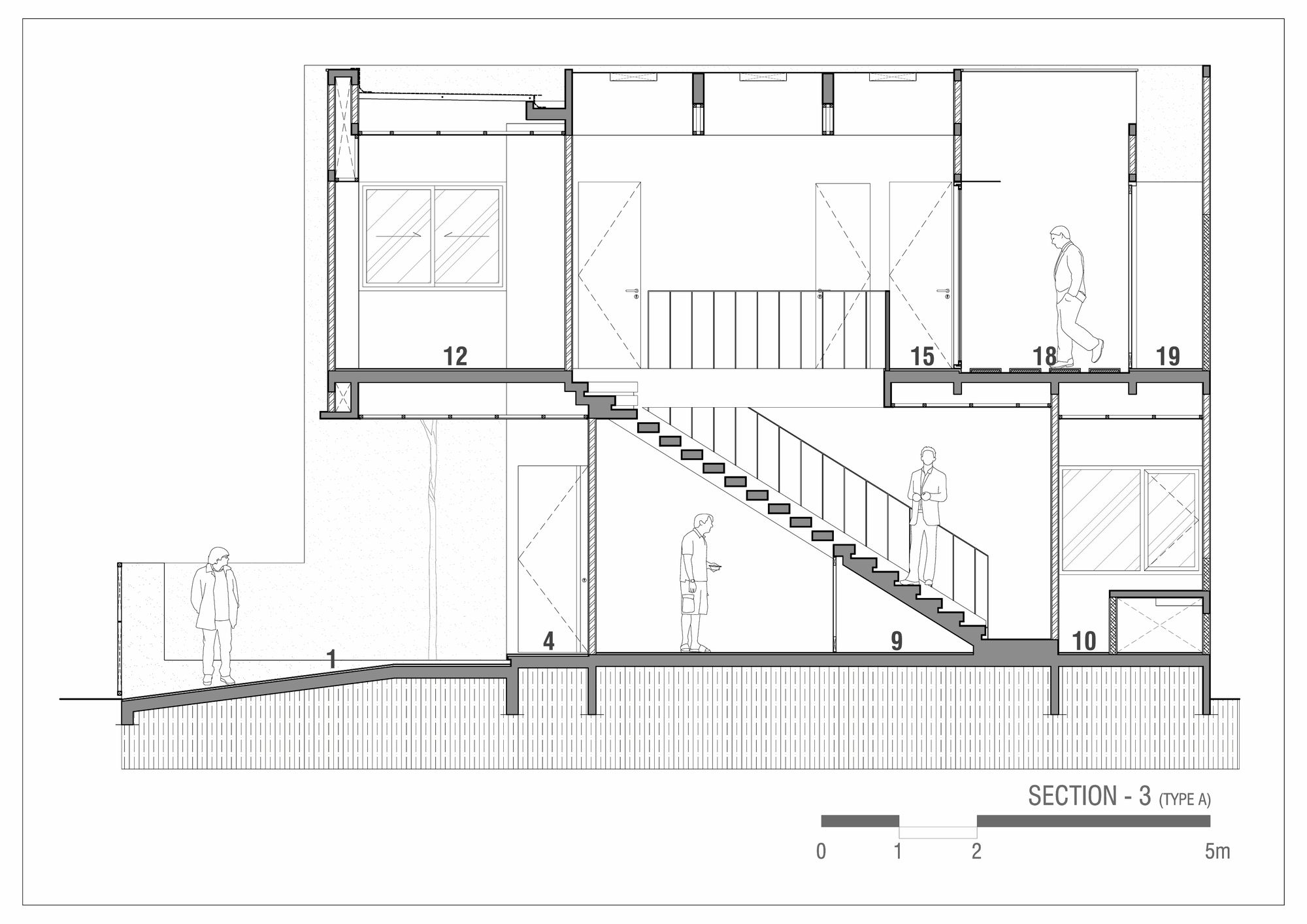 A limited land is often becoming a major issue when it comes to designing a healthy home. R Micro Housing has experimented to incorporate as much natural daylight as possible by strategically positioning a number of sizable openings for an effective cross ventilation as well as integrating an inner courtyard within the interior layout plan. A private parking lot for each unit and a selection of crafted yet easy-to-maintain material finishes have certainly added values to this small dwellings. All of these features completes the unique spatial experience that this house has to offer.