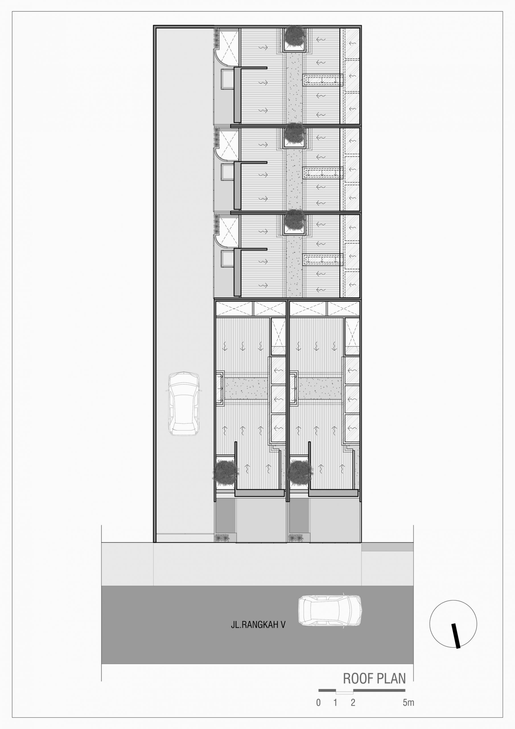 Considering its location within one of the most densely populated areas in Surabaya, thus having greeneries and courtyard within this tight plot land can be considered as a bonus. The layout of each type of the house in R Micro Housing complex has been planned to accommodate a good sized courtyard, which has been one of the important tools to support the cross ventilation system within this introvert house. Ultimately, R Micro Housing can be considered as a precedent that a unique façade design with a reasonably good quality building materials and finishes is definitely feasible regardless of the limited space and budget available.