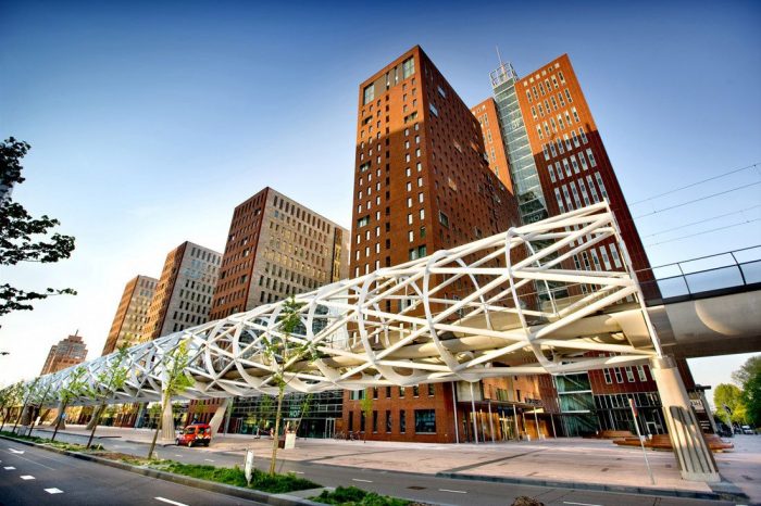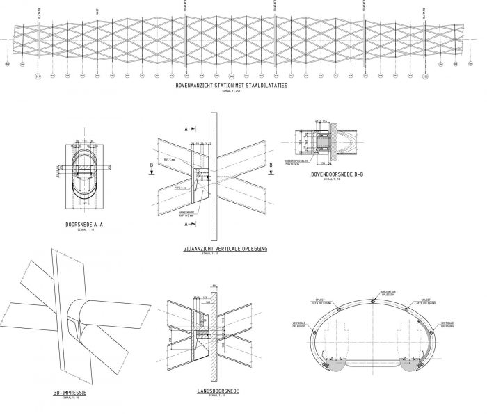 The construction of the viaduct uses a tubular space-frame structure that follows the curve that Joan Busquets had set out for the alignments along with the road networks of Beatrixlaan taken into consideration. To link this viaduct with the existing, the Ternoot stop has to be moved with a new station being designed at its new location.