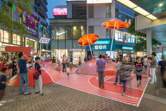 It is designed by 100architects, The Red Planet is a public space intervention designed to foster interactions, attract customers and enhance the experience in the privately-owned public space within an open-air Retail Street. Life Hub @ Daning, a 250,000 sqm mixed-use development with 110,000 sqm shopping mall, is one of the hottest shopping centers in Shanghai, due to its condition of the open-air retail street.
