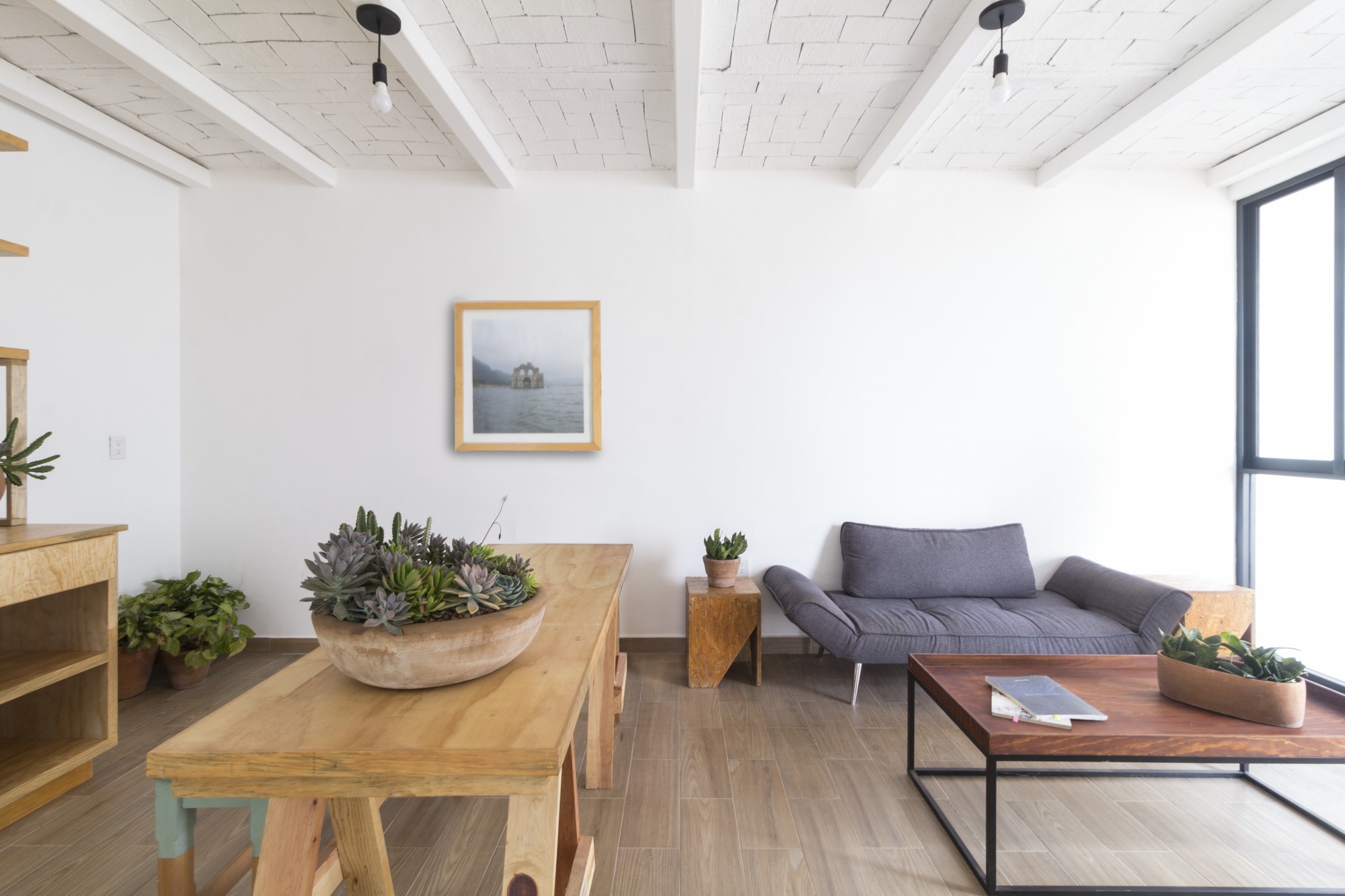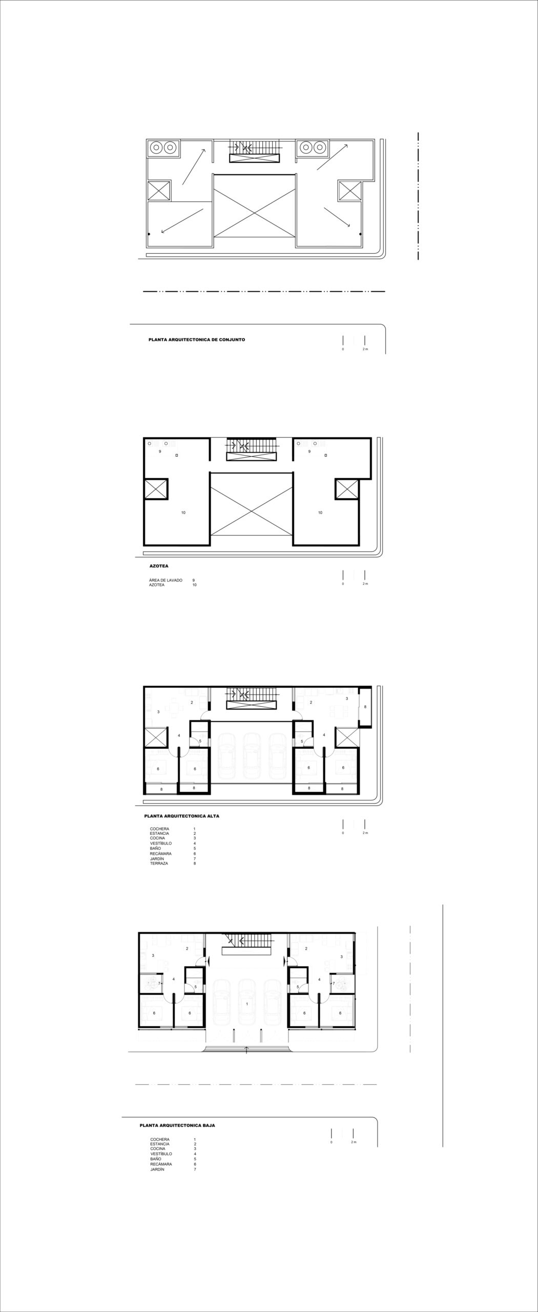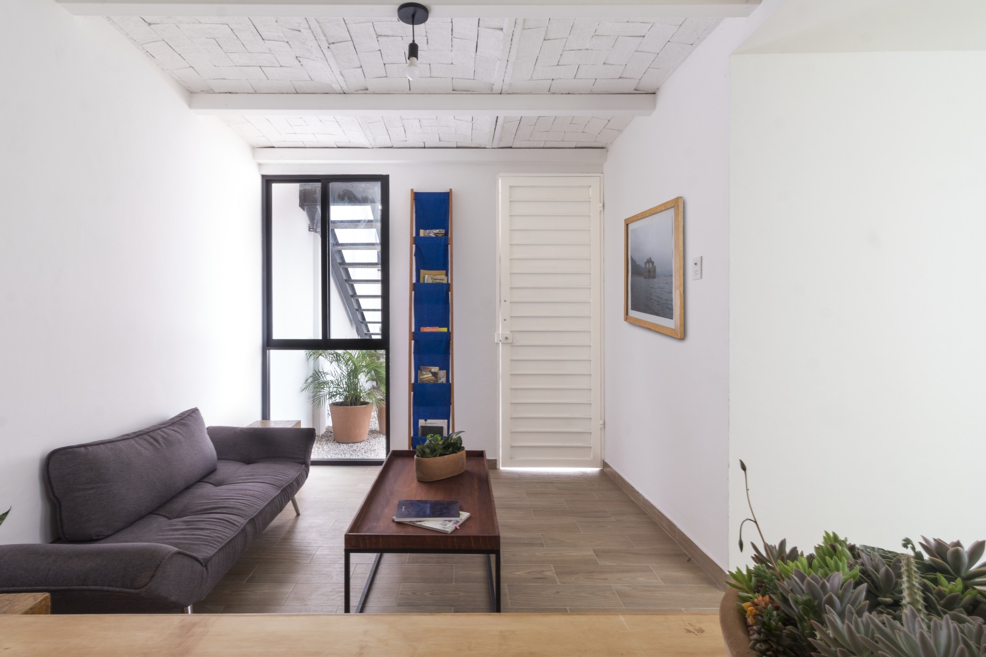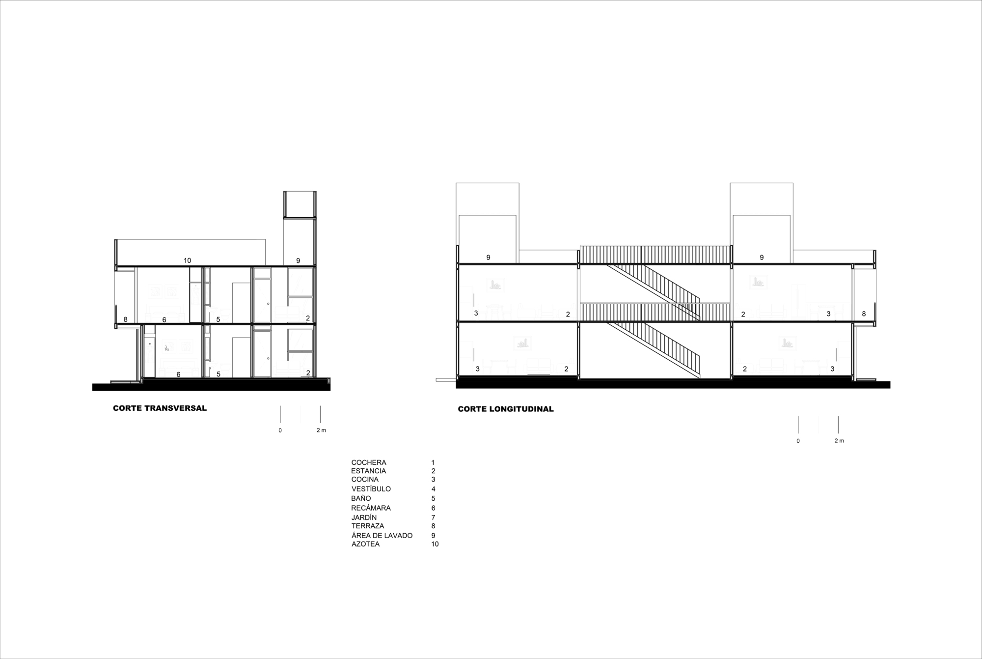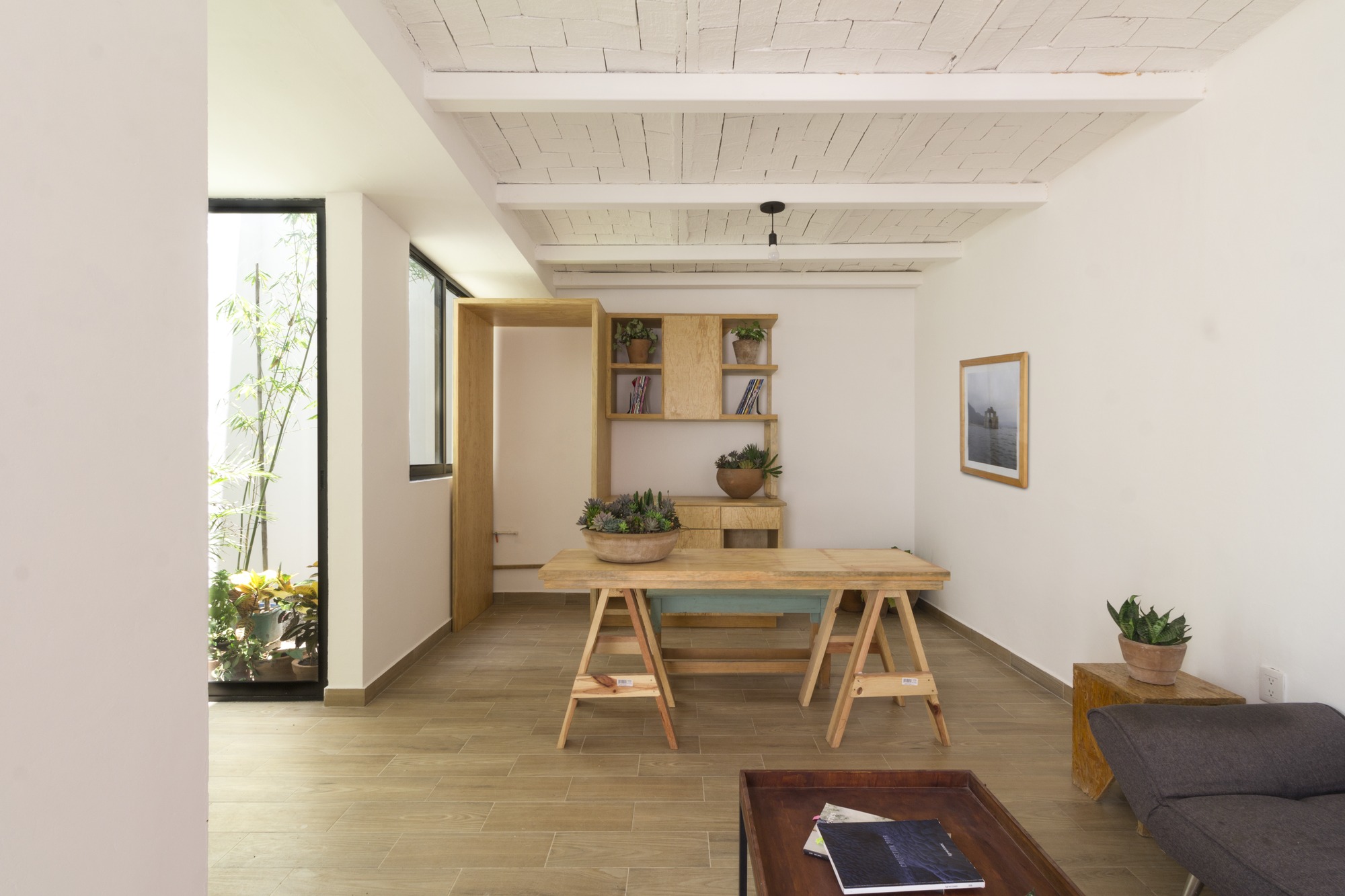 The construction materials are revealed in the materiality of the complex and only by the means of light and shadow, an almost ethereal white defines the sobriety of the volumes. It is the light that defines the reality of the textures, such as brick in the walls and the slabs and the supporting steel of the interstices. Each department allows the clear passage of wind and natural light since within the complex, a light cube was proposed, housing vegetation and cleansing each compartment.