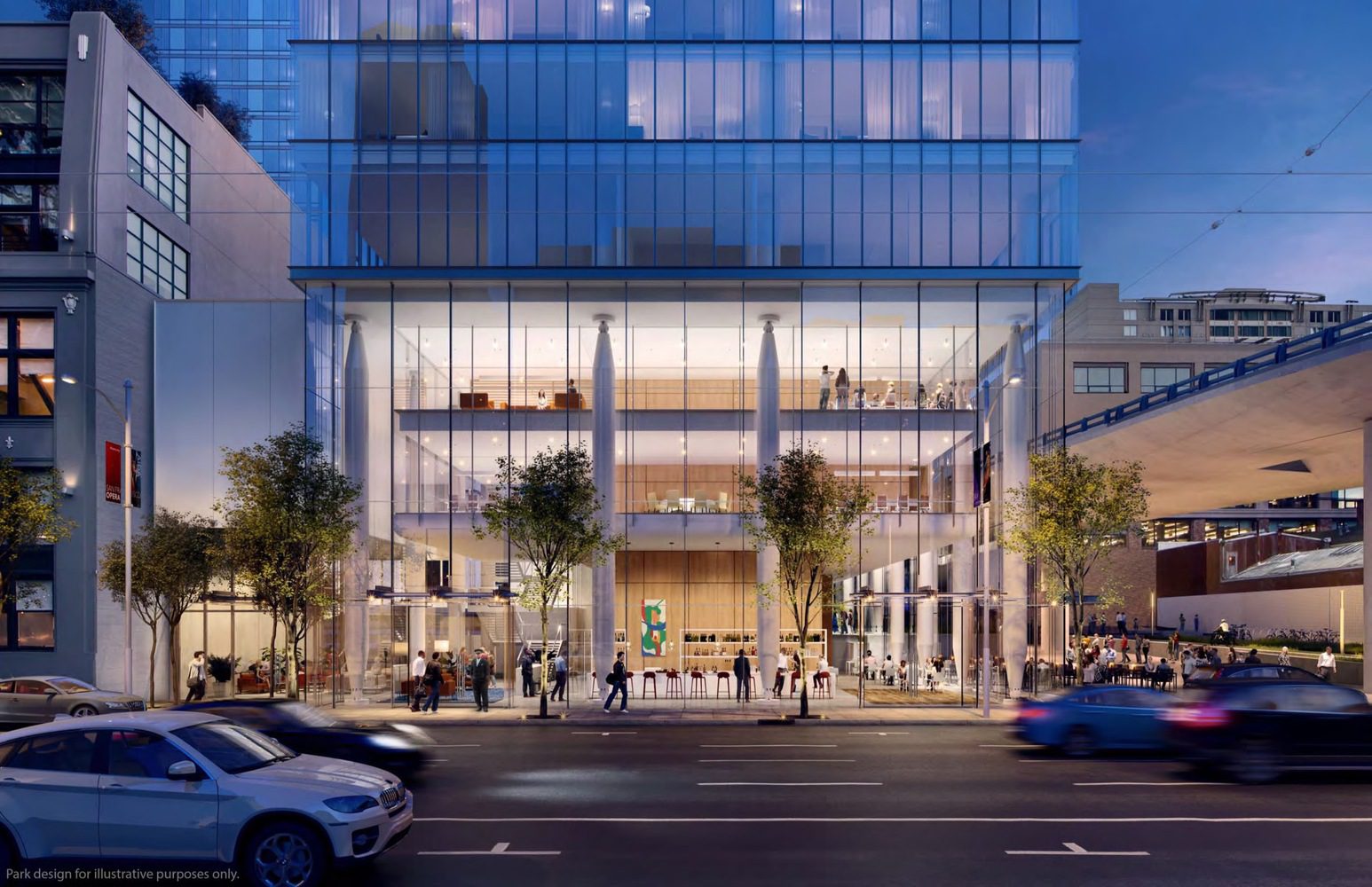 The hotel will occupy the first 20 floors of the building, while the residential units will occupy all the floors above, up to the 36th floor. The building’s straight façade steps back at the 21st floor forming an outdoor terrace for the residents. Besides the rooftop garden and the open terrace, the project includes a plan to turn the adjacent grounds, below the elevated highway, into an “under-ramp” park and plaza.