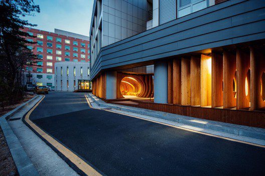 Rest Hole in the University of Seoul, design is all about improving existing spaces. In this particular case, the first floor of the dormitory in University of Seoul used to be an empty parking lot, with almost no aesthetic appeal. Dark and with large, heavy columns, the space becomes a place only for smoking and parking bikes.
