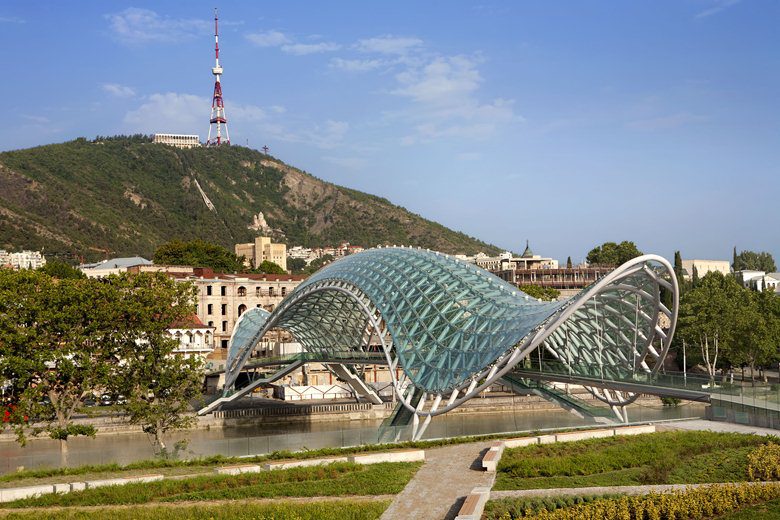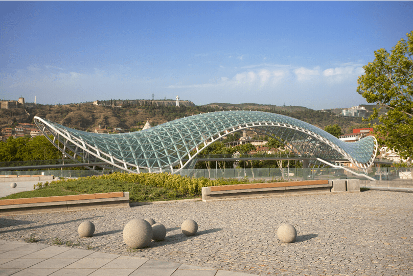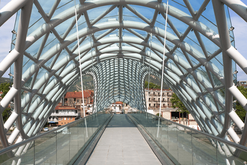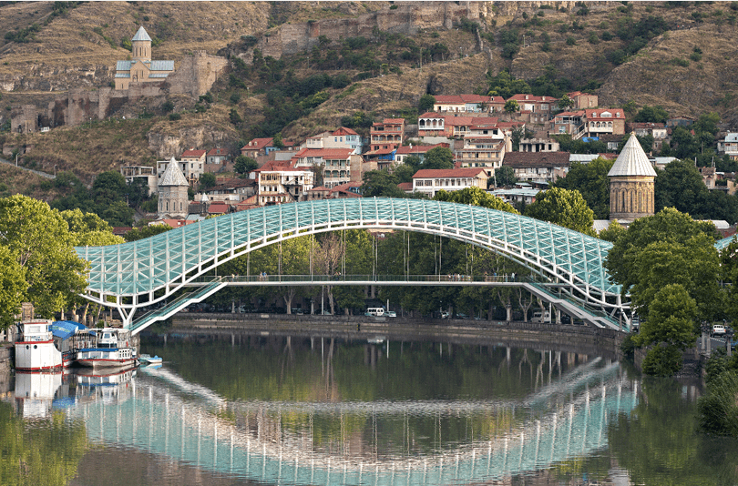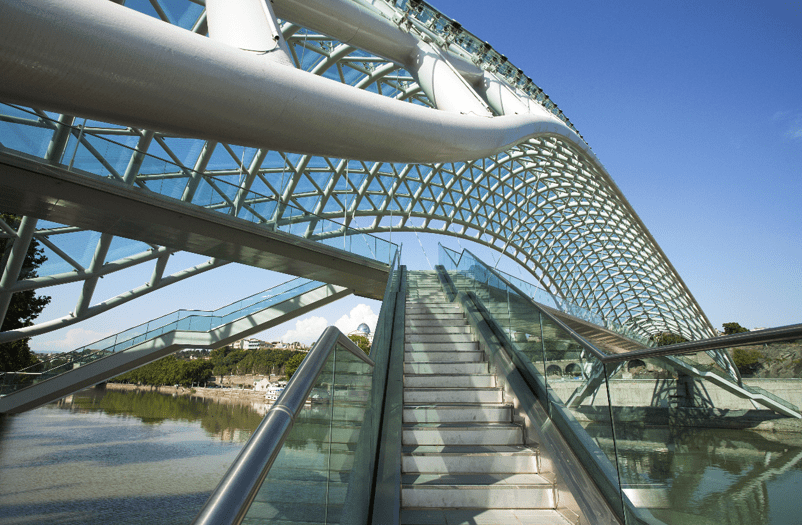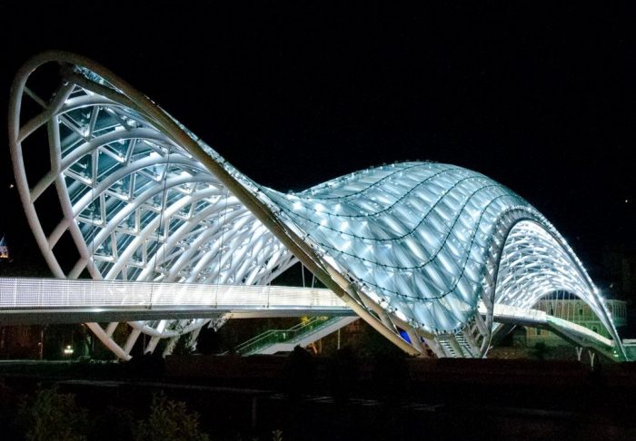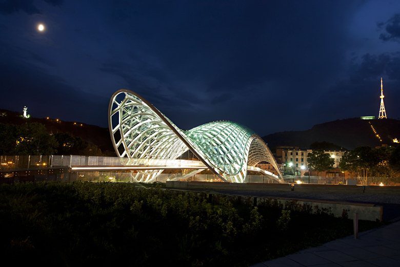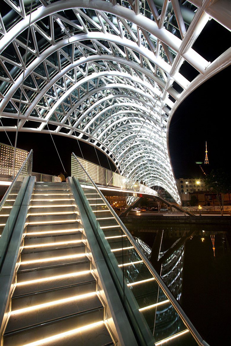 Rike Bridge, A new pedestrian bridge also known as the Rike Bridge, located in Tbilisi Georgia over the Mtkvari River. An Italian architect known as Michelle de Lucchi did the design with Philippe Martinaud the French lighting designer in 2010.The aim of having the bridge is to re-enable connection with the old and new districts of Tbilisi.