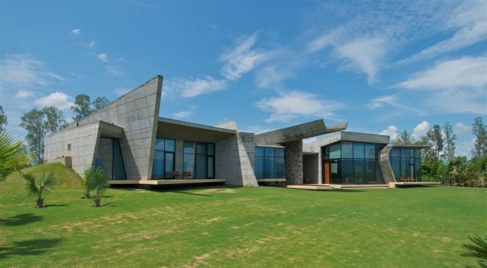 Designed by Mr. Rajiv Saini, The first visit I made to see the site changed all preconceived ideas about what form this house should take. Located on an elevated hill slope, overlooking the ‘Ganges’ river as it turned around a bend, the unbridled energy of the gushing river became the one constant inspiration and the form the house attempts to reflect.