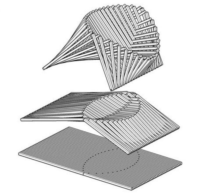 The rising chair emphasize the natural shape an object can made by transforming itself. Every piece of the chair has his own task to succeed in this transformation.
