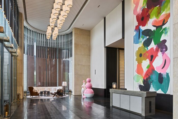 Designed by Goettsch Partners, Rosewood Sanya, and Sanya Forum is Located at the southern end of Hainan Island in the city of Sanya, China, the complex focuses on two conceptual design elements: a “lighthouse” for the hotel and serviced apartment tower and a complimentary “rock formation” for the convention center. The 46-story hotel and serviced apartment tower rise from a conceptual outcropping of rock to become an iconic symbol of Haitang Bay, its glowing beacon visible from any direction. A unique resort in the sky, the building is organized vertically, with the arrival sequence, landscape, and incorporation of water and views all considered integral to the guest experience.