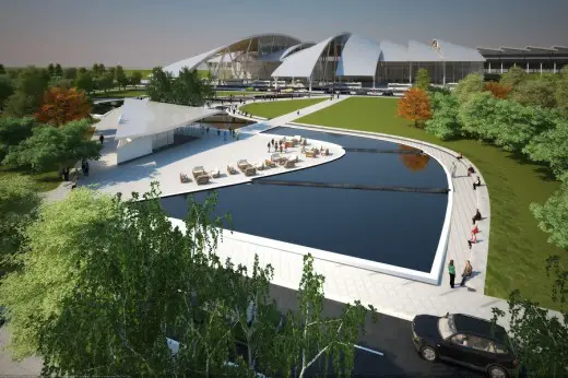 Therefore, the original concept of Twelve architects was to retain the original site location for the project – the river Don, and this have responded to the main requirement of the brief. The design drive and also a major focal point of the winning design entry includes a sky bridge composed of slender glazed arches. Thus, the studio have shown how they have retained the symbolism of the river Don as the origin of Rostov city. With the symbolic analogy of the airport being described as a sky bridge, the studio designed the roof on an orthogonal orthogonal projection grid, tus dividing it into its elegant glazed arches. The roof resembles a repetitive composition of four equal elements arranged asymmetrically.