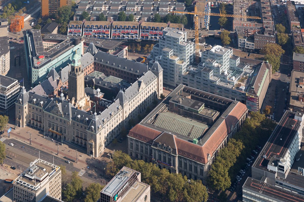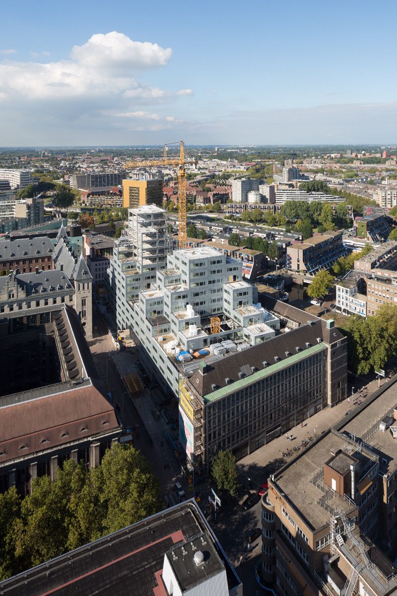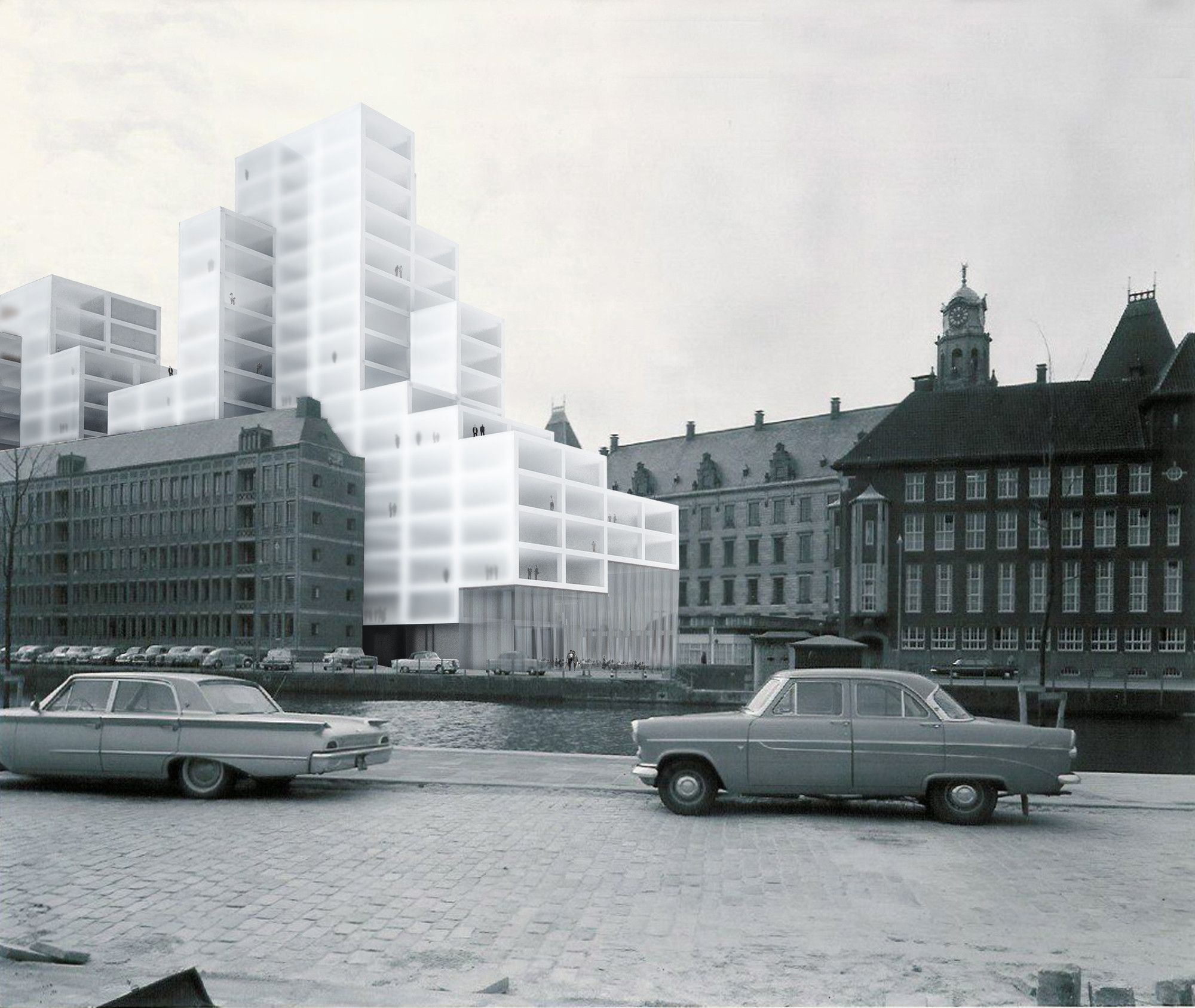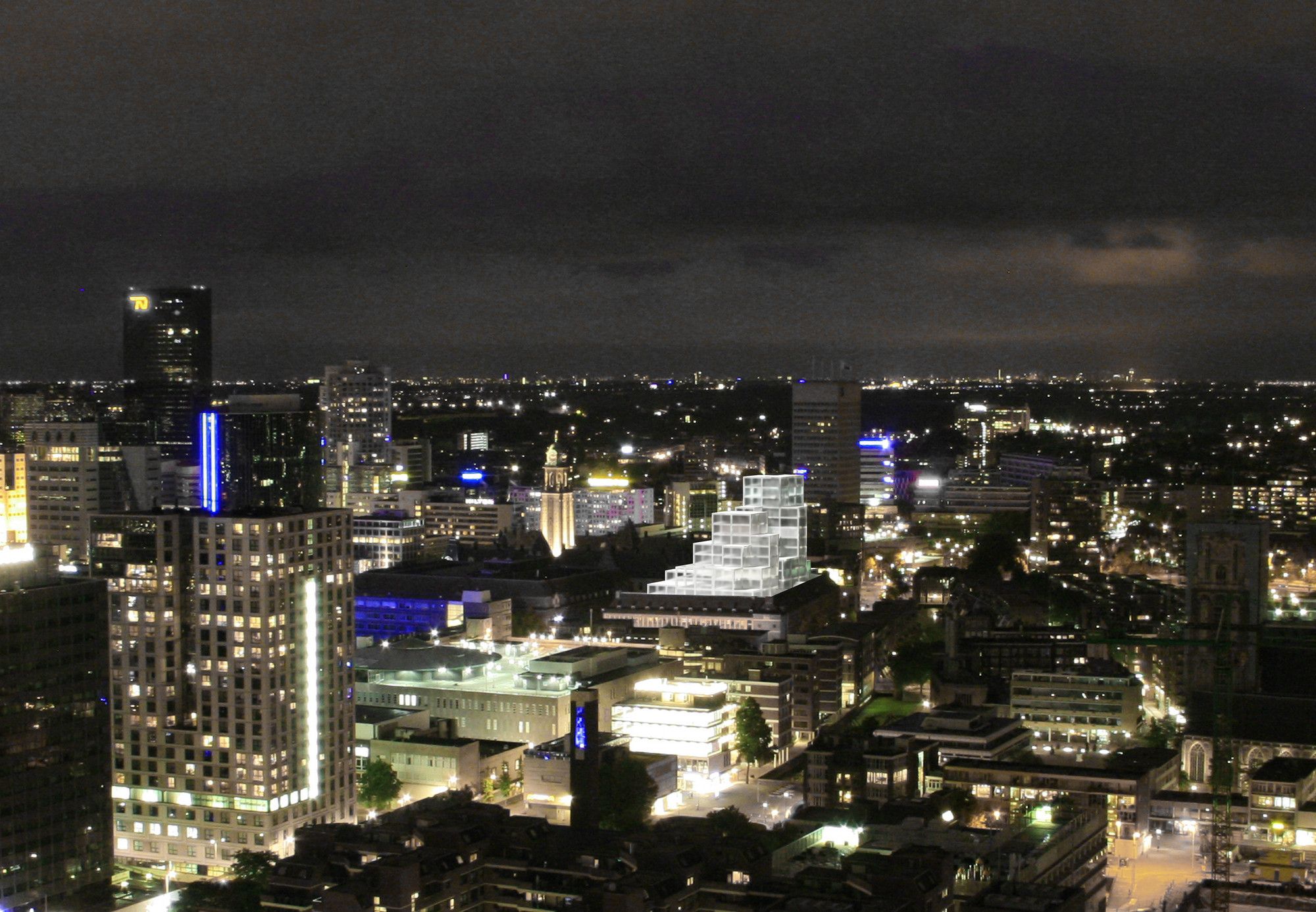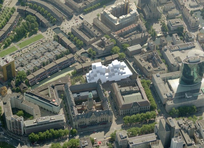 Rem Koolhaas states, “what is now needed may be subtlety and ambiguity in the midst of an overdose of form. We propose a ‘formless’ heap, consisting of smaller elements that are shaped to perform a number of major and minor responsibilities. Where necessary, the shape can be formal and impressive, almost symmetrical – for instance, from the Coolsingel, glimpsed between the two survivors – and where desired, it can be delicate and accommodating – for instance in its relationship with the existing monument, Stadstimmerhuis“.The design, led by OMA partners Reinier de Graaf and Rem Koolhaas, was chosen from five submissions by Dutch architecture companies following a public consultation period and the deliberation of an expert jury, which commented: “OMA’s design was the perfect combination of innovation and suitability for the surrounding context“.