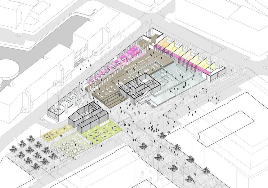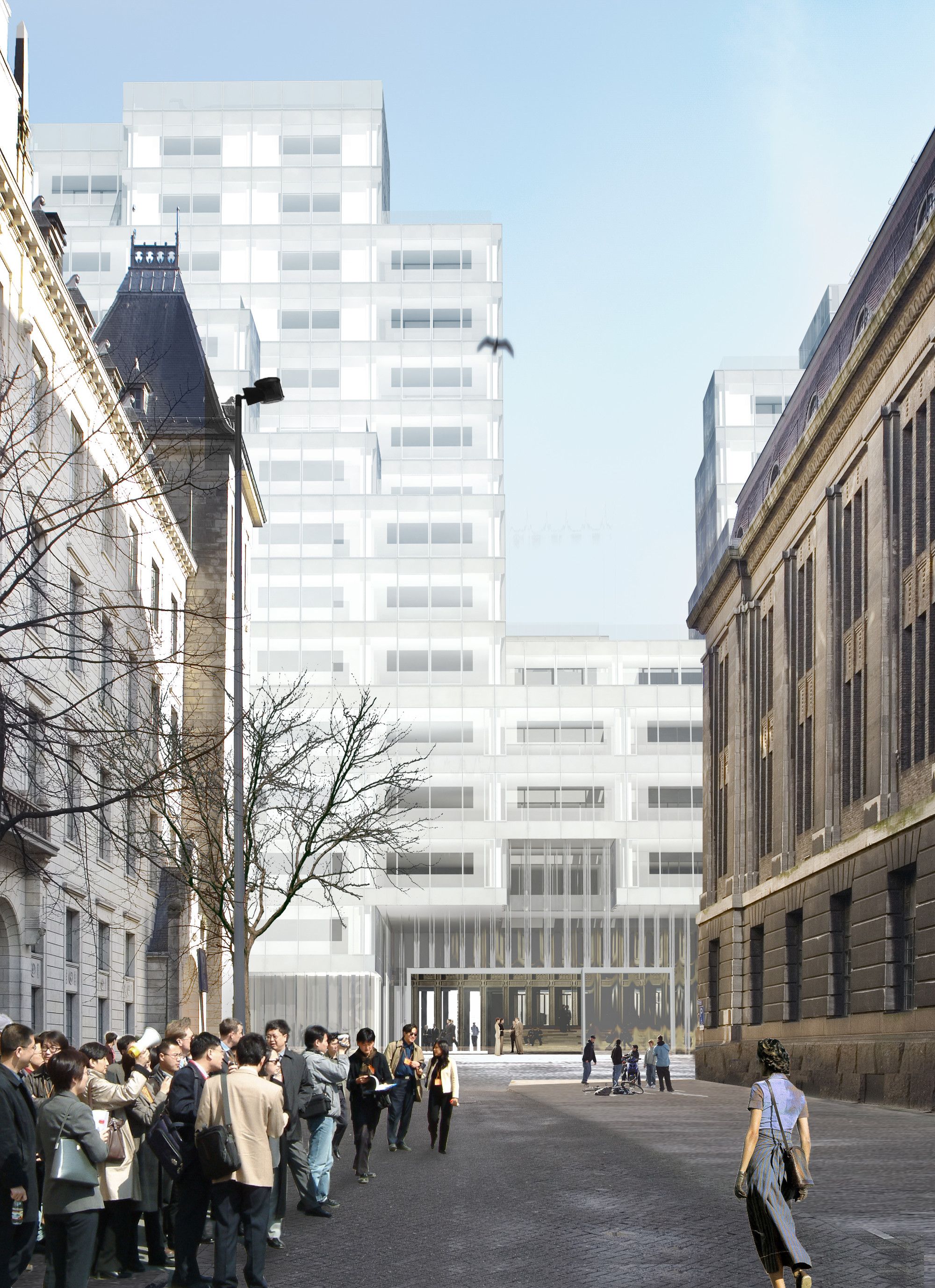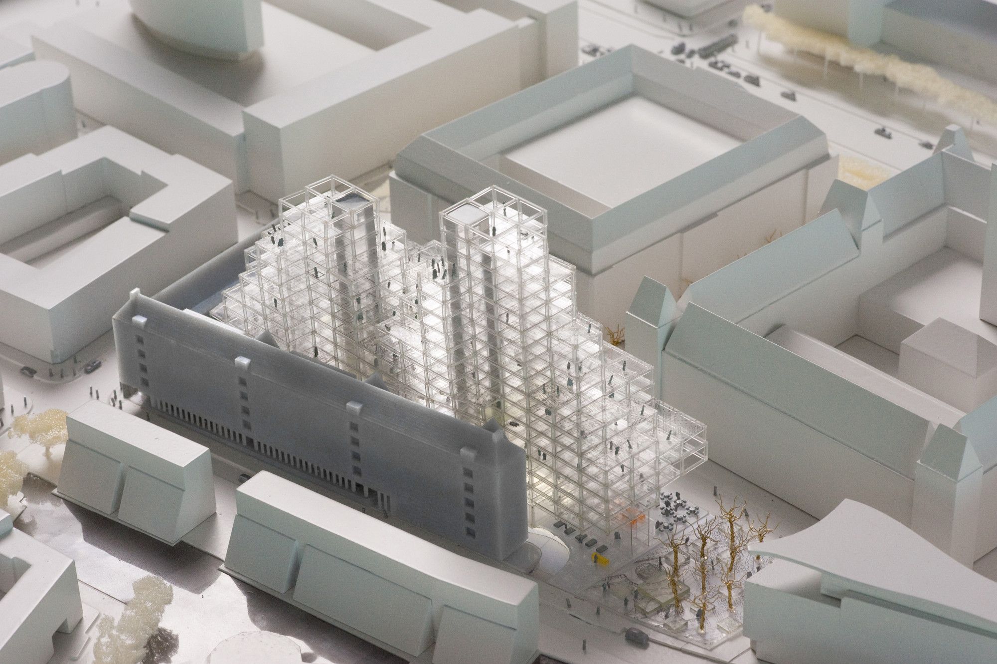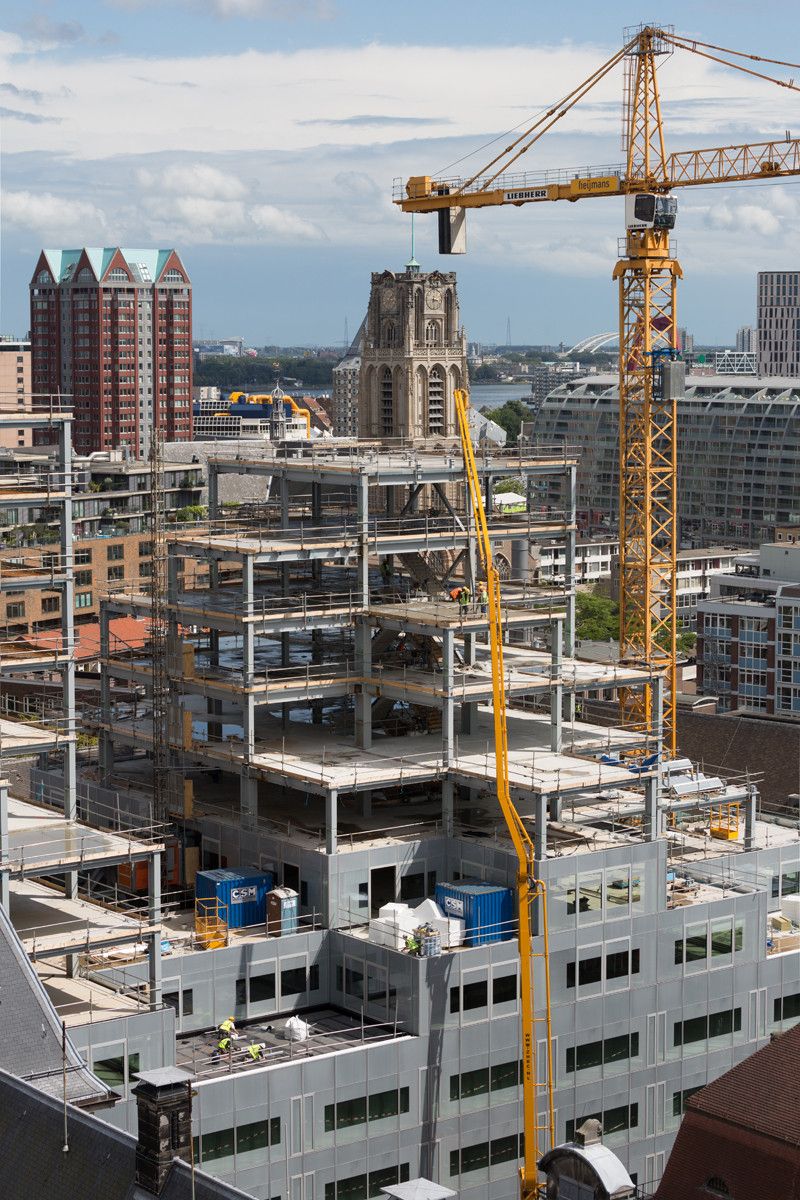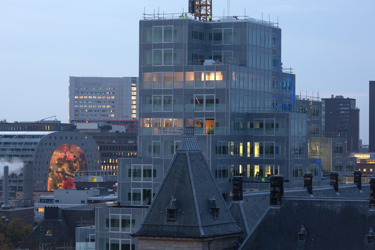 Rem Koolhaas states, “what is now needed may be subtlety and ambiguity in the midst of an overdose of form. We propose a ‘formless’ heap, consisting of smaller elements that are shaped to perform a number of major and minor responsibilities. Where necessary, the shape can be formal and impressive, almost symmetrical – for instance, from the Coolsingel, glimpsed between the two survivors – and where desired, it can be delicate and accommodating – for instance in its relationship with the existing monument, Stadstimmerhuis“.The design, led by OMA partners Reinier de Graaf and Rem Koolhaas, was chosen from five submissions by Dutch architecture companies following a public consultation period and the deliberation of an expert jury, which commented: “OMA’s design was the perfect combination of innovation and suitability for the surrounding context“.