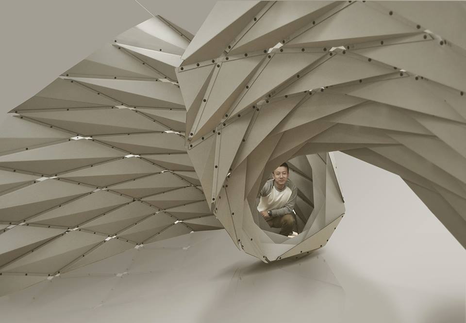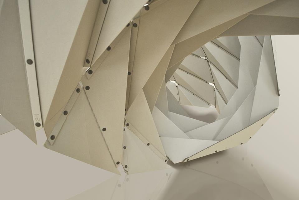 – a dear subject for the architect. The crease pattern of Ruga Swan was developed based on the Yoshimura pattern, which is known for its ability to produce an approximated arc form that has great structural stability. Ruga Swan is an example of irregular deployment of the Yoshimura pattern to create versatile and flexible architectural skins.