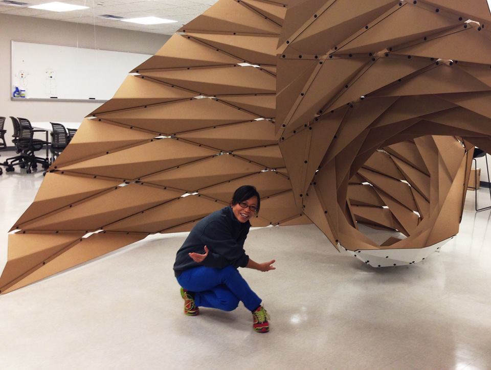 – a classic exercise, originally used at the Bauhaus. This reminded her of her childhood, when she used to play with paper. Since I was a child, I have always been fascinated by the art and the science of the folding paper. Paper folding seems to always start from a simple geometric pattern and then it evolves into a complex piece of art through the hands of an artist/designer, she adds. It is possible to see the art work live, as it is currently displayed at Hermitage Museum and Gardens in Norfolk, VA, from May 8th until July 26th