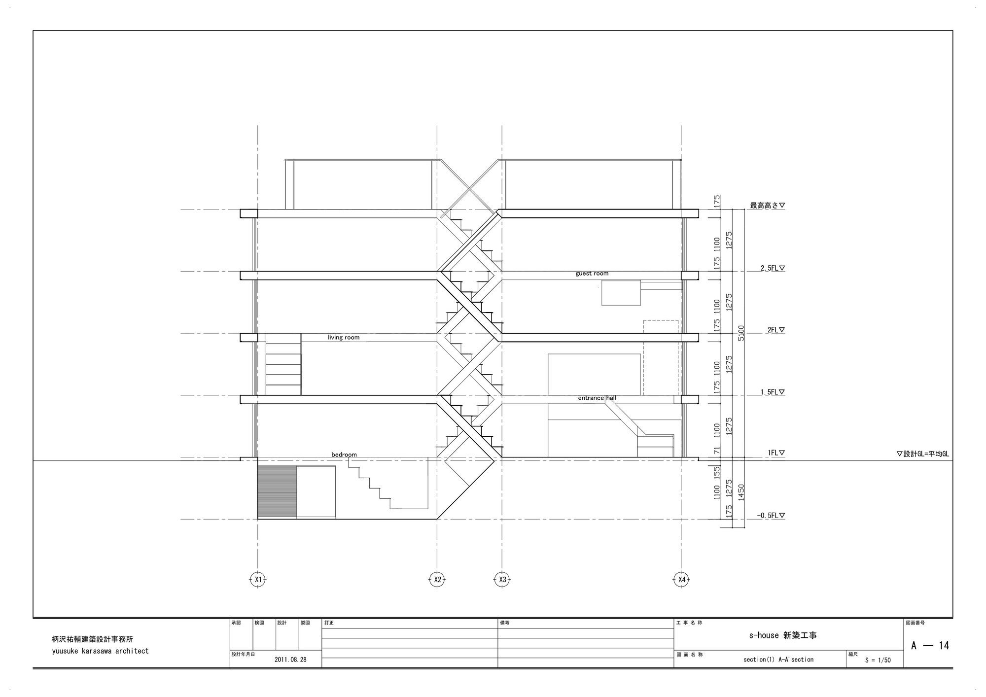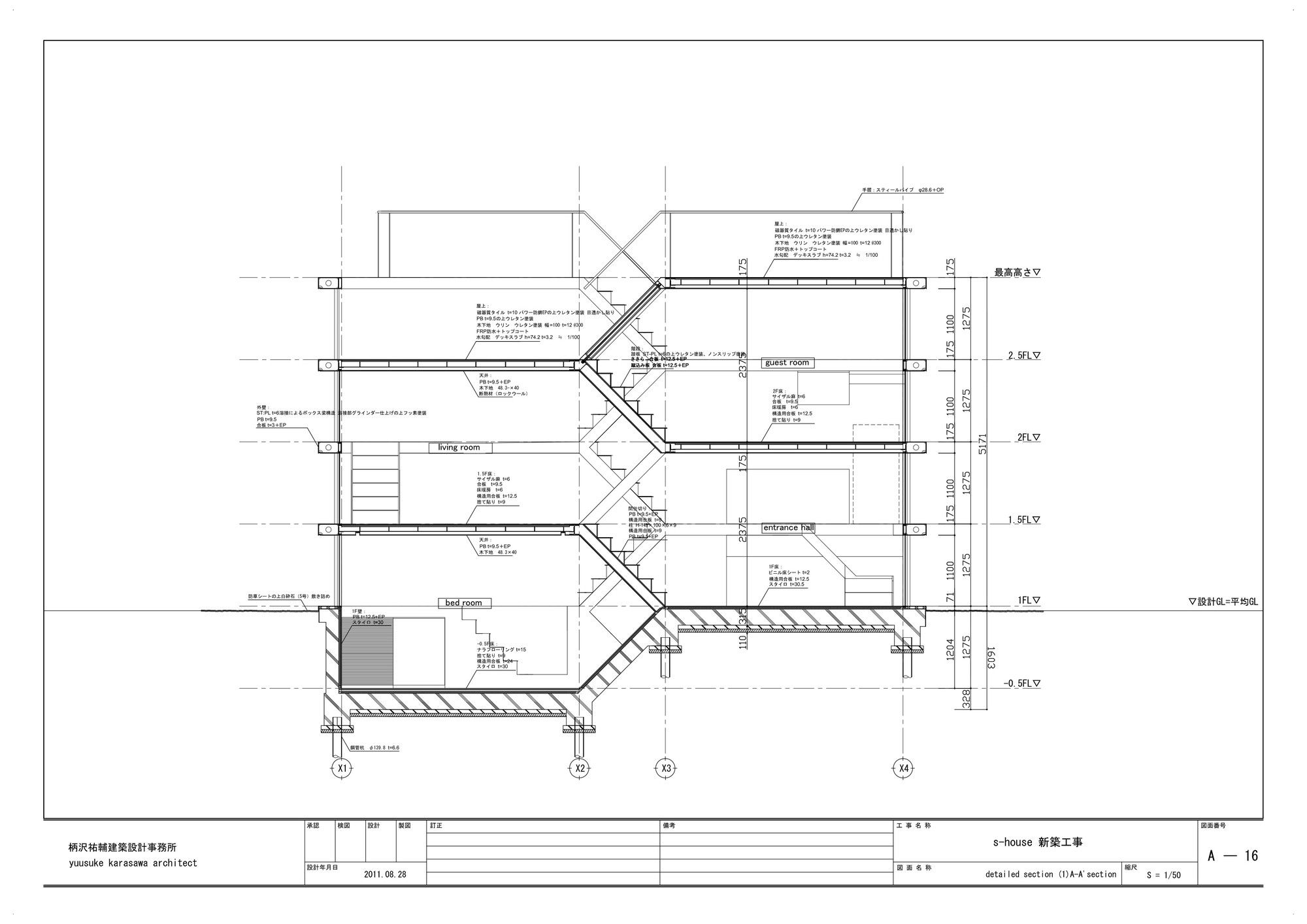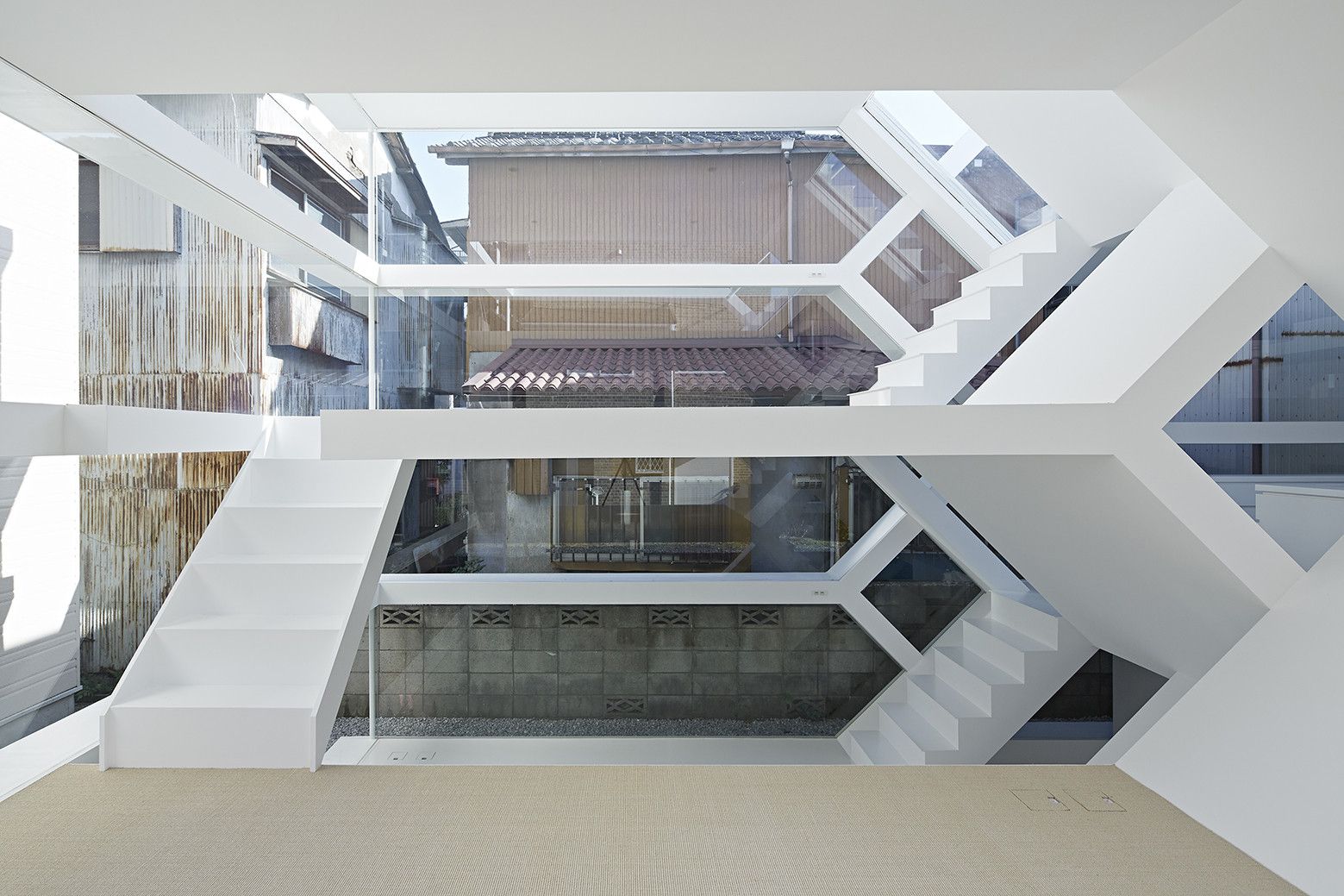 This astonishing design transforms the spaces into evenly sized rooms carrying all functions of the residence. The S-House plan is composed of a rectangular grid which has been divided into quarters. The quarters alternate between solid and void creating split levels joined by staircases, rather than corridors, in each floor. The vertical circulation connects the complex of surfaces from the basement level to the rooftop deck. “The floors themselves entwine diagonally, with a void that looks out to the opposing space created at the center of this complicated floor,” said Karasawa.