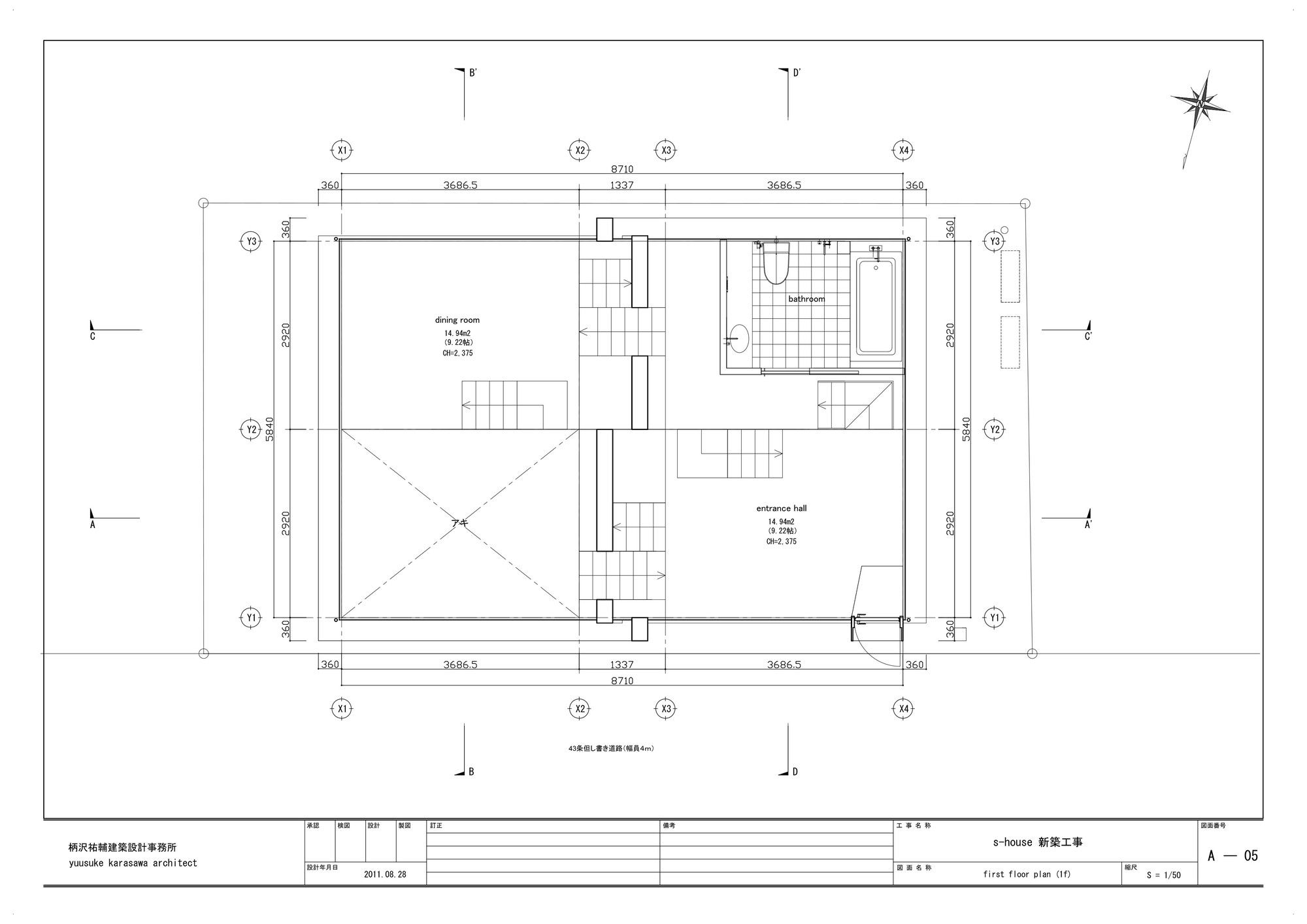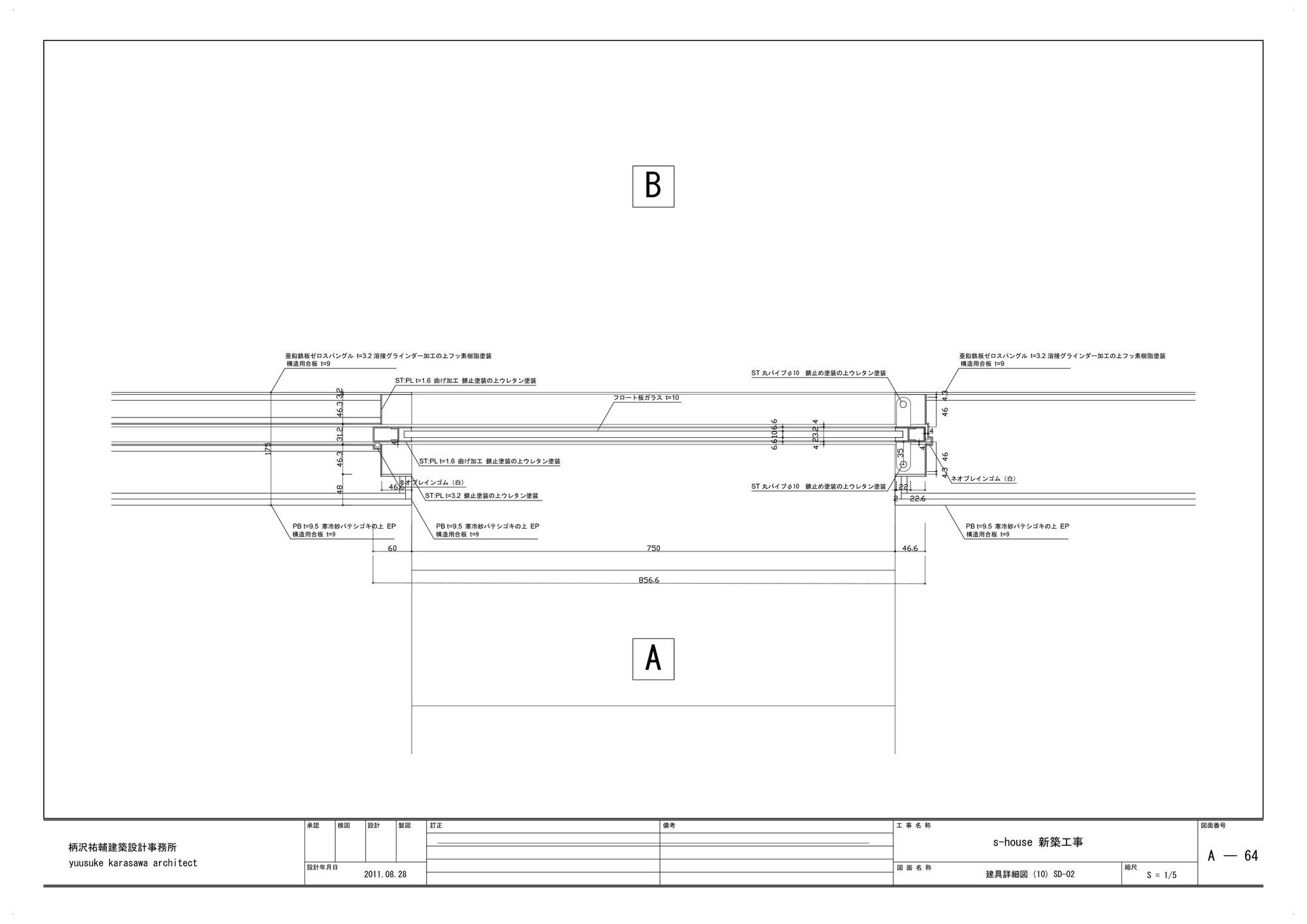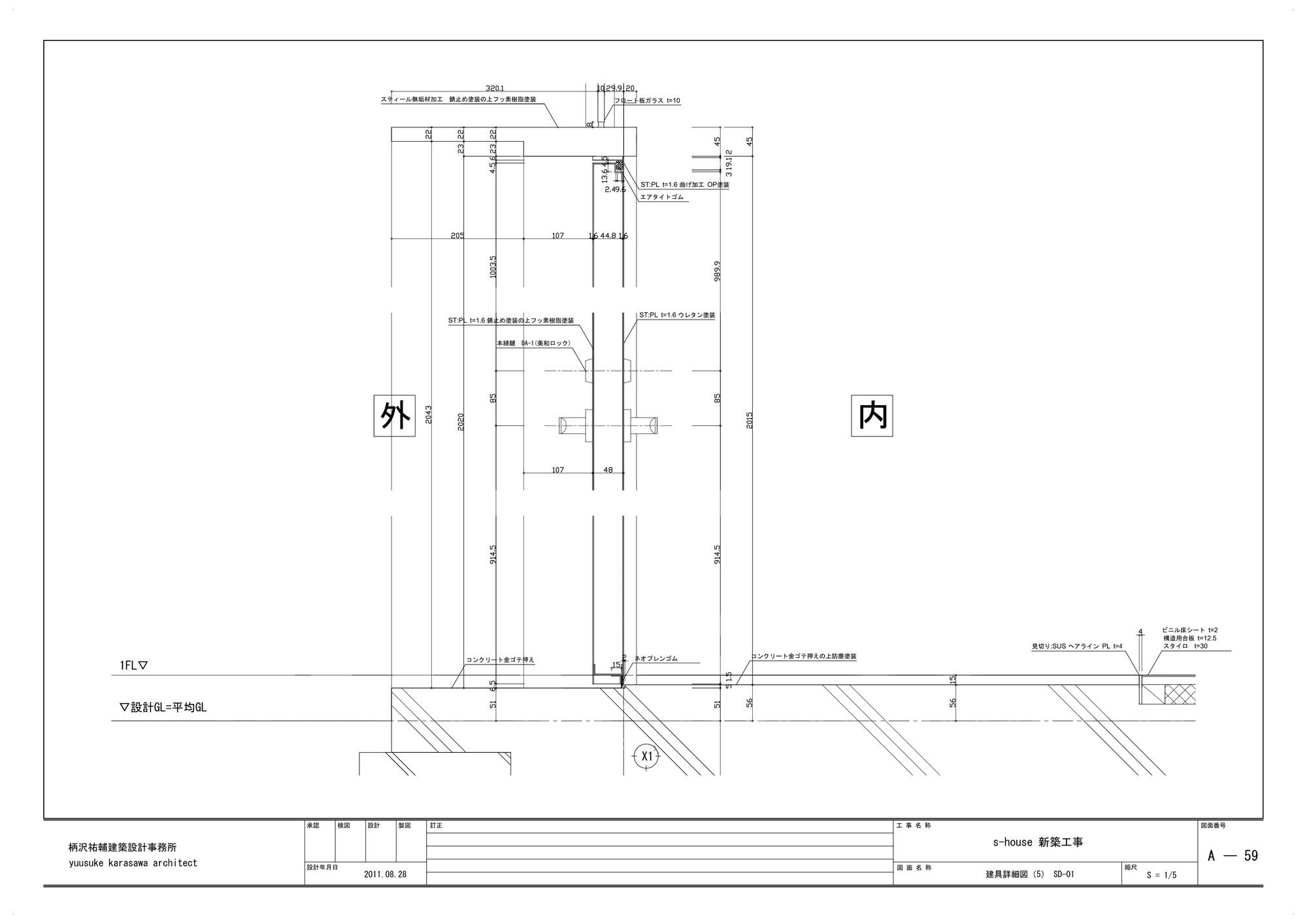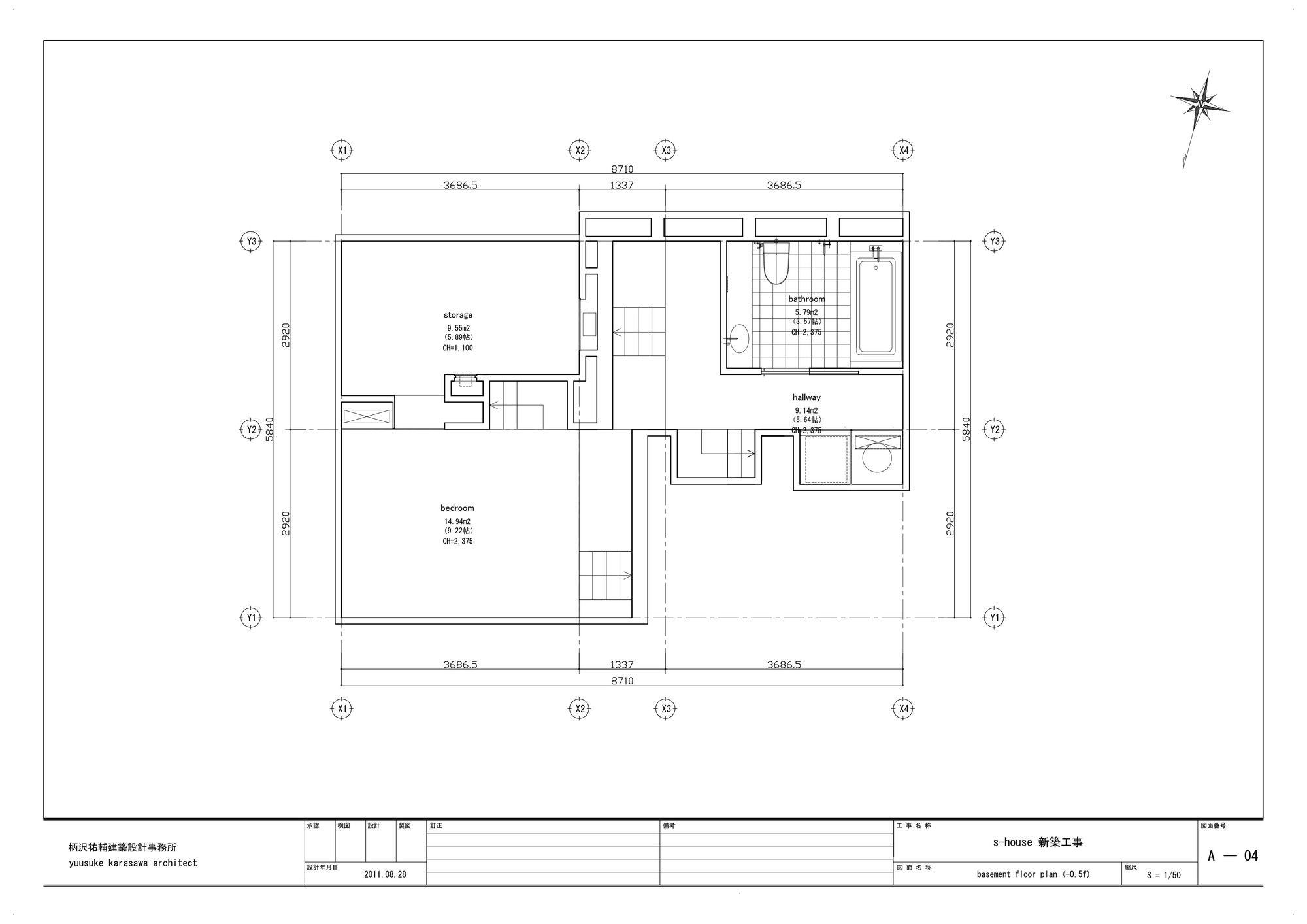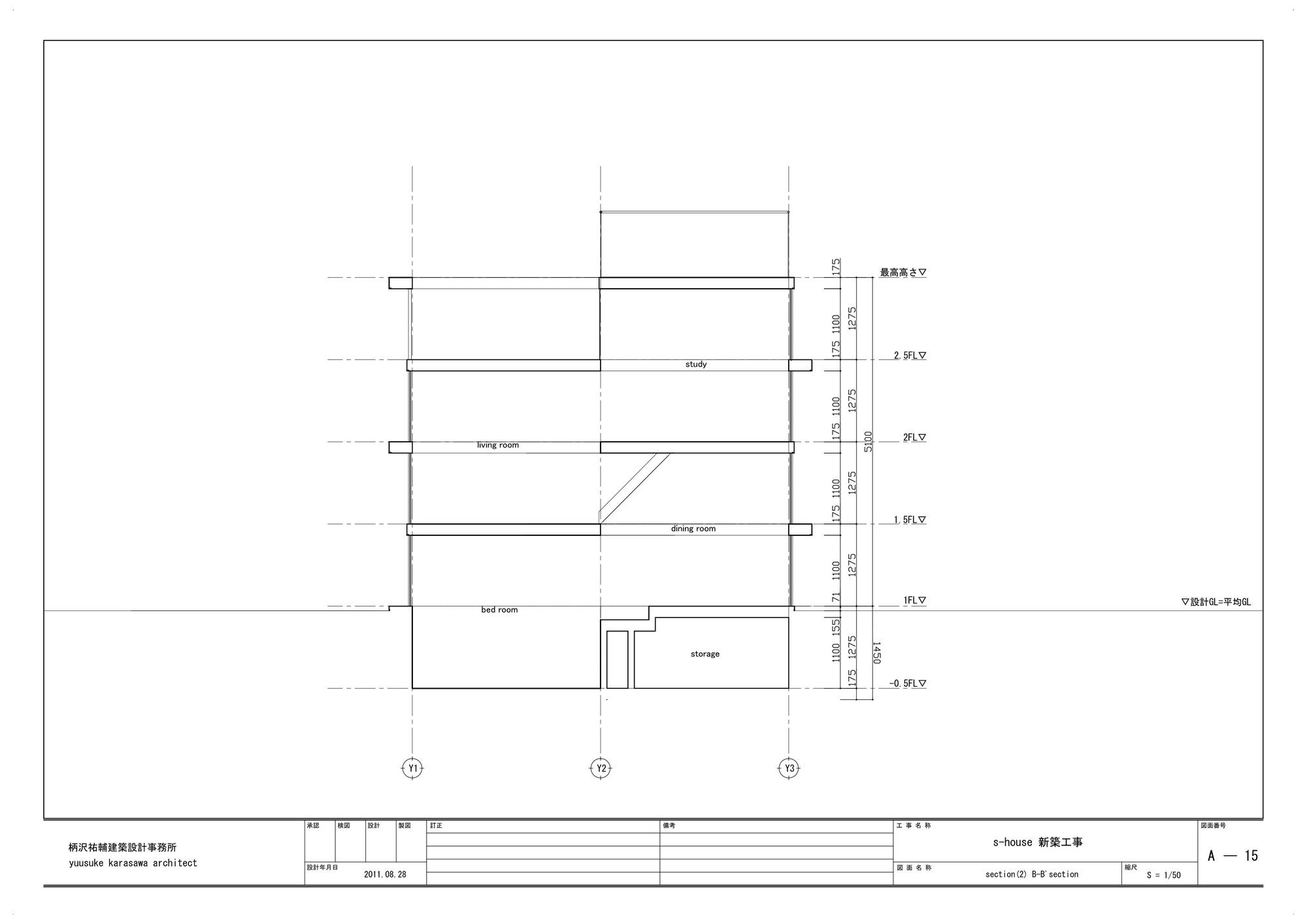 The glazed facades allow for natural light to enter while providing many views into and out of the S-House. Karasawa’s special organization of functions locates the private spaces such as the master bedroom, bathroom, and storage area at a below ground level. This lowest floor is sunken by almost two meters. On ground level, the main entrance and reception are located in addition to the dining room which has to be accessed through either the living room or the mezzanine kitchen.