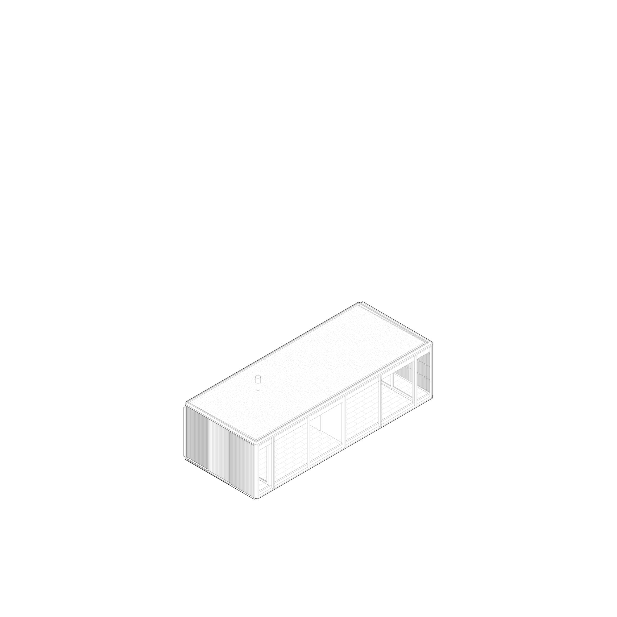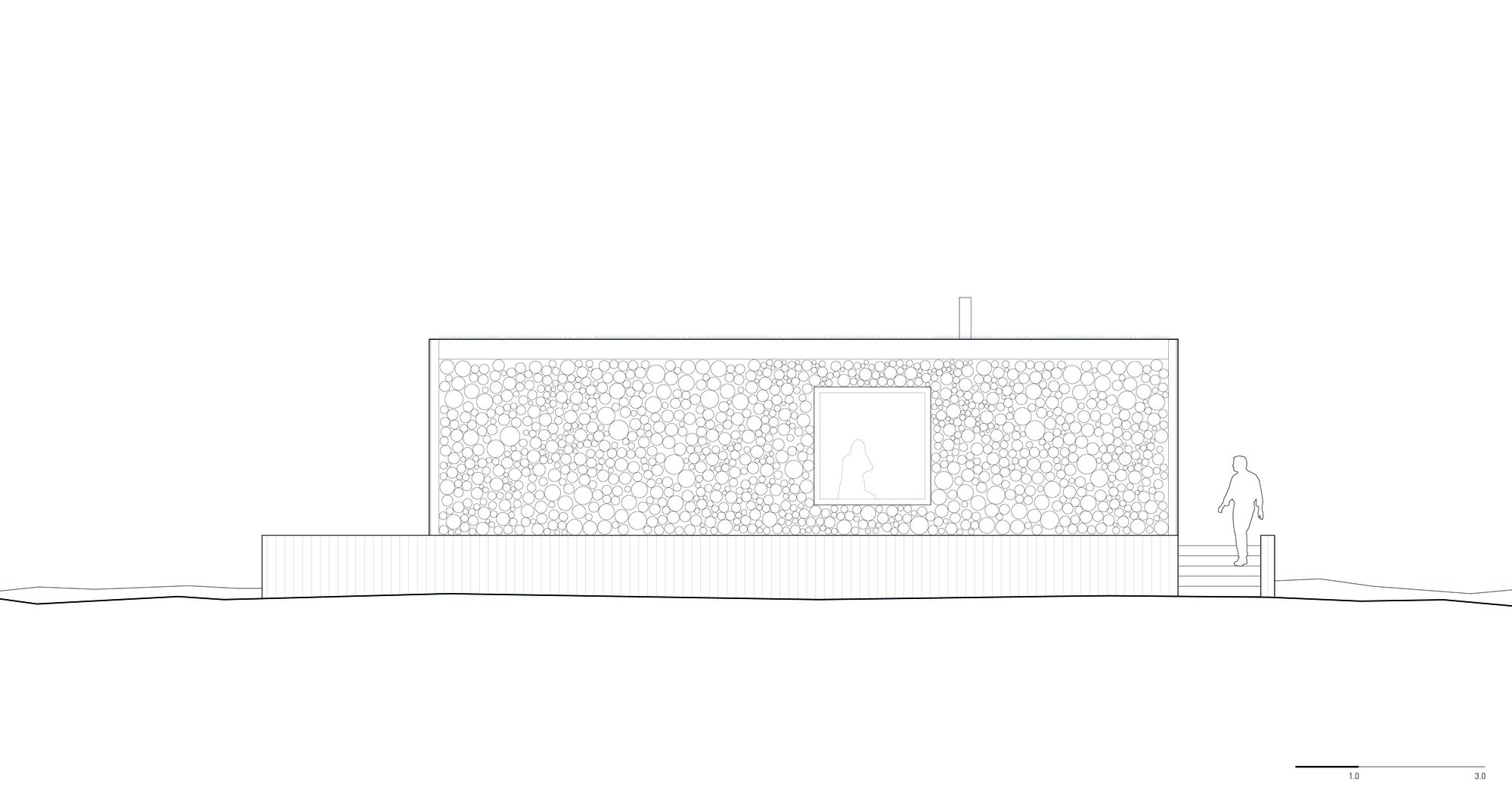 Space is organized in a sequence of longitudinal layers of different thicknesses, between which daily life develops. The rear plane of the cabins is composed of piles of wood logs, reminiscent of woodpiles typical of lifestyles in natural settings.
