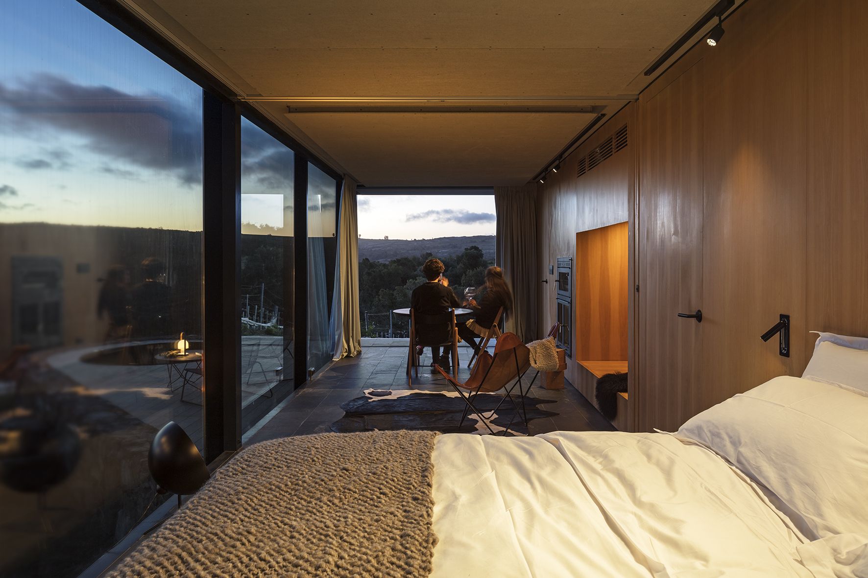 With the comfort and sophistication of urban hotels, Sacromonte Landscape Hotel substitutes the concept of contiguous rooms with exclusive cabins scattered through the landscape. In addition, elevators and corridors are replaced by winding paths. A total of 13 cabins (4 shelters and 9 landscape shelters) are disseminated over the Sacromonte topography, seeking the best locations. A winery with a restaurant set among the vineyards, a reception area with a wine store and a hilltop terrace for wine tasting put the finishing touches to the hotel facilities.