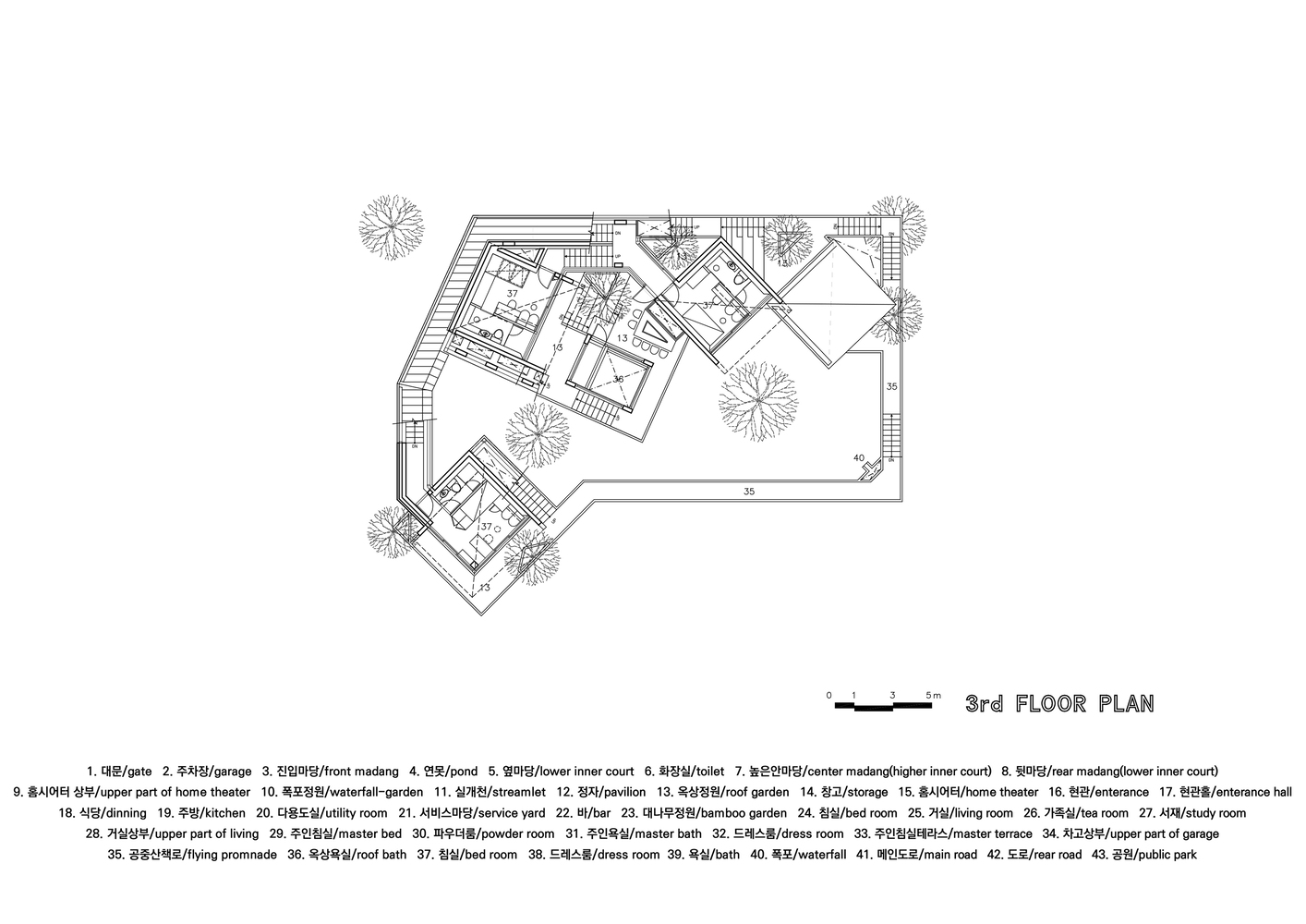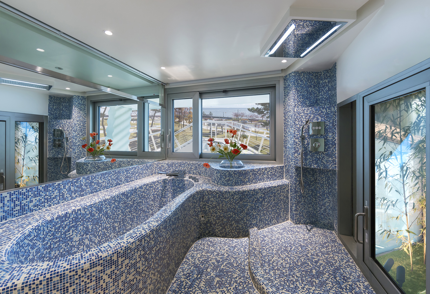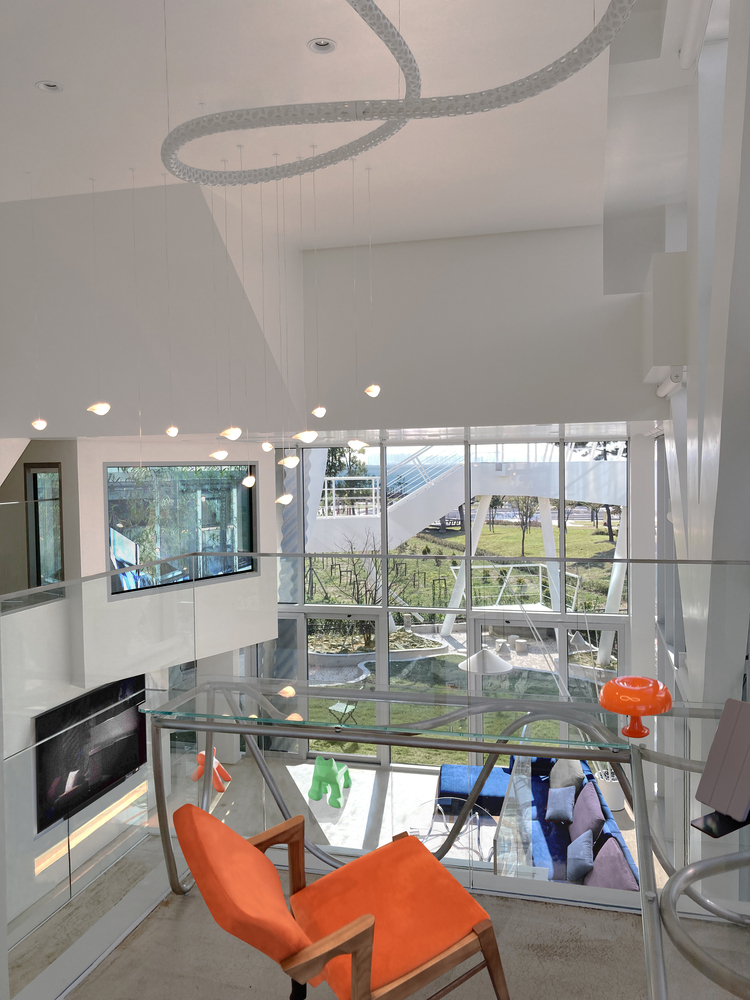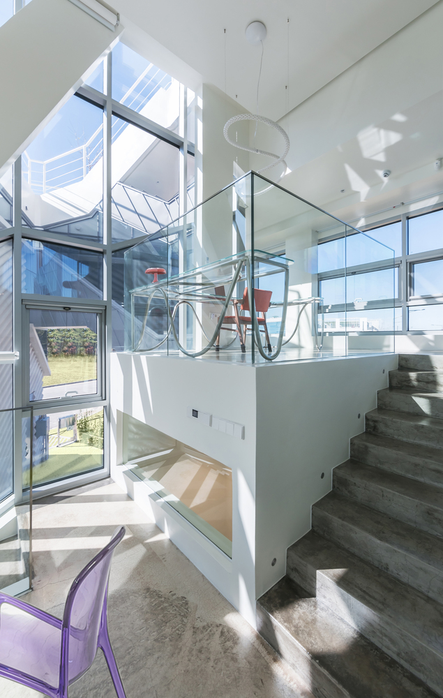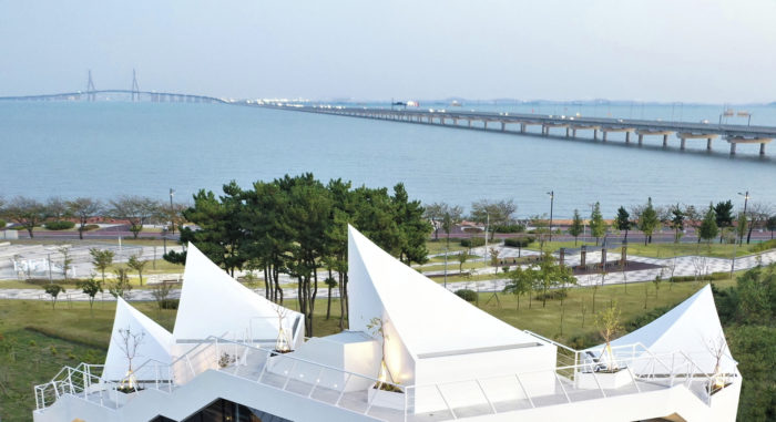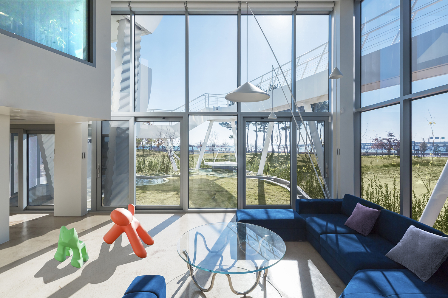 Outdoor terraces grace each room, offering panoramic views of the Incheon Sea. These terraces seamlessly connect via elevated promenades, creating an observatory-like experience and encircling an intimate courtyard.