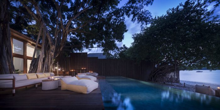 The design process starts with these two questions: what Sala’s guests would like to see and how they would like to live when they stay at Chaweng Beach. Onion decides to leave a maximum open-air space next to the beach. This courtyard functions like a bright living room. There is no attempt to control the circulation. Guests are free to walk around in whatever direction they want. The circle is right for this purpose. Daybeds and umbrellas around the circular swimming pools have no direction. There is no particular spot to enter the swimming pool. Guests may sit, walk and lie down at any part of its perimeter wherever the water level is for their posture. The swimming pool’s floors gradually slant to the niche wall. Each niche fits the human scale for a reason of privacy. At night, lighting design mimics an ambiance of a full moon in the water. Onion also adds the white swim rings, named Onion Ring, as a friendly gesture.