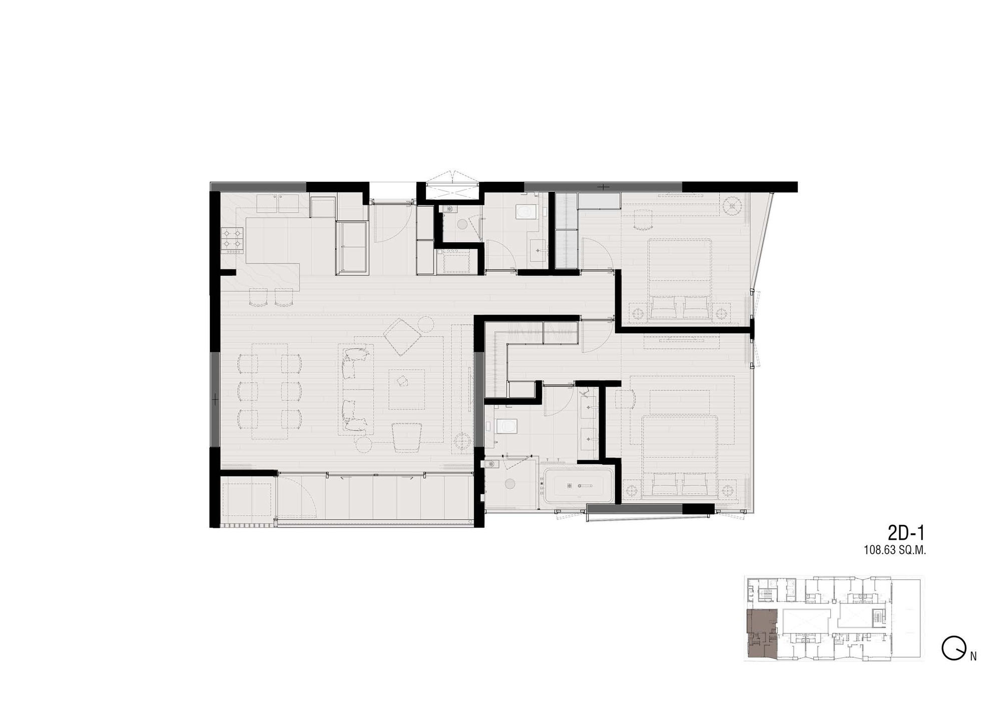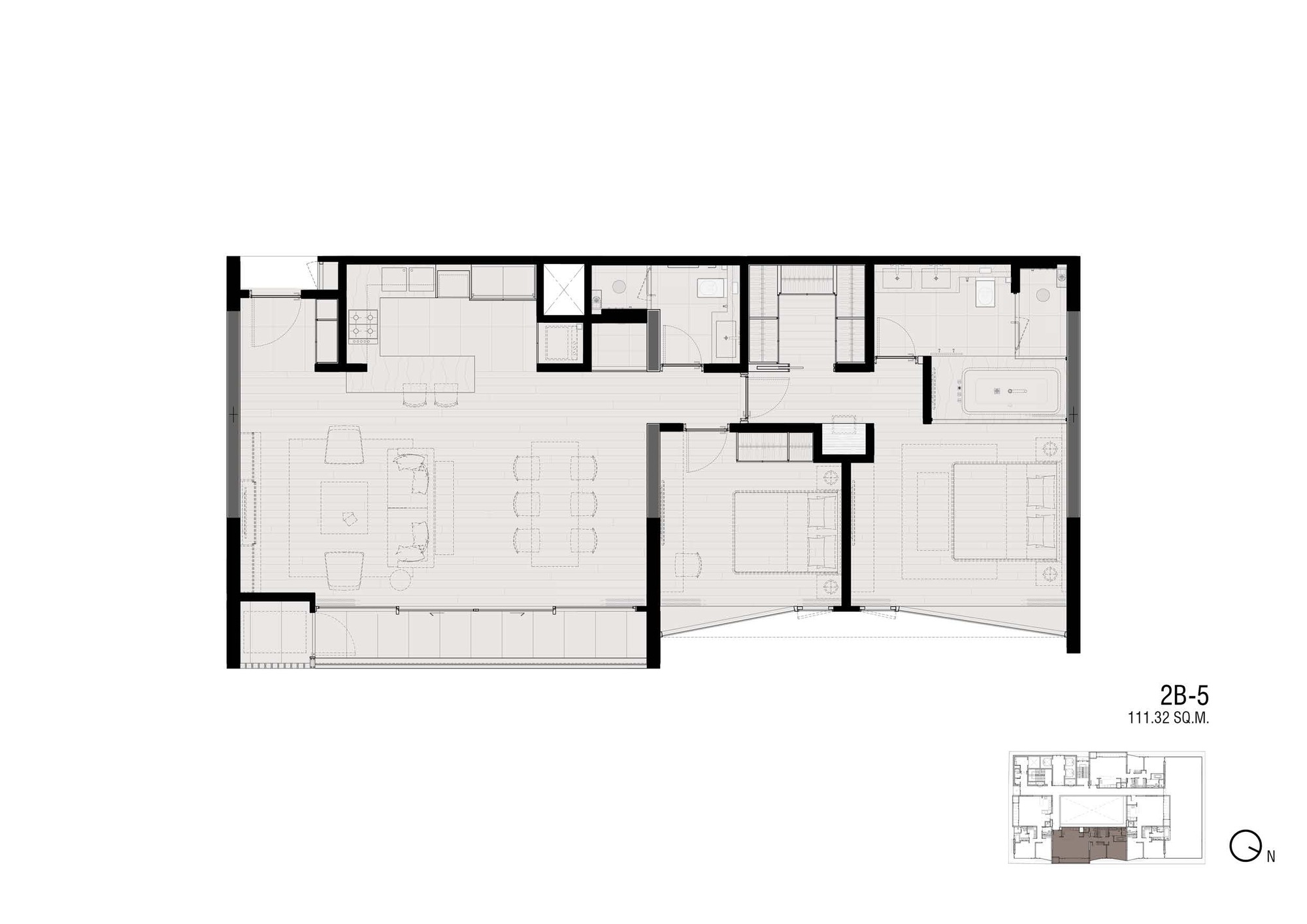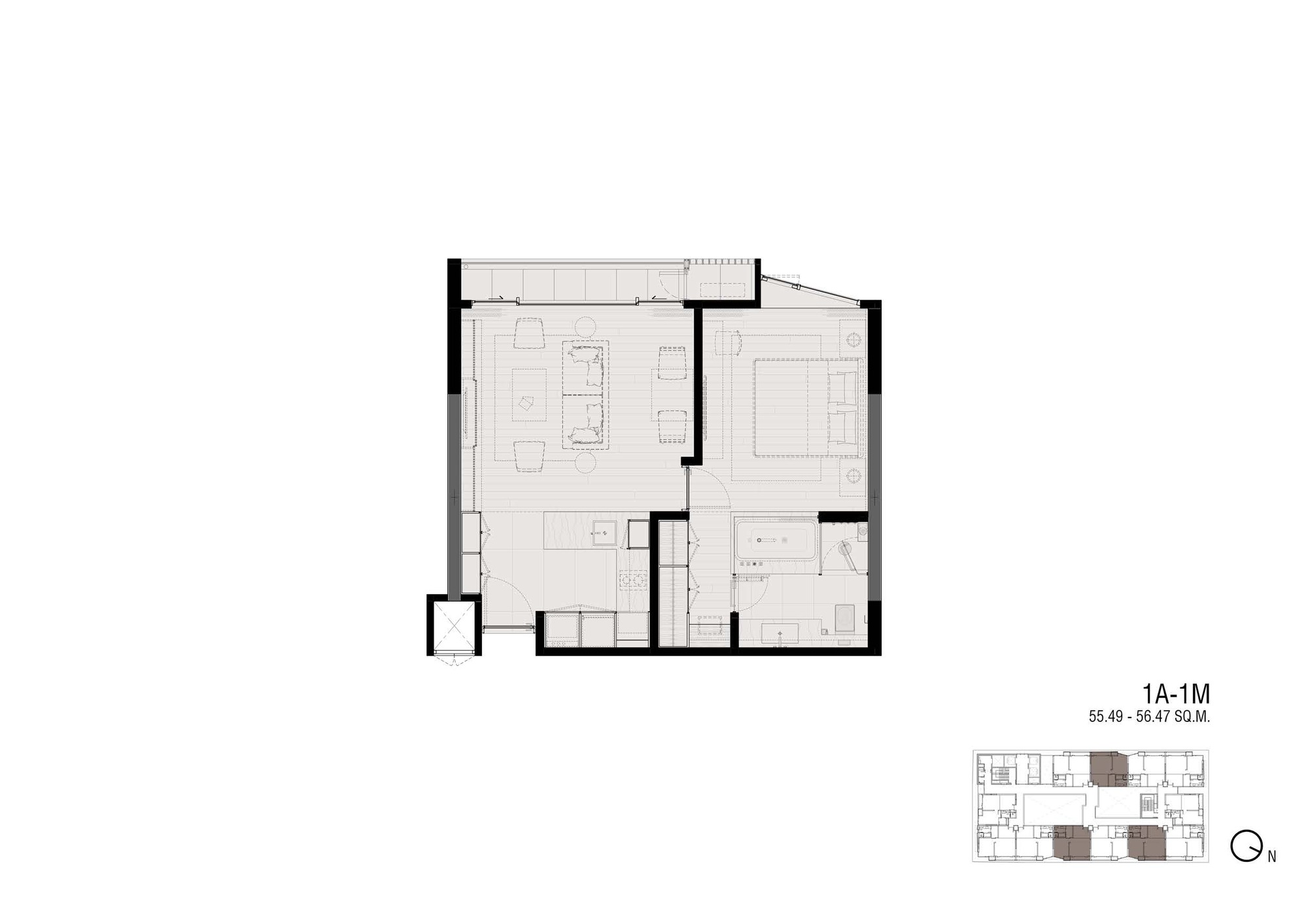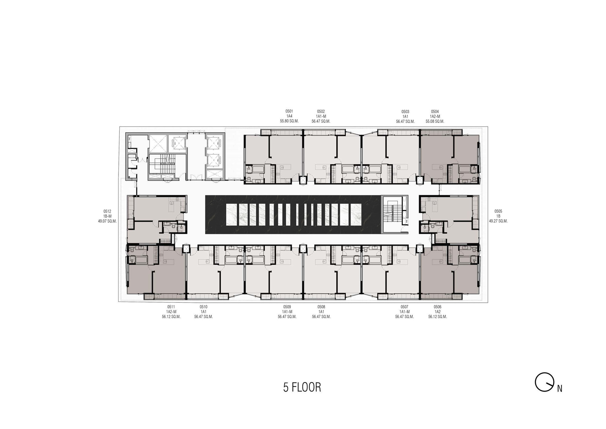 Marble Accents: While the overall building is composed mainly with the impression of white marble, a few accent spaces, such as the entrance canopy is highlighted by inserting a contrasting block of black marble to float above the space. The building crown, on the other hand, become a glowing block floating at the very top to signify the project’s unique architectural identity among other great high rises of Bangkok skyline.