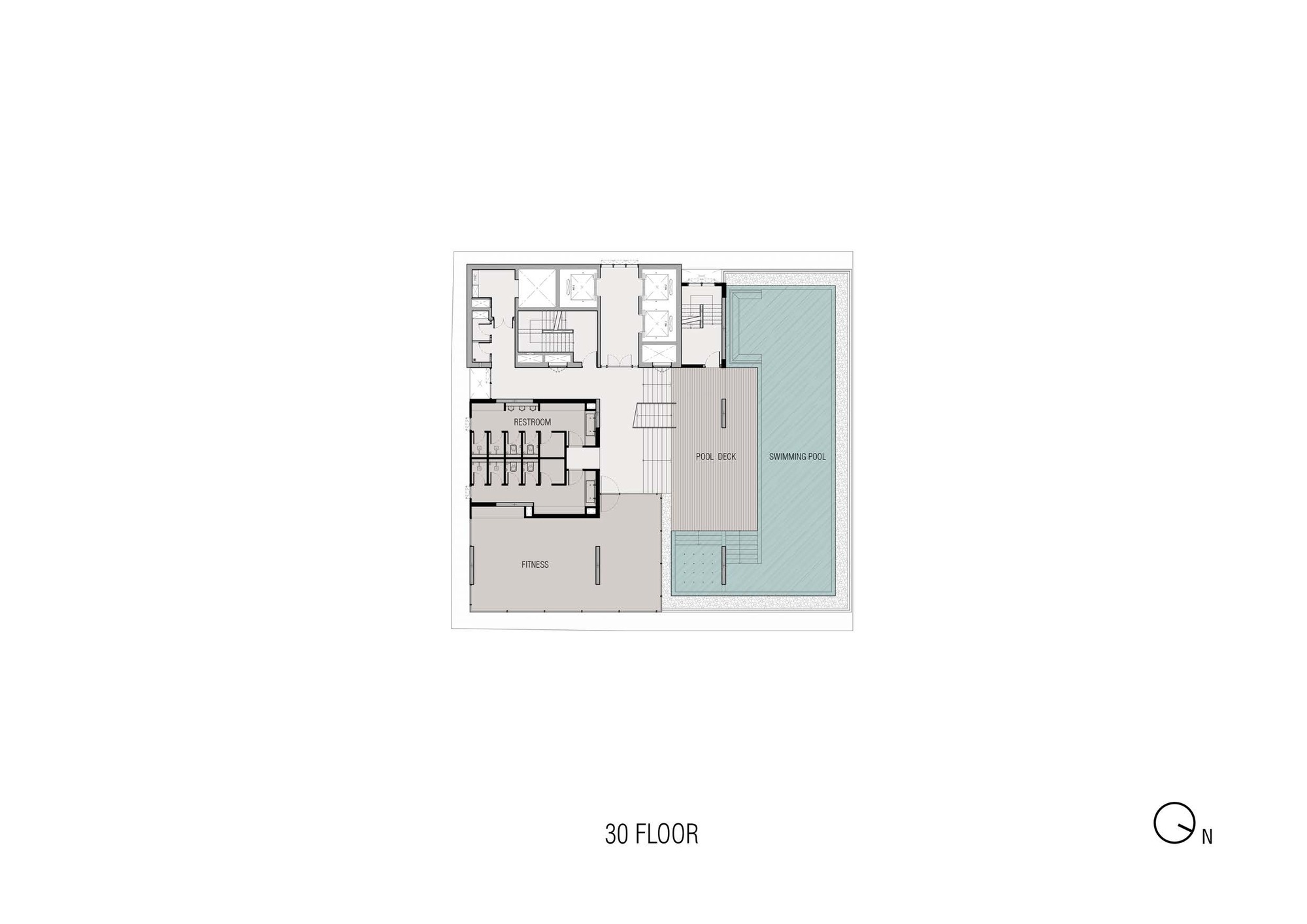 The concept of Tropical High Rise is then applied to the design. The first tropical feature is unique horizontal shading fins. They help to reduce glare and shield large windows from rain. Gradient of fins thickness create a dynamic touch to the overall composition and a refreshing touch to the skyline.