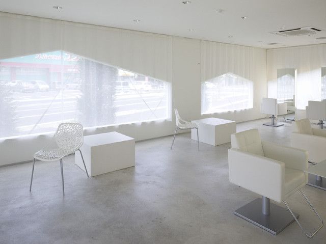 It seems to assemble space while connecting the paper which clipped out a chevron figure. A repetition of the same figure produces the delicate deviation from every day required of a hair salon. And it gives the whole building fictiveness.