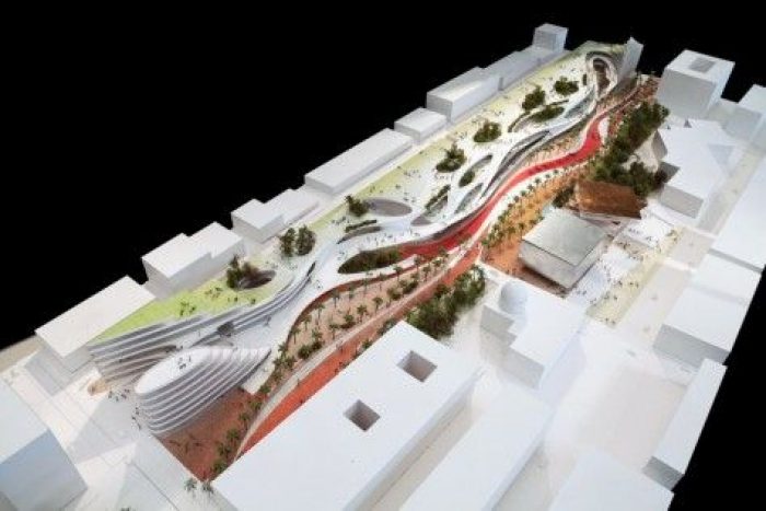 The neighbourhood of San Berillo in Catania, Sicilly has always had a negative reputation. An ample demolition took place here in 1958, after brothels were banned, leaving 30.000 people displaced or homeless – an action linked to Vatican’s Societá Generale Immobiliare. The problems amplified and continue to exist this day. The public administration wishes to solve the urban degeneration of this area of Catania by implementing architect Mario Cucinella‘s 2012 rehabilitation master plan proposal. The main aim of this project is to connect the city center to the Ionian Sea coast, with the help of a large pedestrian boulevard. The urban void was redefined by tracing a new east-west axis and connecting the street grid. All of the existing fabric, functions and transport routes were taken into consideration – for example, taking the underground metro line as a design articulation. The architectural concept is based on a tectonic geometry realized with four intertwining plates accessible by ramps or stairs, pierced with interior green courtyards, which form loggias and terraces. The result is a 3D urban square inspired the gardens of Babylon.