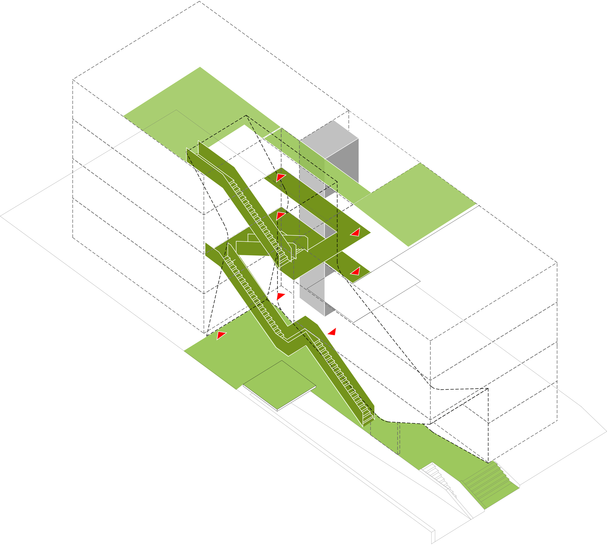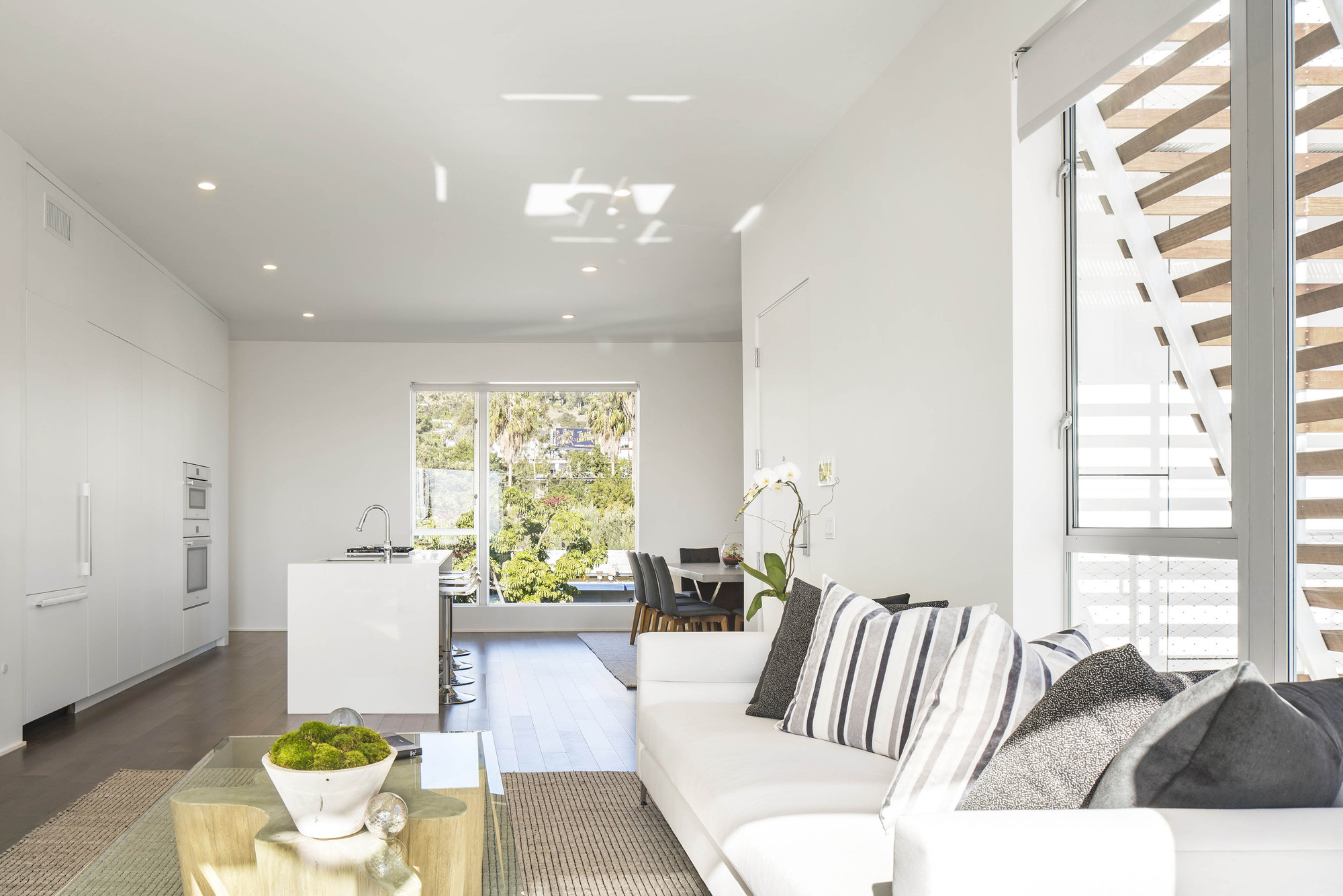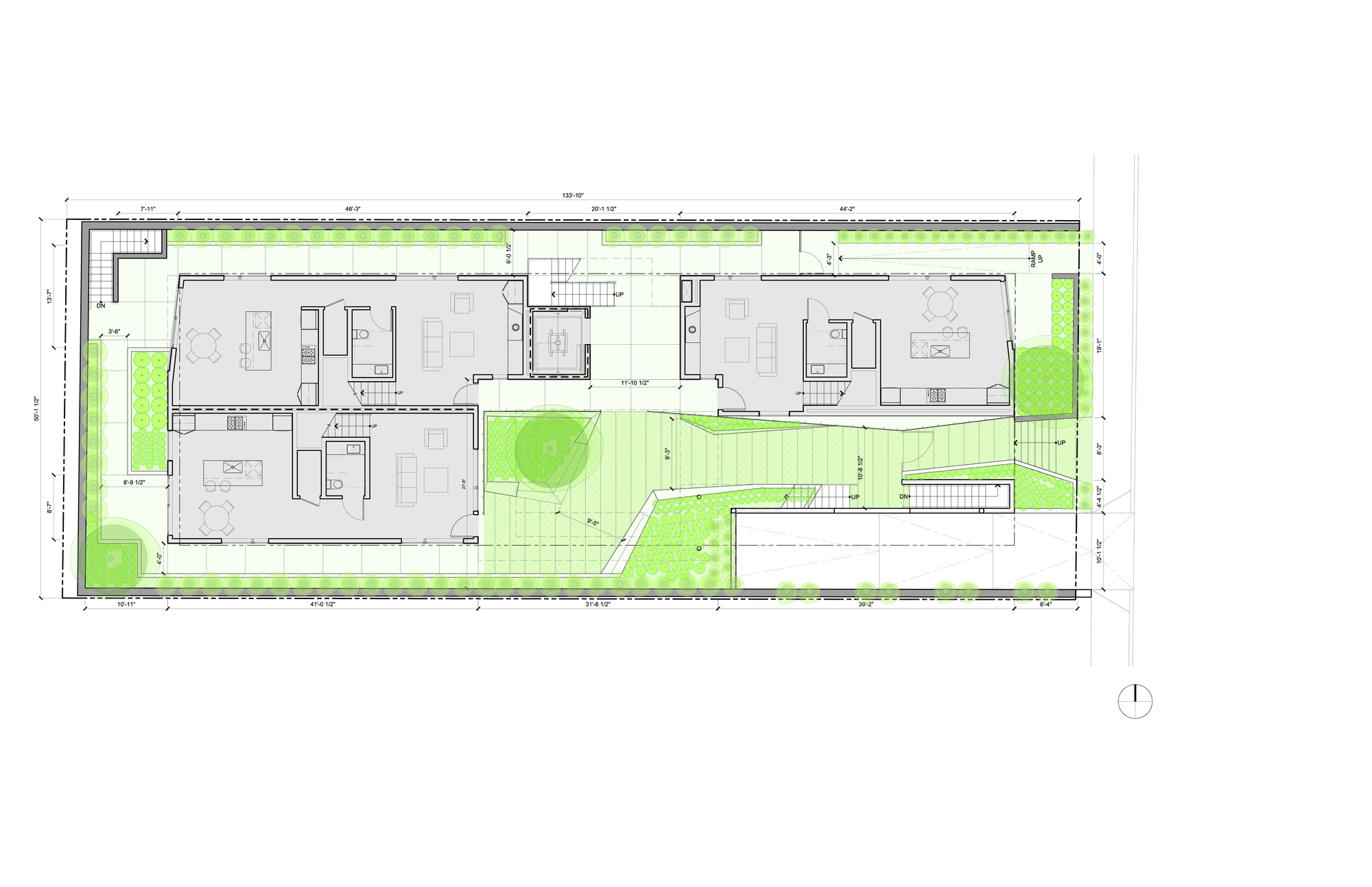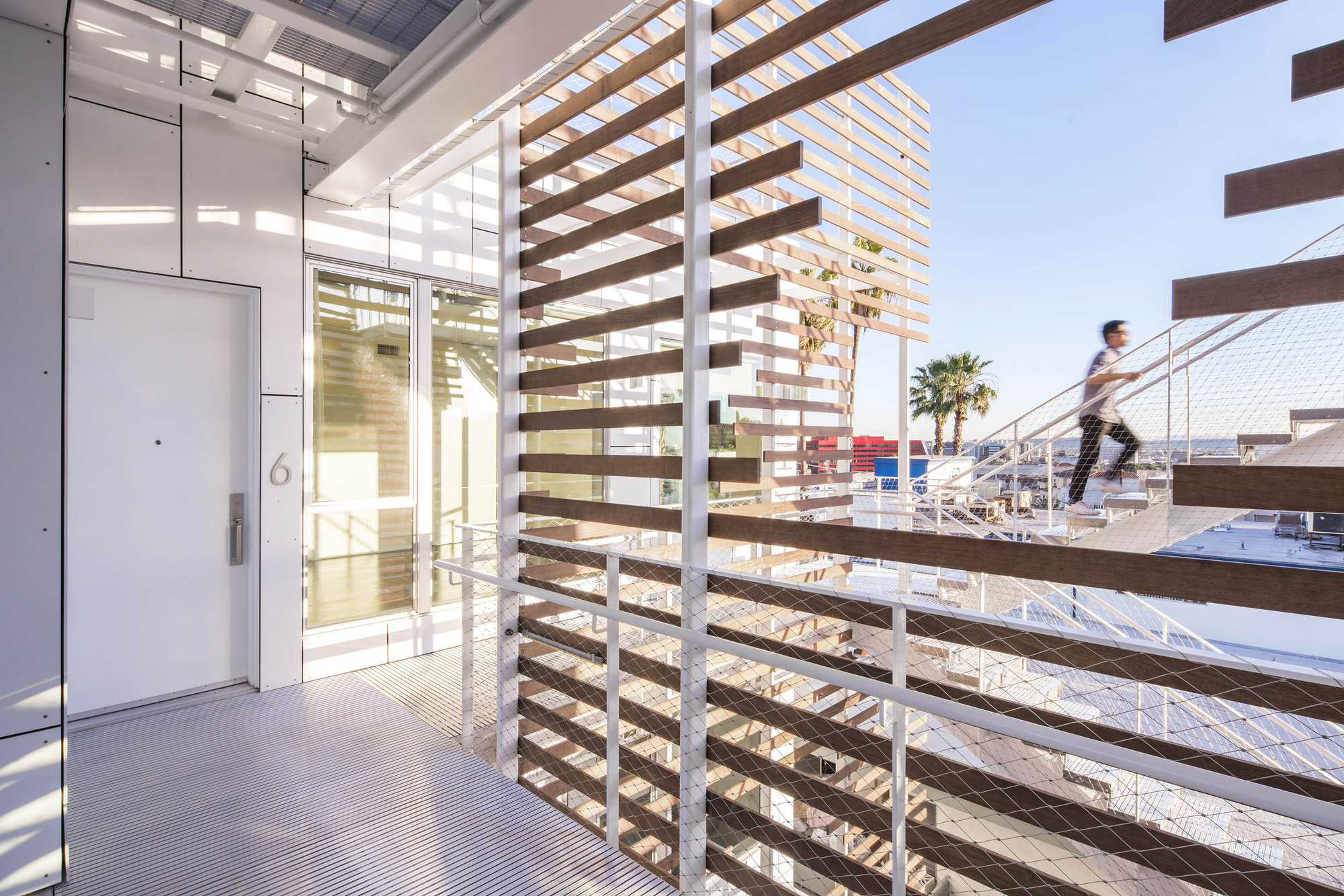 Entered from ground level, there are three walk-up, two-story town homes and on upper floors, four single-story flats. All units have at least three exterior exposures allowing light to enter from all sides. Additionally, all units are all single loaded, providing cross ventilation and passive cooling.
