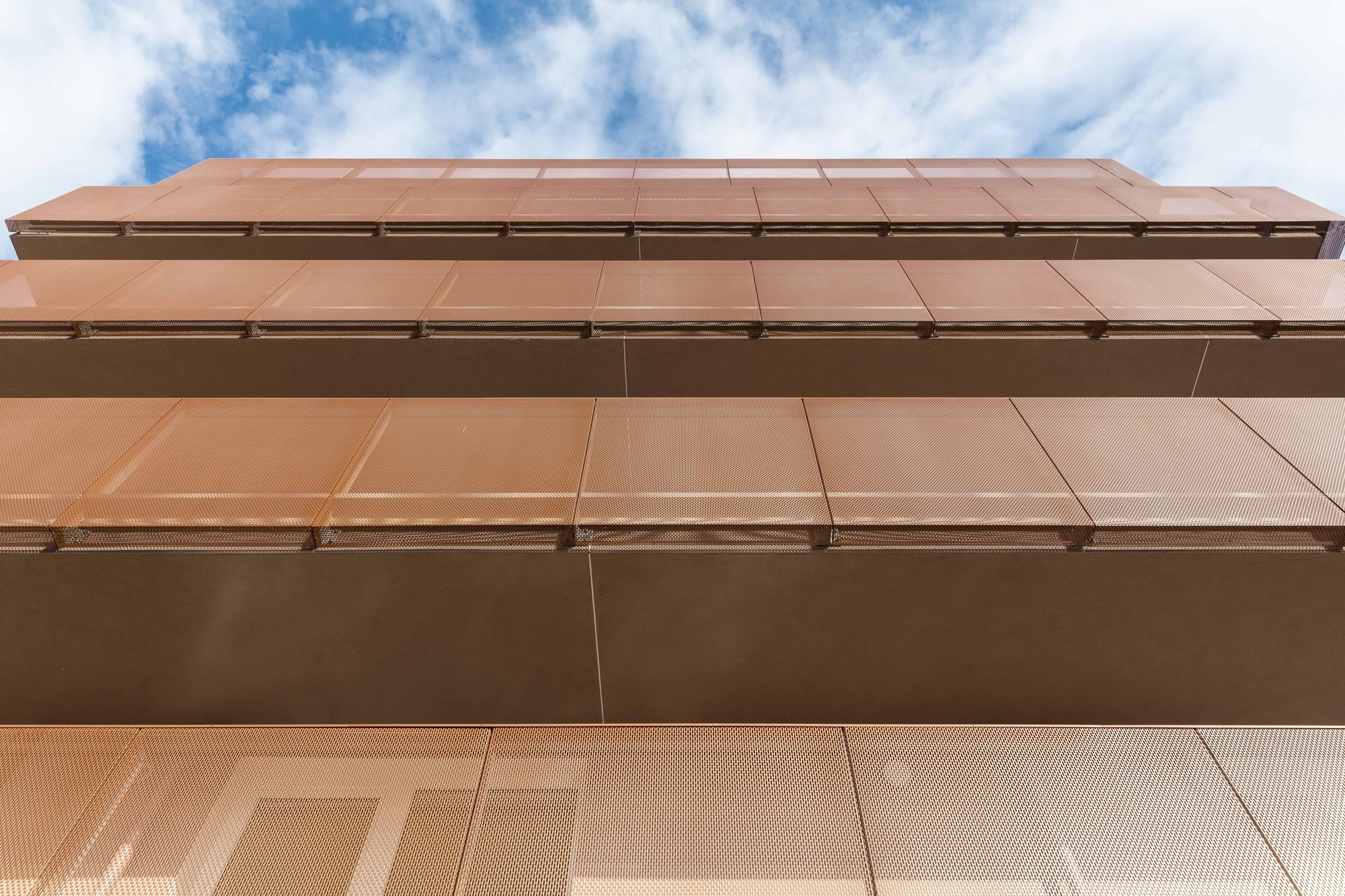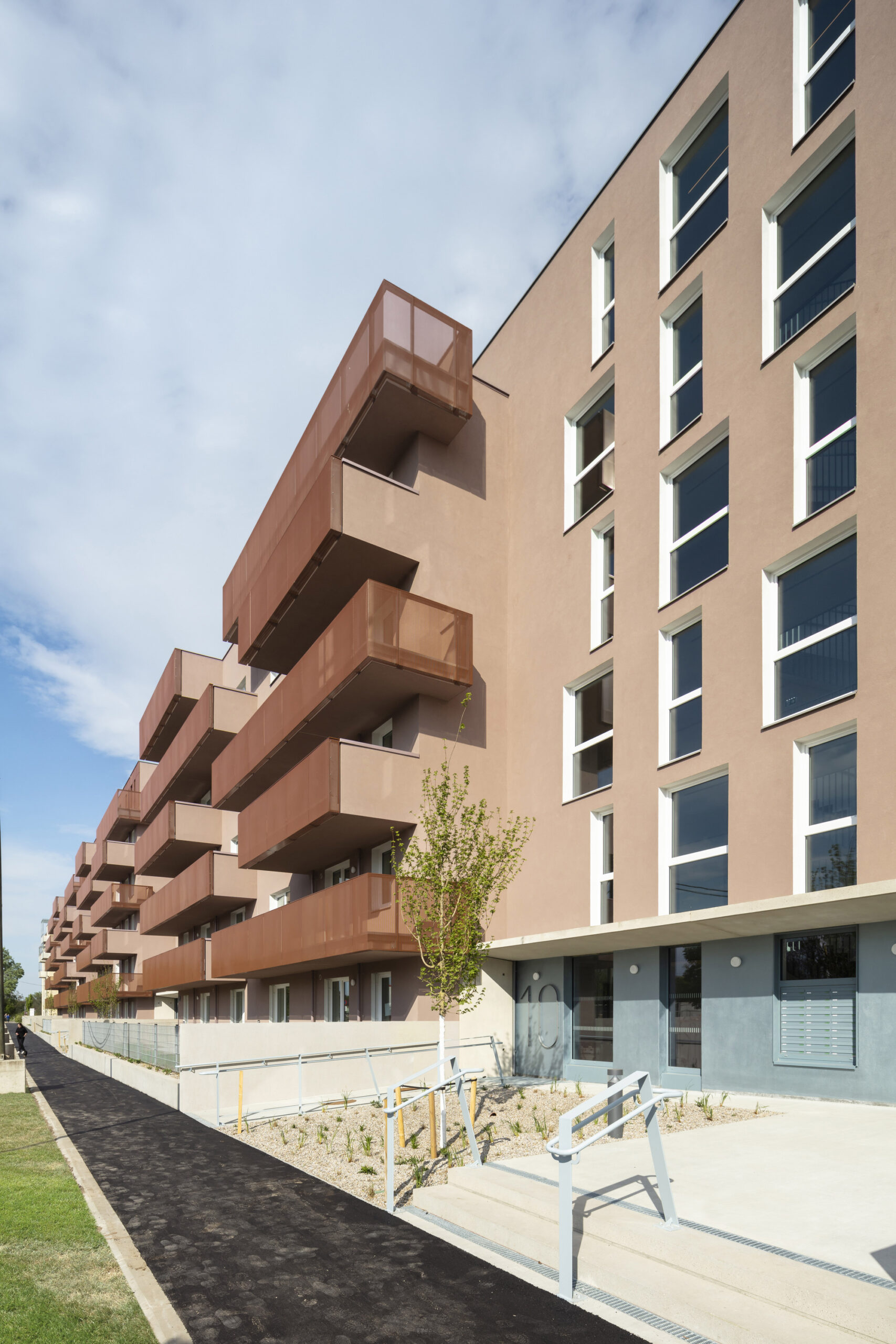 SCH Housing an den Schichtgründen is low-priced housing with a whiff of magic. The finely detailed construction of the rust-colored, perforated aluminum balustrades sets off the carefully layered and vibrantly cadenced forms which lend a unique allure to this high-density, mid-rise housing estate.