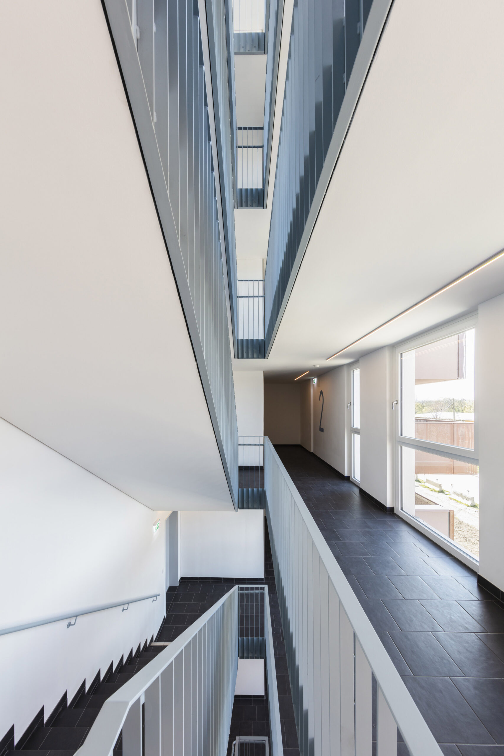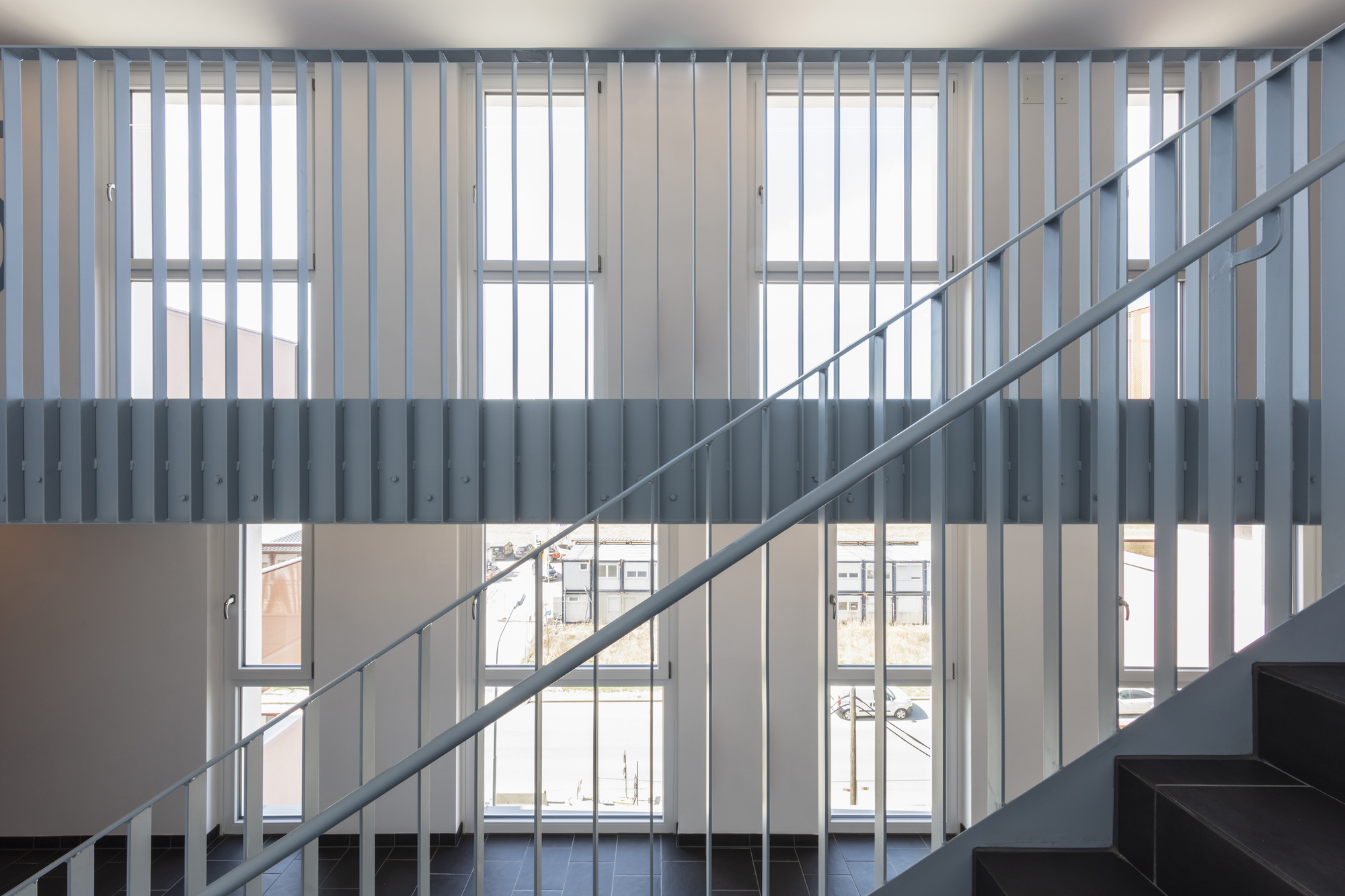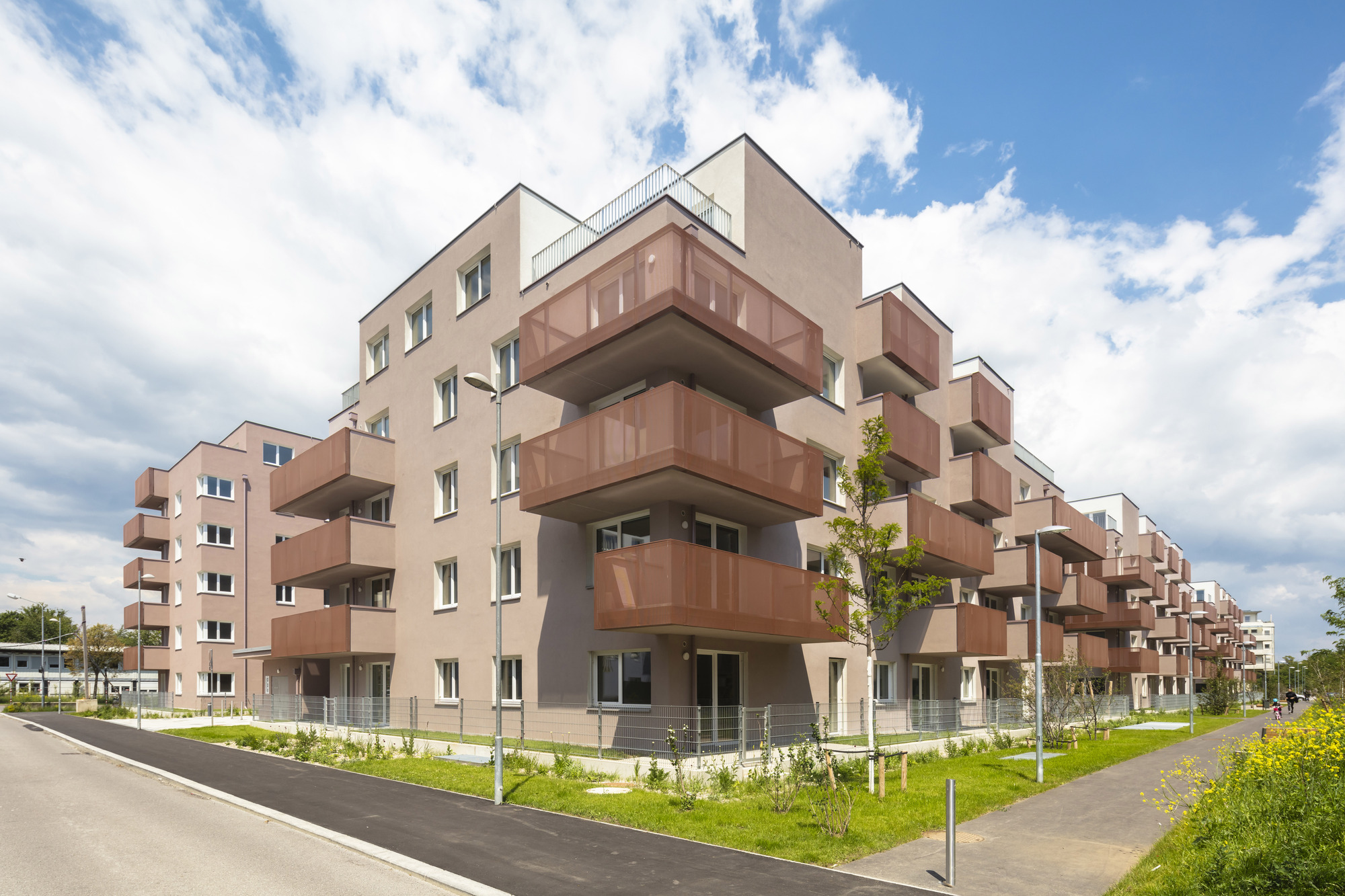 The balustrades frame the airy and attractive apartments and mediate between the privacy of the individual apartment and the spaces of the estate and the city beyond. The buildings’ powerfully sculptural facades structure 130m long building fronts into attractive and well-proportioned segments and establish clear and legible street addresses, imparting the estate a distinctive urban identity. The Schichtgründe are a brownfield urban redevelopment zone in Vienna’s historically industrial district of Floridsdorf.