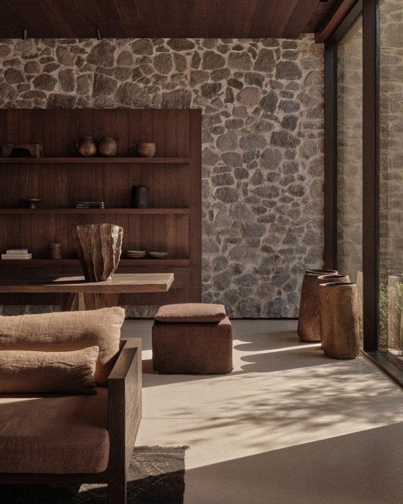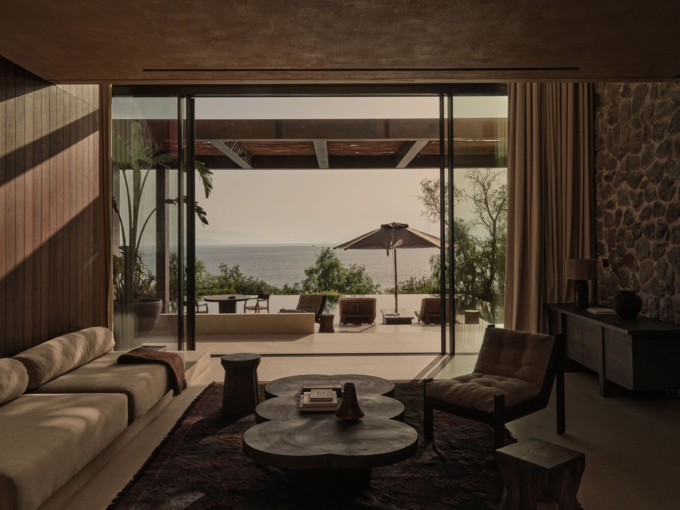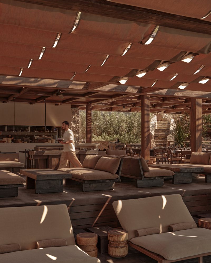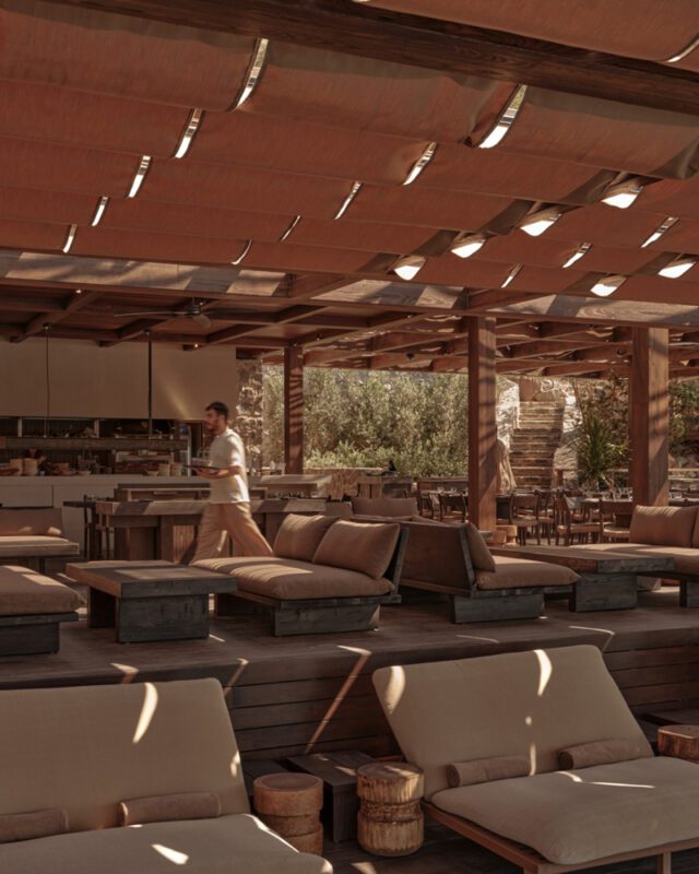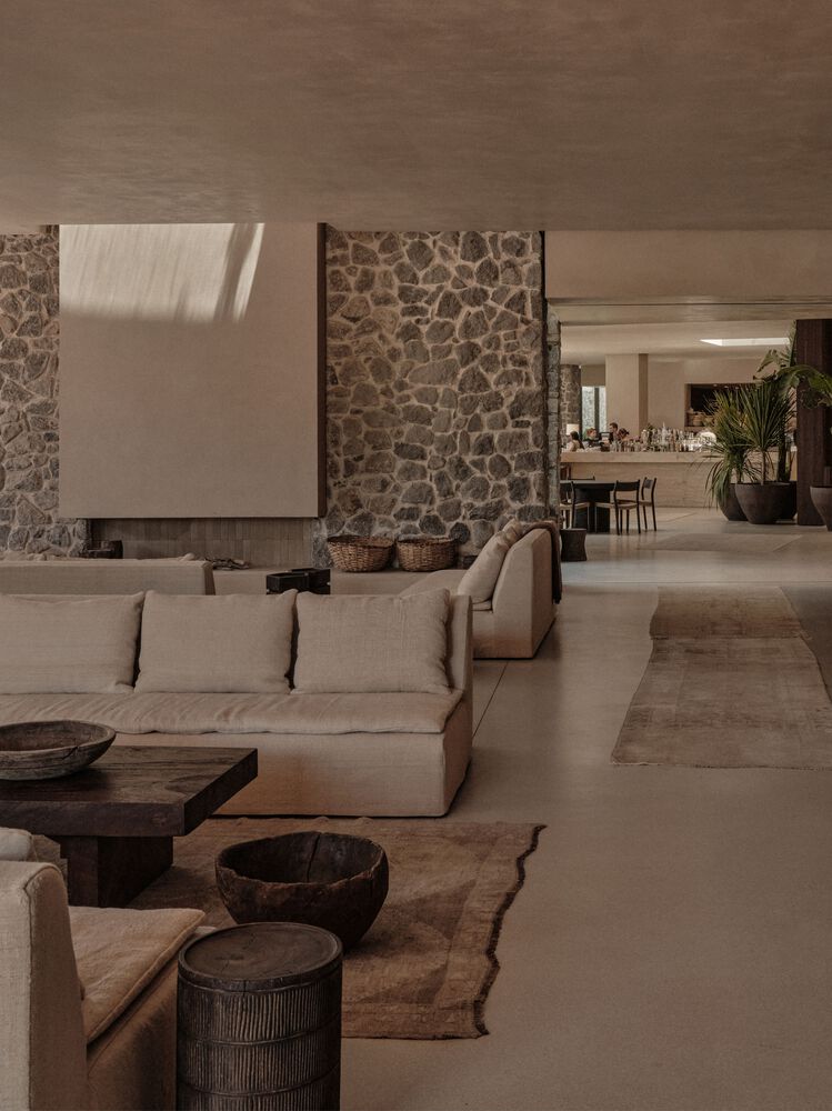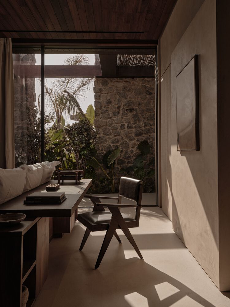The main house is divided into four distinct yet harmonious volumes. Each space has a focal point, such as a fireplace, island bar, or open kitchen. Sight lines through the spaces create a layered experience, while each area can be closed for flexibility during the low season or special events. “We envisioned ‘The House’ as an inviting living room where soft modernism breathes new life into the Mediterranean vernacular, fostering a meaningful dialogue between the past and present.” – StudioMacBride