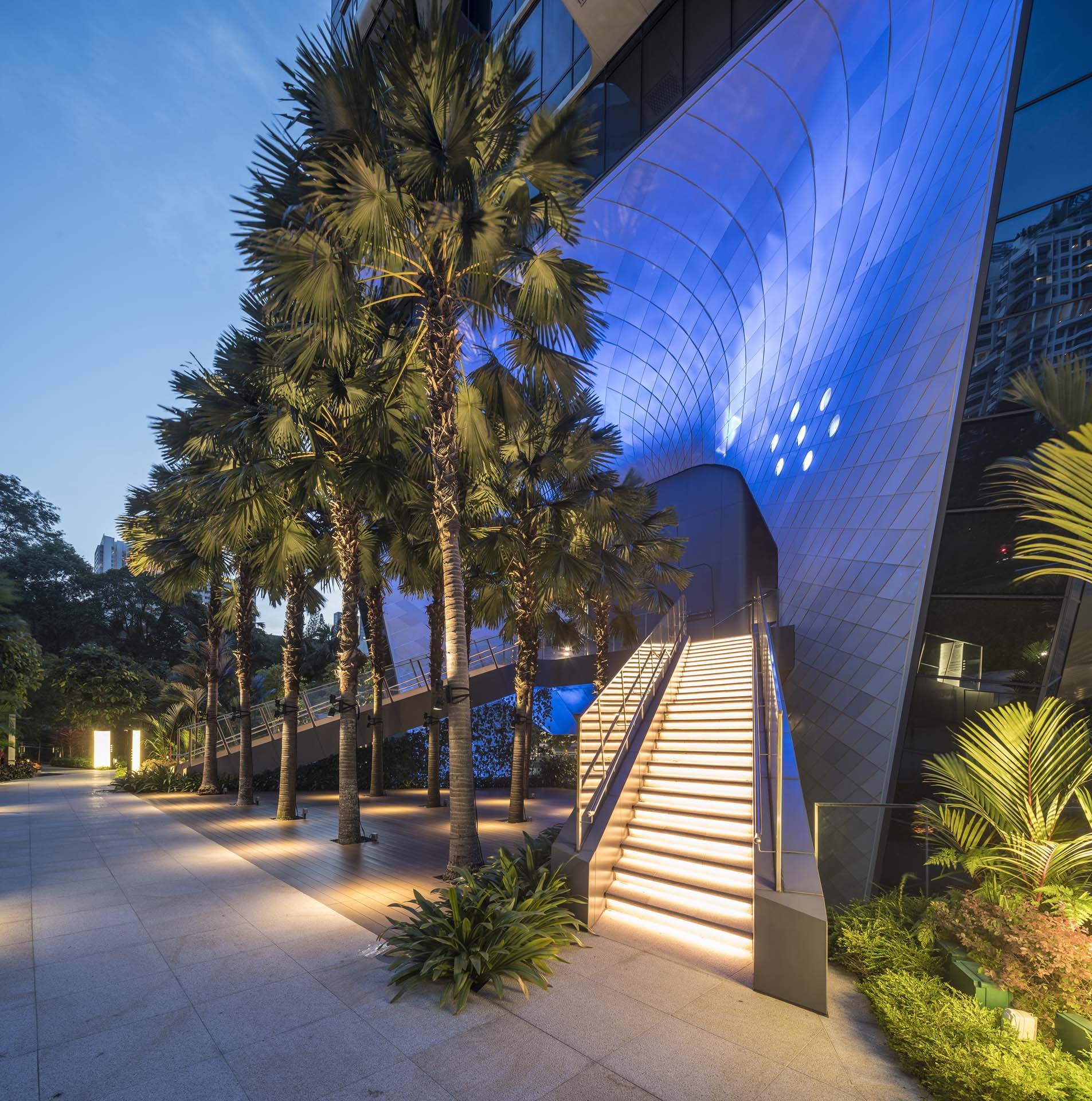 The nearby green area to the West of the tower is extended into The Scotts Tower site initially by means of a ground level landscape concept designed by Sitetectonix. This ground level concept incorporates a multi-layered environment which links together the different zones and recreational facilities available to the residents.