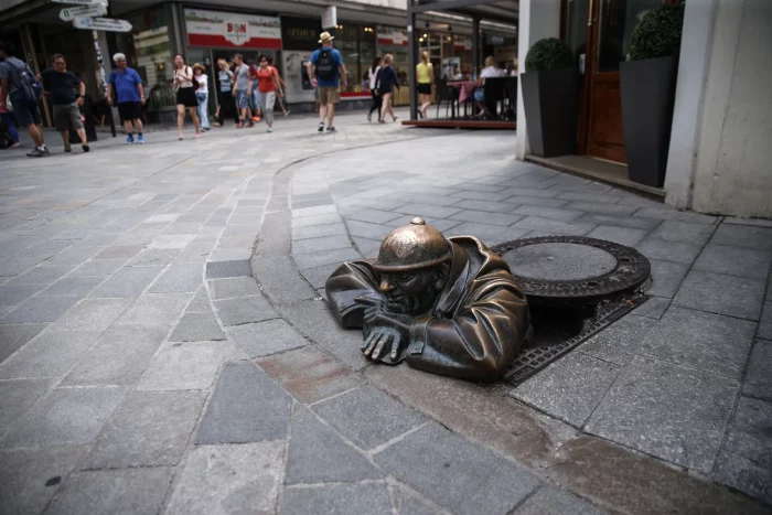 Given his perspective peering out of a maintenance hole and the sneaky smirk on his face, it makes perfect logic that it is the Slovak word for “watcher.” Following Slovakia’s independence in 1947, the city commissioned several public works, including The Watcher by local sculptor Viktor Hulk.