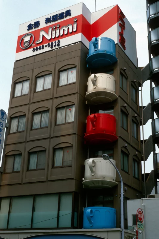 Who said you could only dive into human-sized teacups at amusement parks? Japanese kitchenware distributor Niimi’s Tokyo building has enormous teacup balconies in Asakusa, which also happens to be the location of the well-known Buddhist temple “Sensō-ji.”