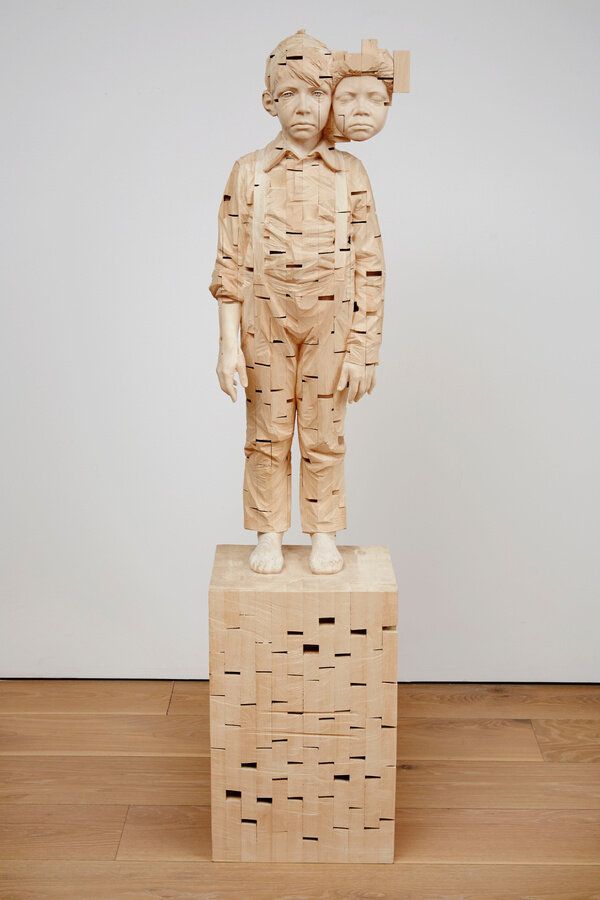 Impressive wood sculptures by Italian artist Gehard Demetz, Demetz born in 1972, Bolzano , and lives and works in Selva di Val Gardena. Demetz renders the human form in wood and juxtaposes it with digital, grid like voids