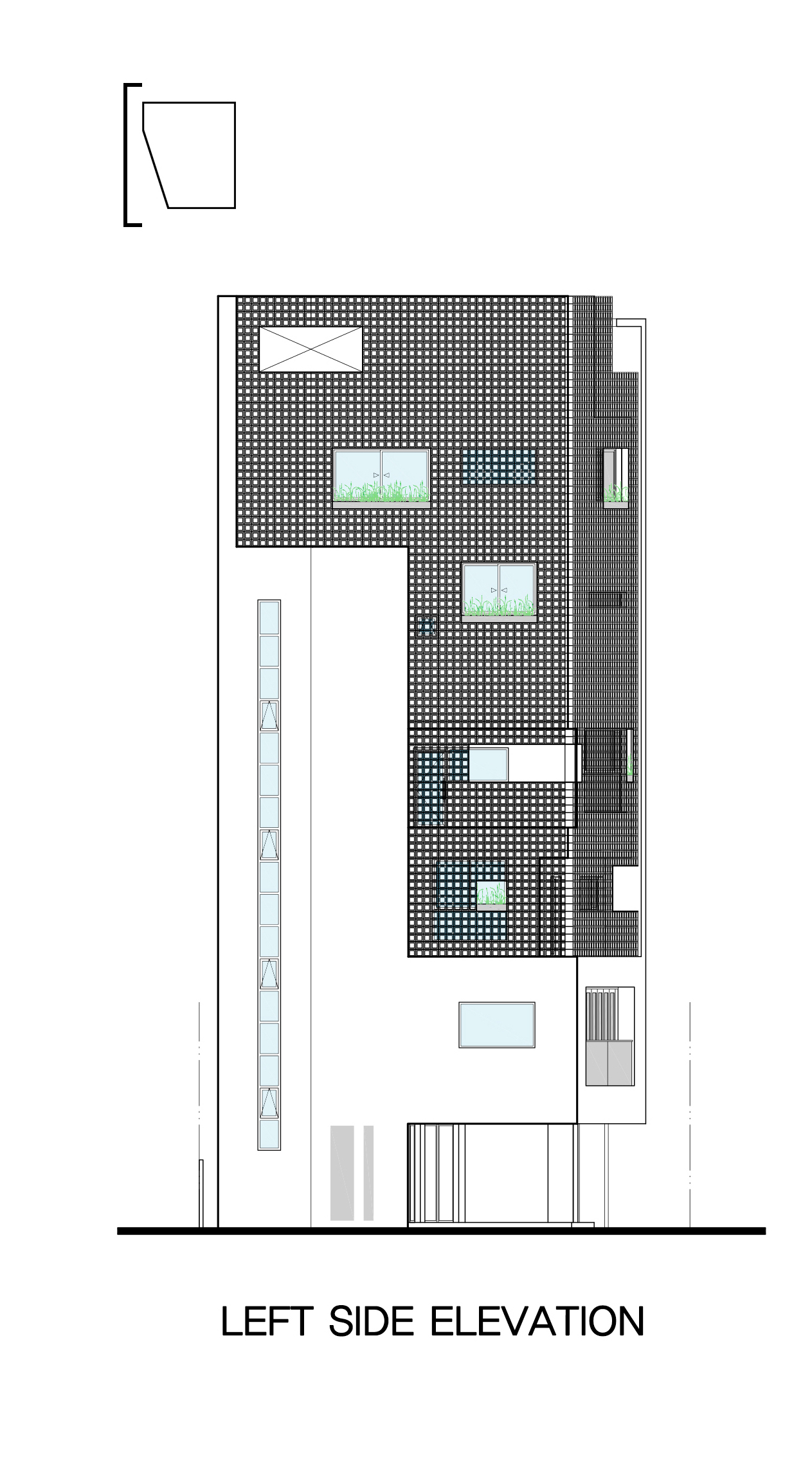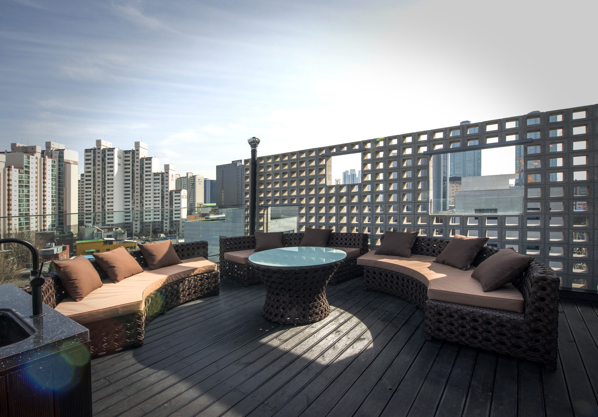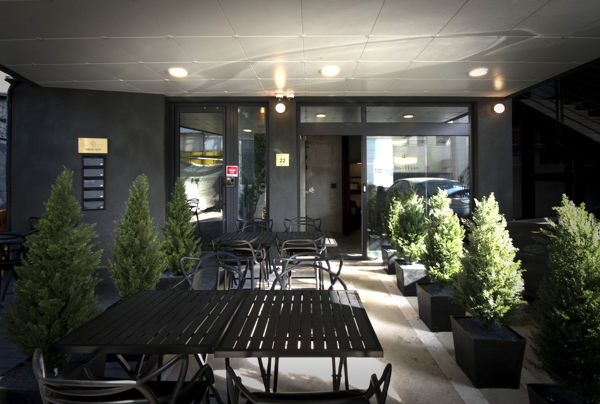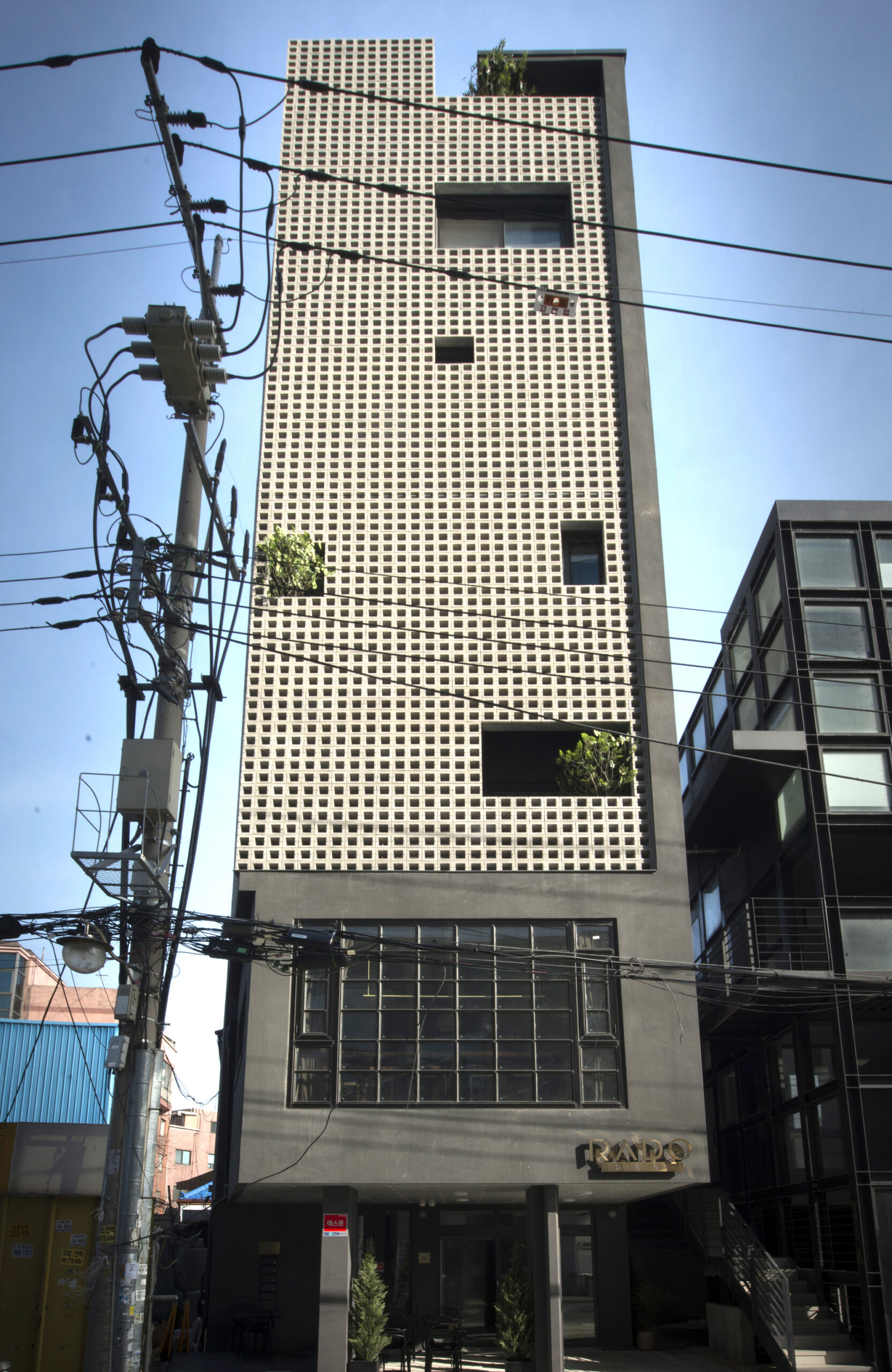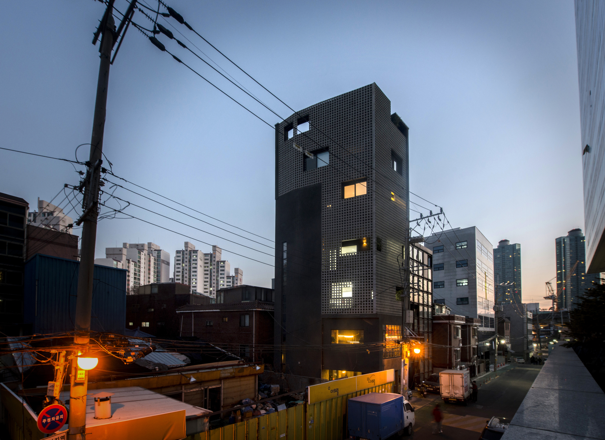 This building, which means ‘see-through,’ covers a translucent skin of 4,806 cue blocks on the structure of a jagged building. The cube block, which is opened in the middle, acts as a bridge between building and city, and at the same time it plays a role. See-through skin transmits natural light during the day and produces various light effects inside the building. At night, it shatters the light from the inside building and plays the role of the city’s soft lighting. Between personal value and desire and the city ‘s landscape role, the see-through skin becomes a architectural device that connects the individual space and the urban space metaphorically. Landscape spaces behind the skins are a device that alleviates the overall building image that can be eroded.