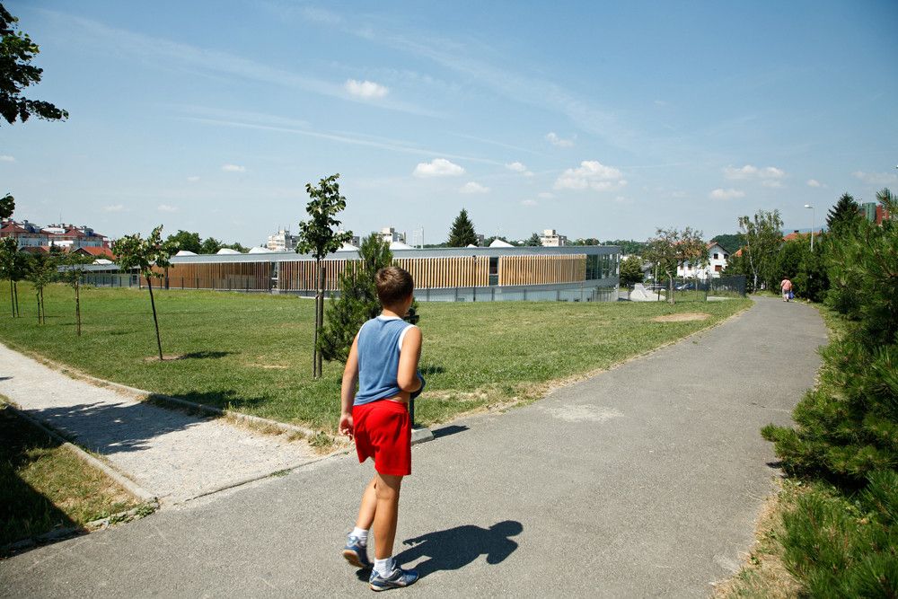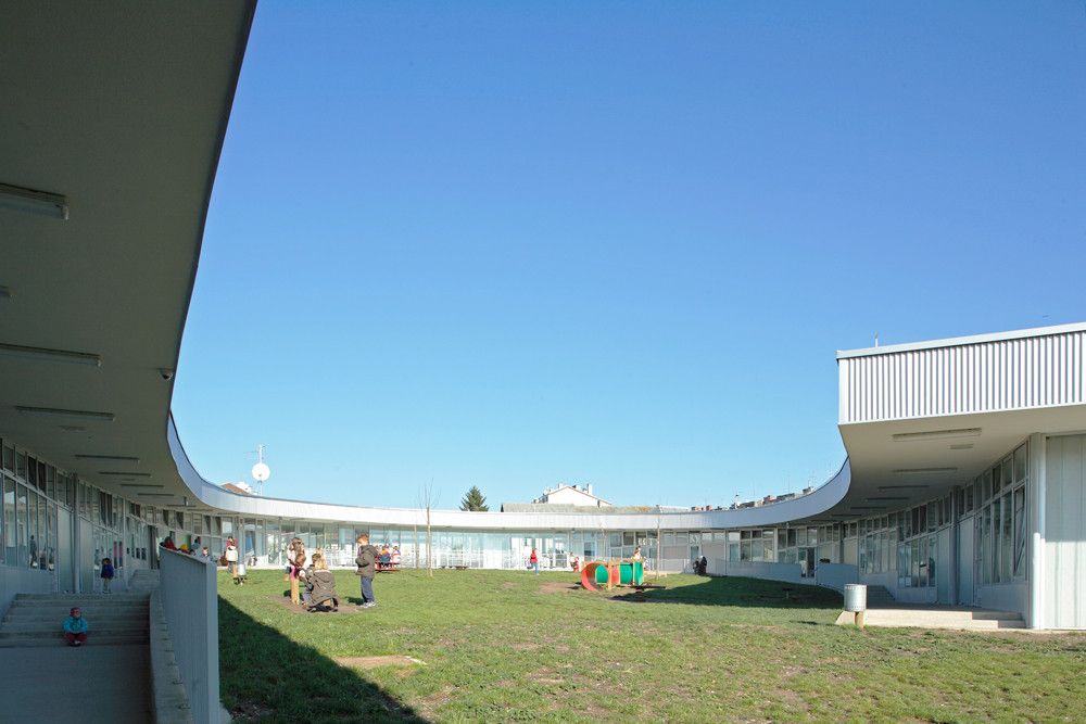 Designed by Radionica Arhitekture, The new kindergarten in Sesvete is one of more poetic projects in recent Croatian architecture. That which was obvious in the competition entry sketches from 2004 was confirmed in the realization of the micro-world oriented inwards, poetic, but geometrically precise; a meadow softly enveloped by the ground-floor stretch of kindergarten units.