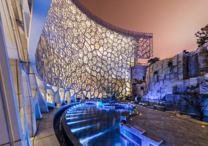 The designers have managed to fit in different concepts and elements in its façade without overdoing anything. The museum features a 30-meter tall atrium covered with a glass wall, the character of which has been inspired by the cellular structure of plants and animals. Light pours in through this striking feature and through the central wall forming the shell. The eastern wall is a living wall and signifies earth’s vegetation, while the northern stone wall within the shell signifies “shifting tectonic plates and canyon walls eroded by rivers.” The north wall also gives the central space a character of an old fort or a castle. Each wall holds its own individuality while enhancing the overall impact of the museum as a whole.