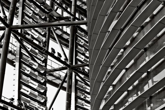The Outer Skin. Constructing a complex building shape that had never before been conceived required the most innovative tools. Designed with 20,000 + curtain wall panels—including more than 7,000 unique shapes—the façade would have been challenging to envision using traditional computer-aided design tools. With parametric software, however, Gensler was able to create a system that balances performance, constructability, maintenance, and design. Precise tolerances were achieved by placing lasers on the site to take measurements.