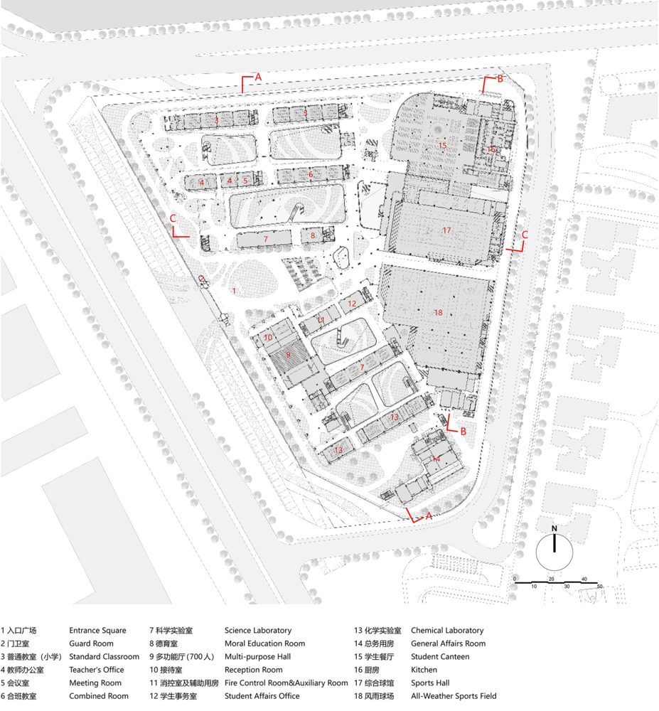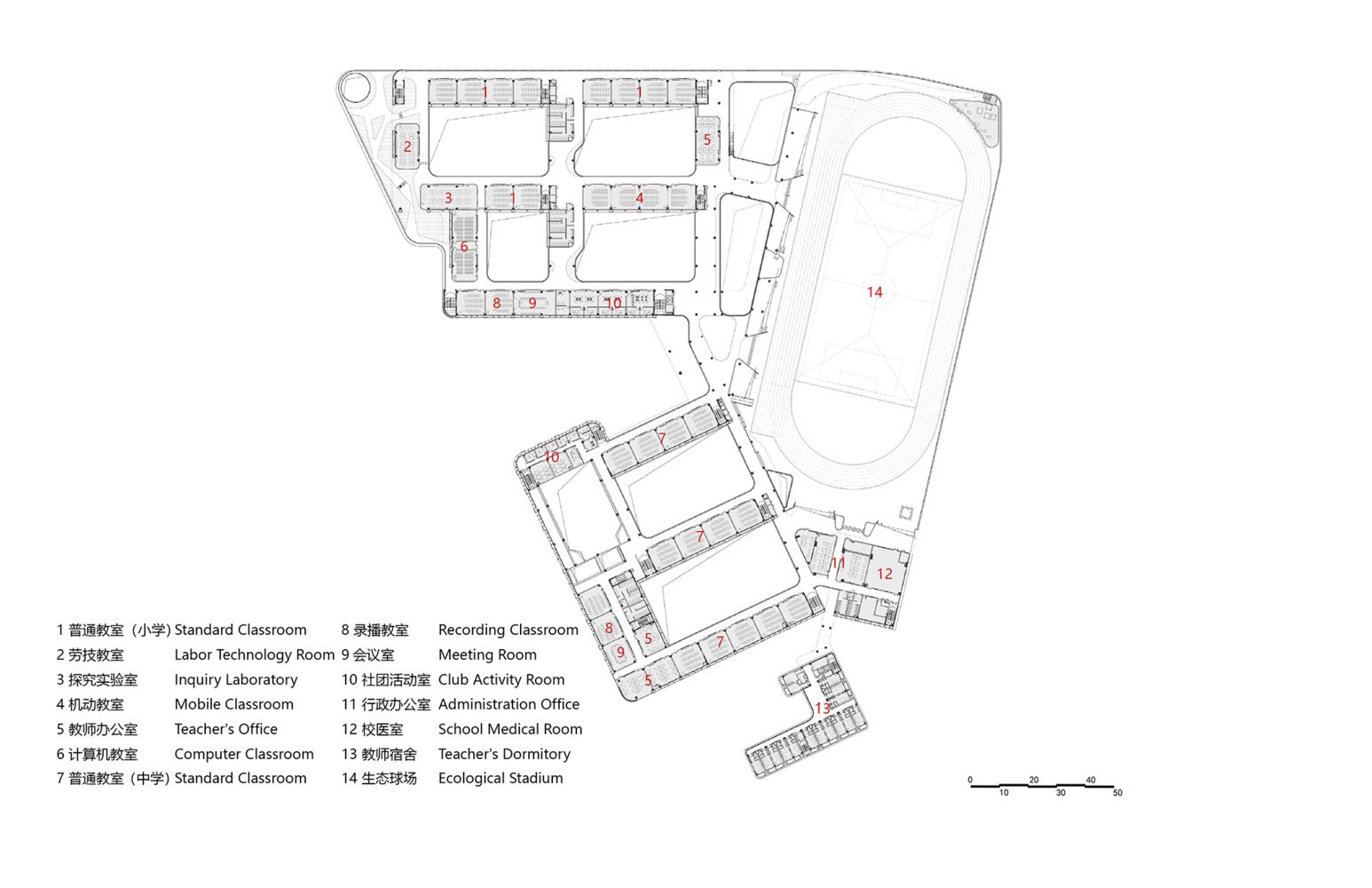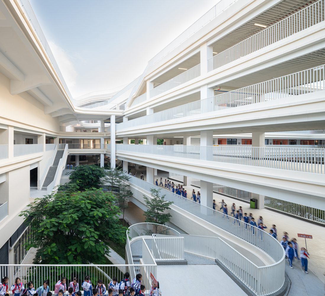 In the overall design of the Shenzhen Middle School Guangming Science City Campus, we started with the student experience as our core focus. Our goal was to create a vibrant “knowledge oasis” within the urban forest—a green, human-centered campus layout that embodies an ecological, open, cultural, and innovative modern school, oriented toward both the future and the international context.